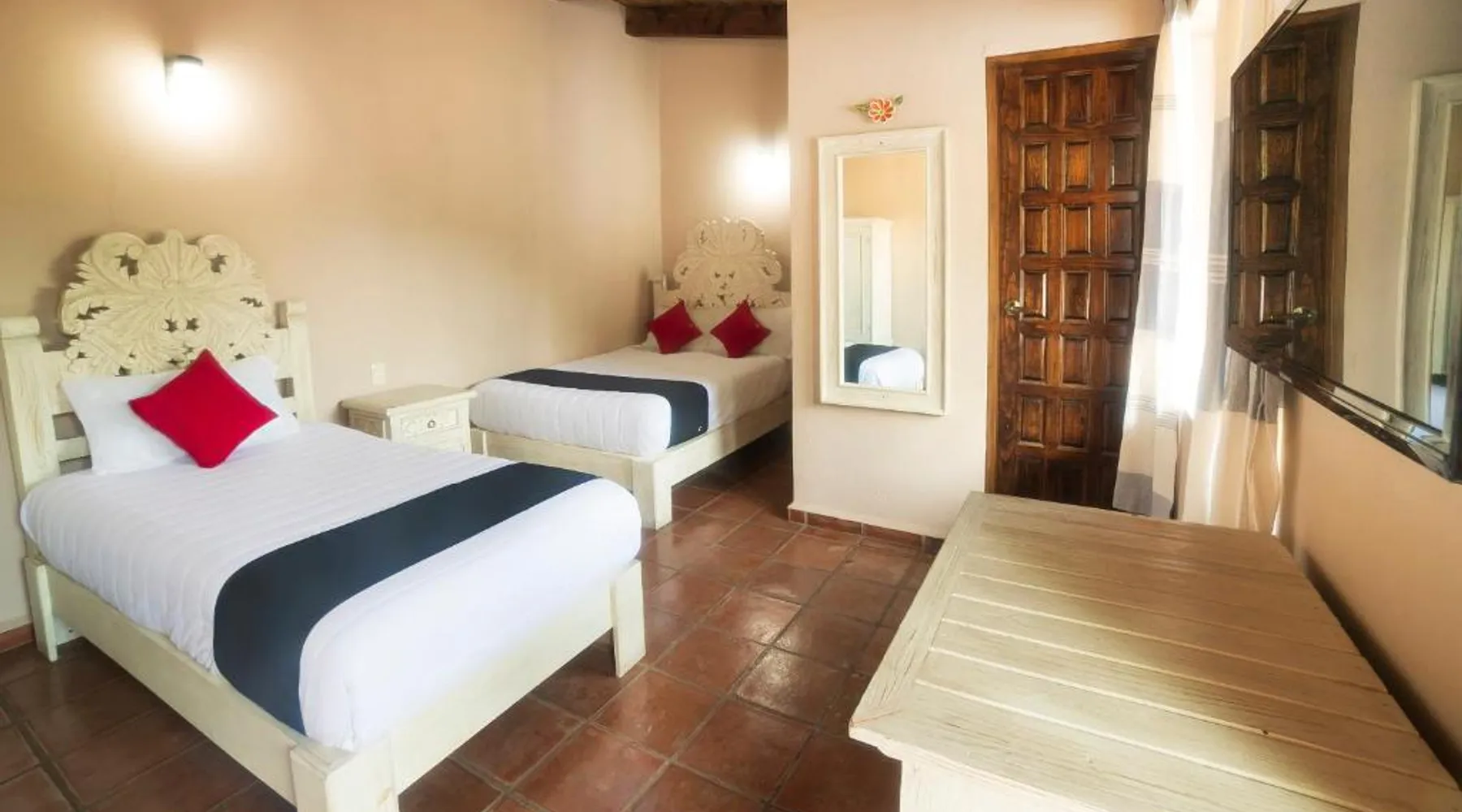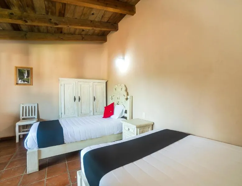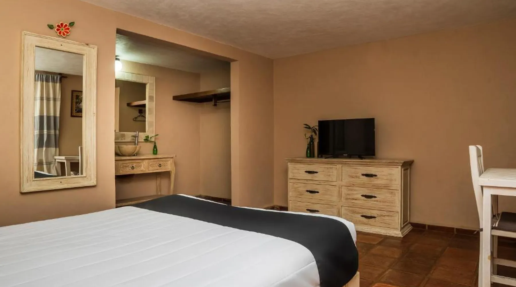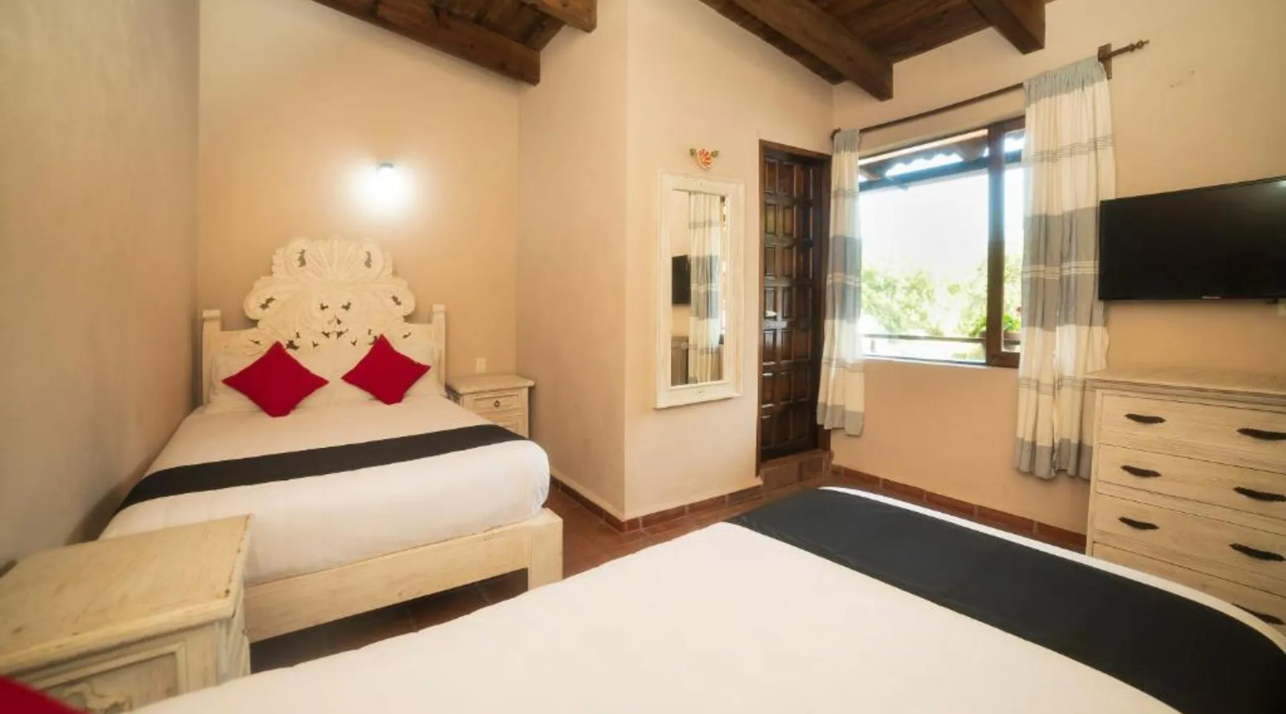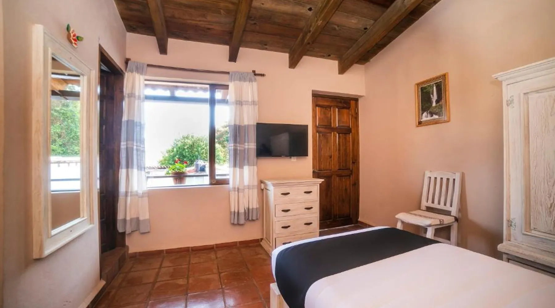 Comfortable Accommodations: Hotel Rincon Soñado in Valle de Bravo offers 4-star comfort with private bathrooms, work desks, free toiletries, showers, carpeted and tiled floors, TVs, and wardrobes. Convenient Facilities: Guests benefit from a 24-hour front desk, ensuring assistance is available around the clock. The hotel provides free WiFi, a business center, and a fitness center for added convenience. Prime Location: Located 50 mi from Lic. Adolfo López Mateos International Airport, the hotel is 5 mi from Cascadas Velo de Novia. Nearby attractions include Valle de Bravo Golf Club and Valle de Bravo Marina. This double room is consisted of of a flat-screen TV with cable channels and a private bathroom. The unit has 1 bed.