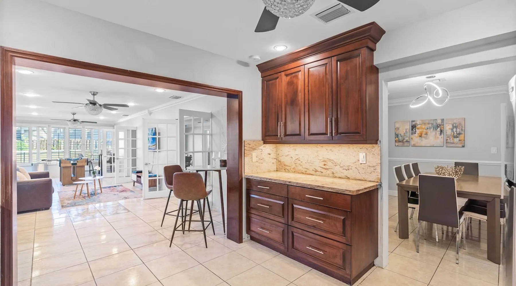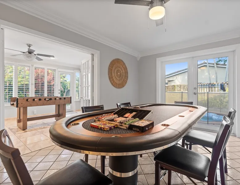 Our fresh SPACIOUS home has been updated with tons of fun amenities. We are right on the water with ocean access and a 34-foot dock to park your boat. We also have 2 kayaks for your use. Enjoy a private heated pool and gas grill. We have game stations with foosball and a large poker table for fun play. Our home has new interior furnishings and a large chef's kitchen. We are less than 2 miles from Lauderdale by the Sea Beach, which features a beautiful fishing pier, restaurants, and live music. The space The waterway at the property is accessible from the ocean, however, boats must clear several low, fixed bridges. Check clearances, depth, and tides before bringing your own boat. Small powerboats may be able to access the dock. However, the owner makes no warranties or representations regarding clearances and maximum draft. Dock at your own risk Guest access Guests will have access to the private pool, boat dock, 2 kayaks, life vests/jackets, private laundry room, anda waterfront backyard. You must sign a liability waiver to use the kayaks. The pool, dock, canal access, and backyard are completely private. The pool is only heated in the winter months. We need 24 hours notice to heat the pool and the fee is $45.00 per day and must be for the entire duration of the stay. Other things to note Outdoor surveillance security cameras are on the property. *Please note that we have weekly pool maintenance, landscaping, and general maintenance workers who may need access to the home/pool area. We reserve the right to be on the property for necessary maintenance/repairs. The pool is only heated in the winter months. We need 24 hours notice to heat the pool and the fee is $45.00 per day and must be for the entire duration of the stay. We provide a starter kit of supplies for your convenience.