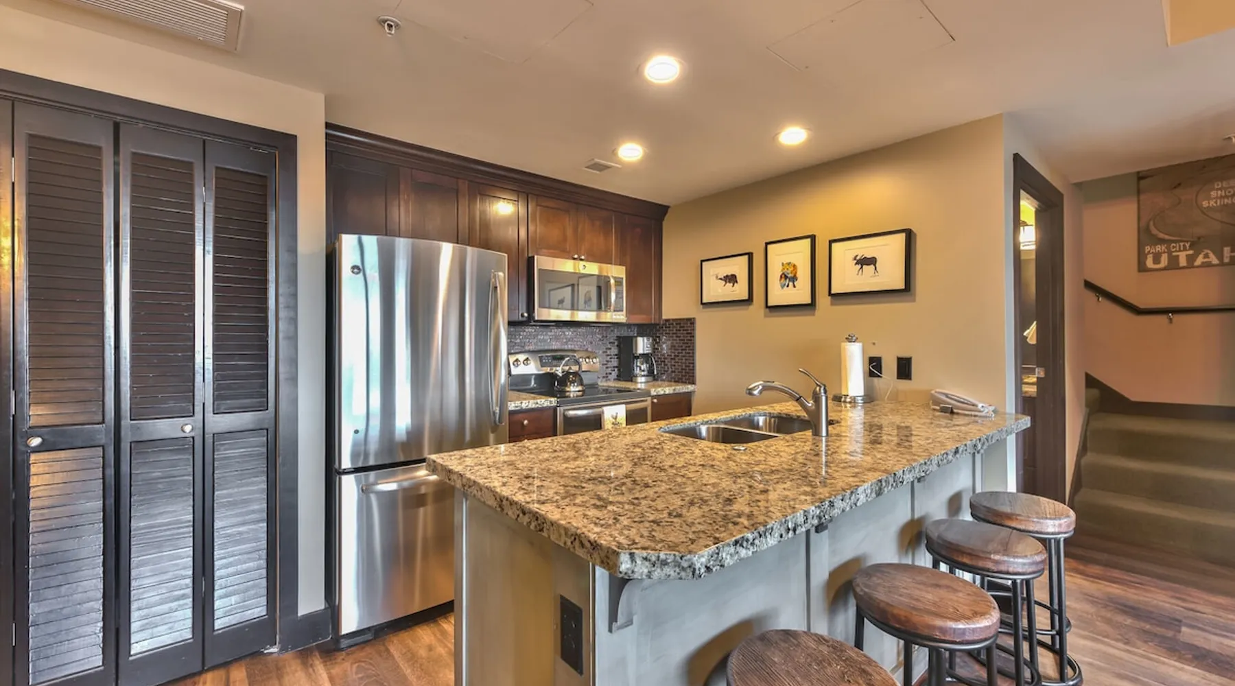There is no better property from which to enjoy the largest ski resort in the USA -- we are pleased to present our newest Sundial Lodge 3-bedroom unit featuring a two-story layout sleeping up to 11. Living area with fireplace, large flat-screen TV with DirecTV, RokuTV, DVD, sofabed, wood flooring, seating at both dining table and bar, oversized windows, vaulted ceilings, balcony. The full kitchen features granite countertops and stainless steel appliances. Paid parking. The space In terms of location, there is simply no more convenient location than Sundial Lodge to enjoy Park City's 7300 acres of terrain from. When you stay at Sundial you are at the very heart and center of the resort plaza. The property adjoins the main Red Pine gondola, houses the resort ski school, ski rentals, and ski shop, and wraps around the forum which is the hub of apres ski. No "near" or "close" to the lifts as many others promise, Sundial Lodge IS the very heart and center with NO OTHER PROPERTY MORE CONVENIENT to both skiing/boarding and resort plaza amenities including apres ski activities for adults and children alike, restaurants, shops, free concerts and more. Enjoy concerts in spring and summer. Summer enjoys golf, ziplines, mountain biking, hiking, and much more (all just out the door). Meanwhile, the property has the amenities to deliver the superior experience you are looking for. From the circular entrance with sparkling lights to greet you upon your arrival, to bell service (seasonal) to assist you with your luggage, and to the front desk to assist you with your check-in. The property has a year-round heated outdoor pool, multiple hot tubs (both pool and roof level), relaxing gas firepits (both pool and roof level), a gym, luxury ski check with boot dryers, complimentary wifi, paid underground parking, and more. And this superior unit is one of the largest at Sundial sleeping up to 11 people. The unit is on two stories, with vaulted ceilings, an oversized master bedroom, granite and stone kitchen, plank flooring, a balcony overlooking the resort forum, and natural stone baths. Living area with fireplace, large flat-screen TV with DirecTV, RokuTV, DVD, sofabed, wood flooring, seating at both dining table and bar, oversized windows, vaulted ceilings, balcony. The full kitchen features granite countertops and stainless steel appliances, fully stocked with everything to enjoy eating with family and friends. On the main level, you will find two bedrooms, one with a king-plus sitting area with a sleep sofa, and the second with a queen bed. Both have extra high ceilings, extra high windows, and flatscreen TVs. On the main level, you will find two full baths (3rd bath upstairs) featuring natural stone, heated floors, and deep soaking tubs. The master bath also features a jacuzzi tub. The washer/dryer is in the unit. Upstairs you will find an open bedroom/loft looking down on the living area, with sleeping for up to three with a bunkbed, queen on the bottom, twin above. There is a flatscreen and DVD player. A third full bath featuring natural stone, heated floors, and a deep soaking tub. The balcony overlooks the resort plaza/forum, table seats up to five, and enjoy the spring and summer concert series from the comfort of your own balcony. And you will enjoy little luxury touches that make a difference --from luxury robes to luxury L'Occitane amenities, to luxury high thread count luxury linens -- little things that are unique to our unit as we try to go the extra mile and deliver a superior experience. Immediately out the door, you will find your skiing/boarding (Red Pine Gondola right out the door; heated Orange Bubble Chair just beyond), main resort ski shop and rental (located right in Sundial, ground level with exterior entrance), ski school, restaurants (from the top-rated The Farm to the casual Umbrella Bar, to The Bistro at Canyons which features a Kosher menu), etc. In spring and summer free concerts, and the Canyons golf course. And while you have the largest ski resort and the Canyons base village at your doorstep, if you want to venture beyond (Historic Main Street, Deer Valley, etc.) note that a free bus/shuttle stop is conveniently located just a few steps from Sundial. ARE DATES NOT AVAILABLE, NEED MULTIPLE UNITS, OR NEED A DIFFERENT SIZE UNIT? SEE/ASK ABOUT OUR OTHER SUNDIAL LODGE UNITS, AS WELL AS OUR OTHER PARK CITY PROPERTIES. ***Long term (28 night or longer) stays are only accepted April through November. Guest access Arrival information, including directions, will be emailed upon confirmation of booking. Other things to note > Resort property, guests responsible for conducting themselves in a professional manner, complying with all property rules > No smoking, minimum $1000 charge for violation > No pets, minimum $1000 charge for violation > Failure to follow resort rules, smoking and/or pet policy can result in immediate removal from the property without refund > Optional housekeeping available during stay, must be arranged a minimum of two weeks in advance, additional charges apply