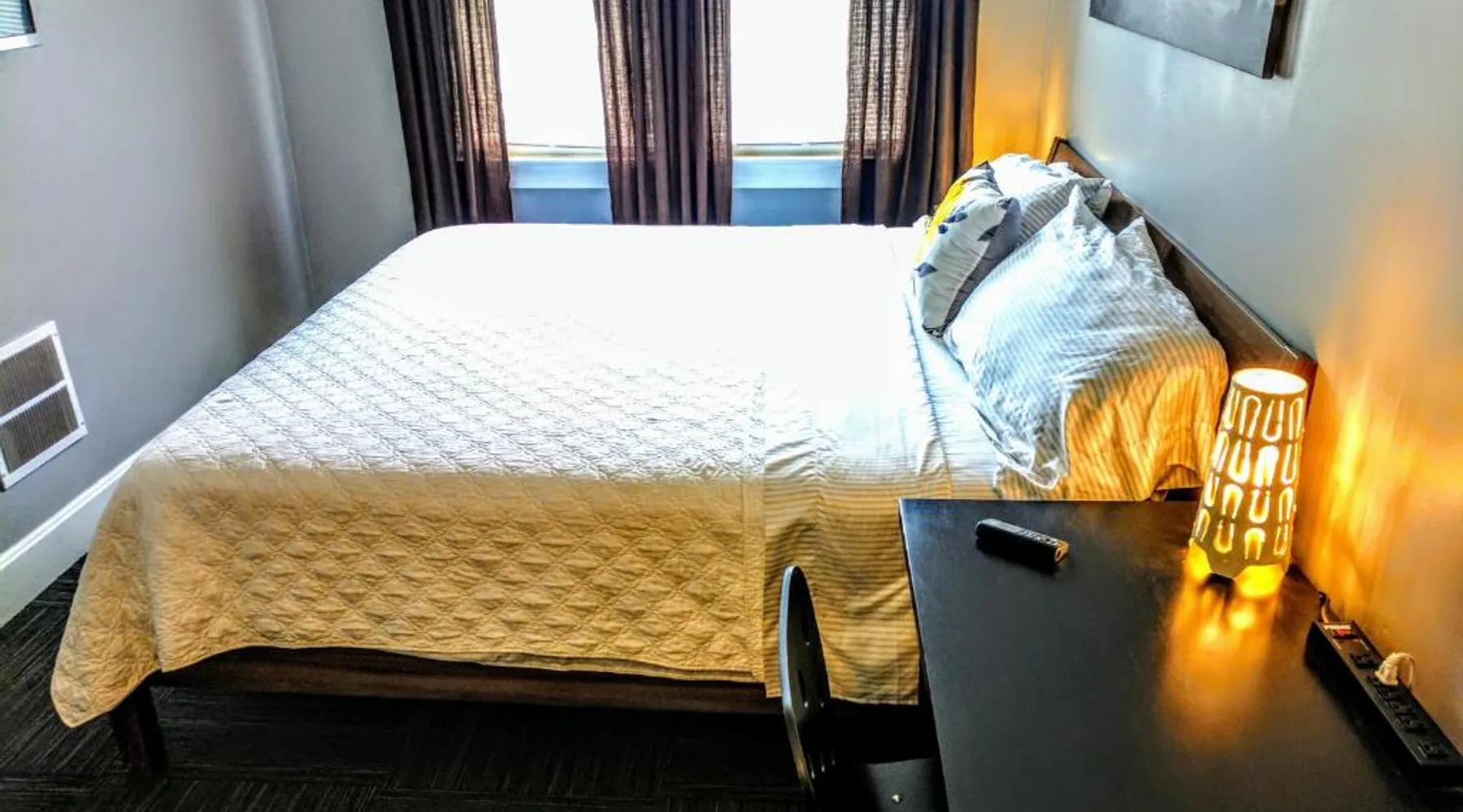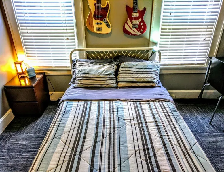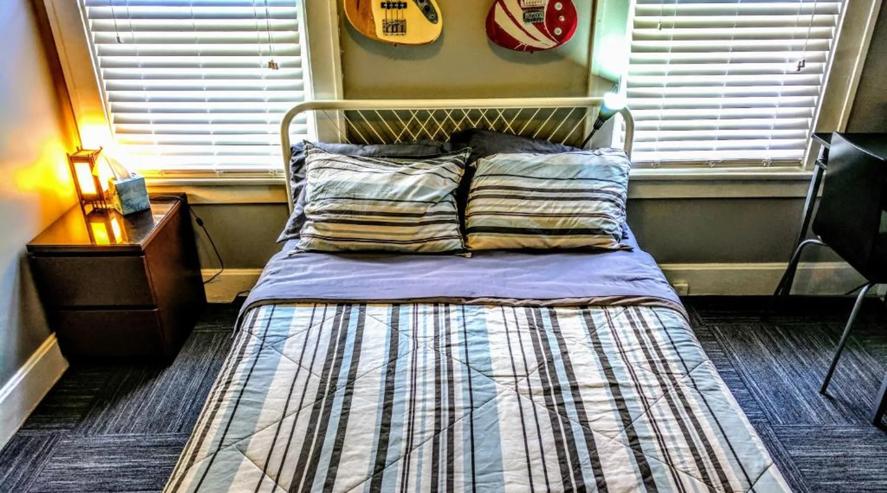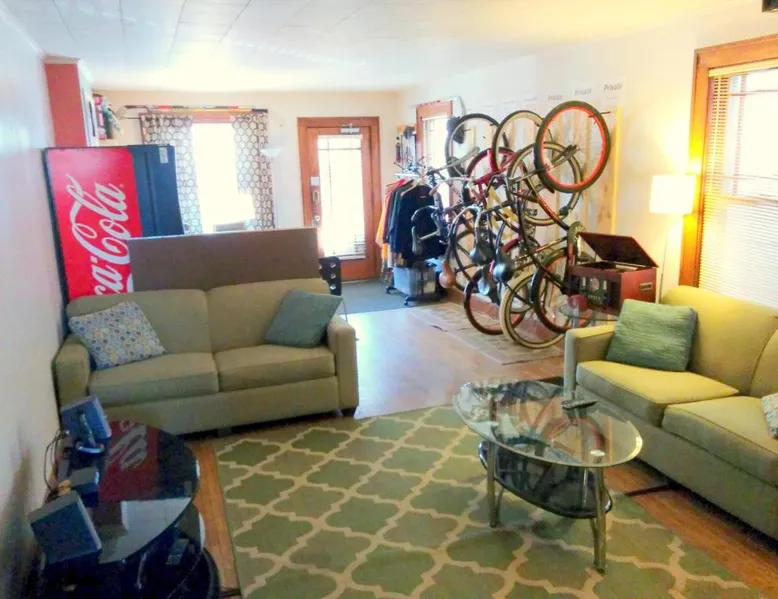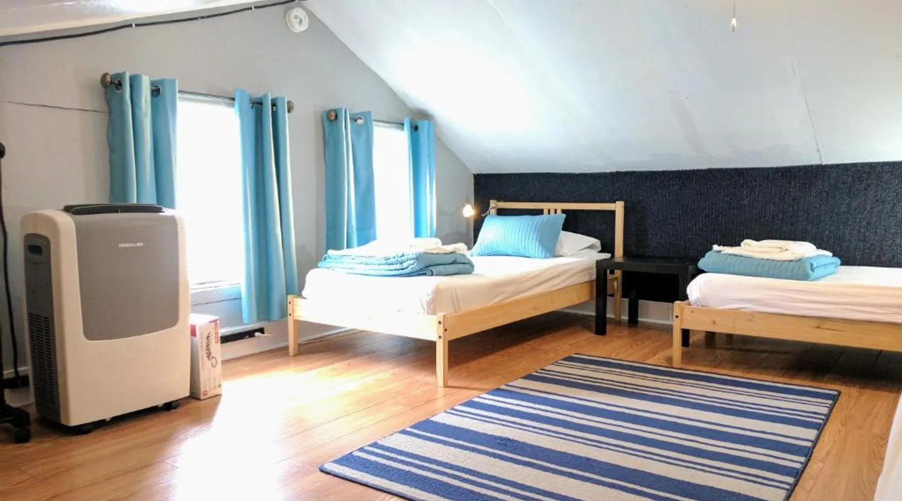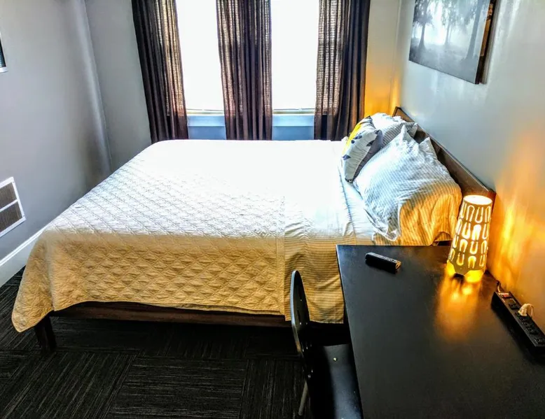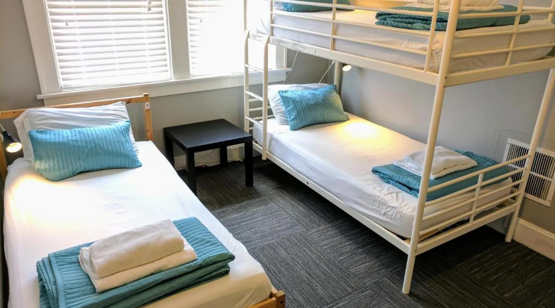 Comfortable Accommodations: The Wayfaring Buckeye Hostel in Columbus offers family rooms with private bathrooms. Each room includes air-conditioning, a work desk, and a wardrobe. Essential Facilities: Guests enjoy free WiFi, a garden, terrace, and free bicycles. Additional amenities include a hot tub, lounge, and games room. Convenient Location: Located 8.1 mi from John Glenn Columbus International Airport, the hostel is near attractions such as the Ohio Historical Center (1.9 mi) and Columbus Zoo and Aquarium (17 mi). Guest Services: The hostel provides a paid airport shuttle, self-service laundry, and free on-site parking. Breakfast includes cheese. This dormitory room has a shared bathroom and a desk.