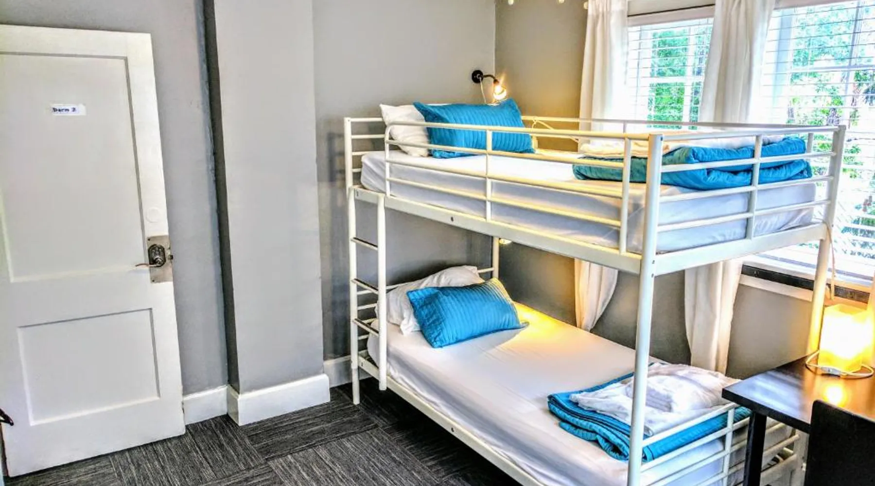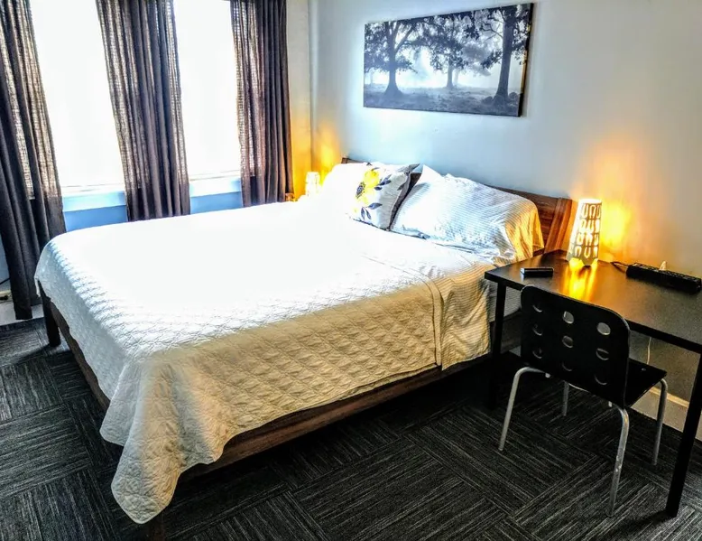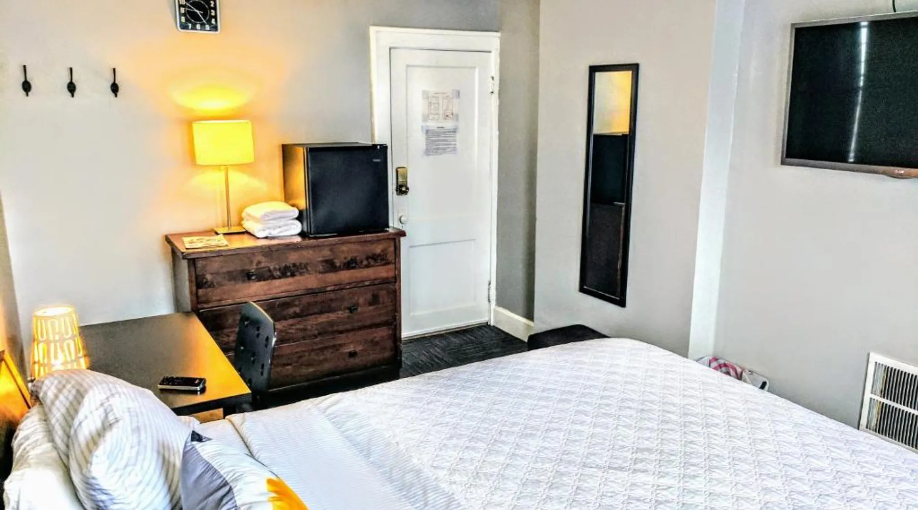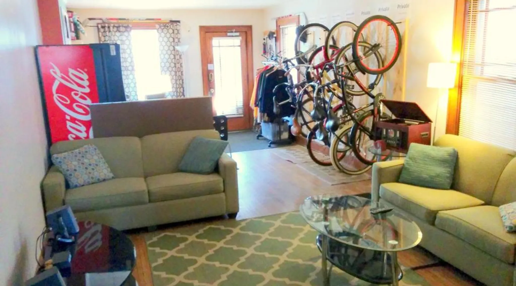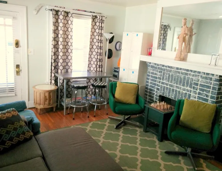 Comfortable Accommodations: The Wayfaring Buckeye Hostel in Columbus offers family rooms with private bathrooms. Each room includes air-conditioning, a work desk, and a wardrobe. Essential Facilities: Guests enjoy free WiFi, a garden, terrace, and free bicycles. Additional amenities include a hot tub, lounge, and games room. Convenient Location: Located 8.1 mi from John Glenn Columbus International Airport, the hostel is near attractions such as the Ohio Historical Center (1.9 mi) and Columbus Zoo and Aquarium (17 mi). Guest Services: The hostel provides a paid airport shuttle, self-service laundry, and free on-site parking. Breakfast includes cheese. This dormitory room has a shared bathroom and a desk.
