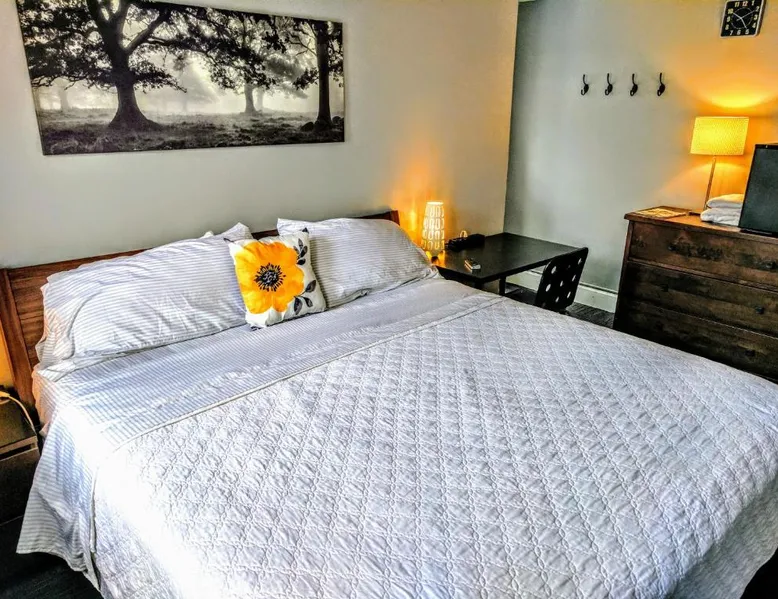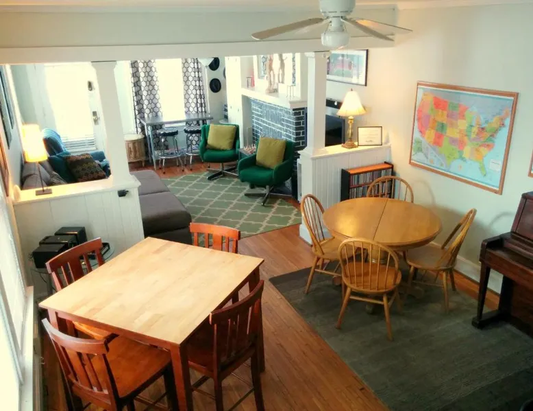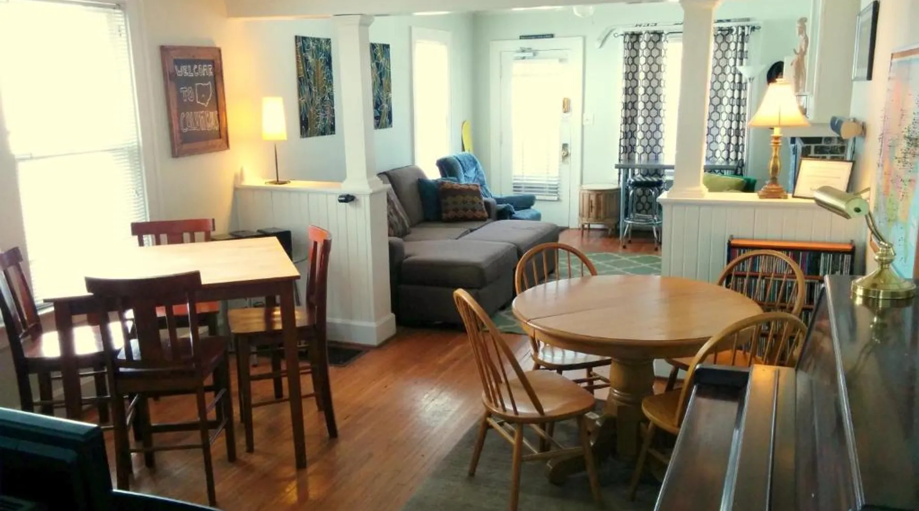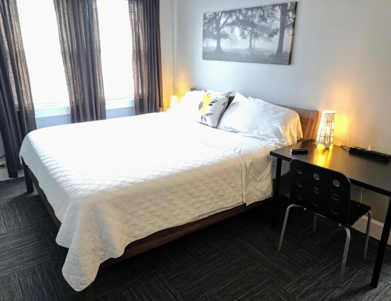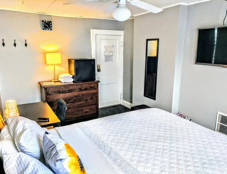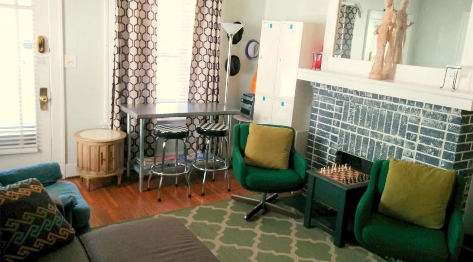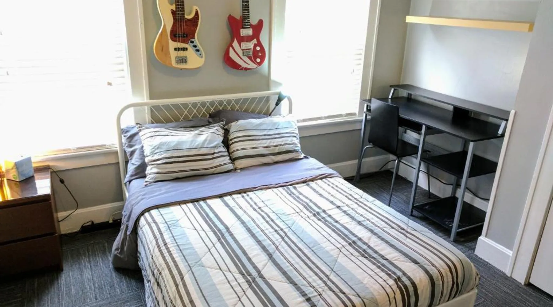 Comfortable Accommodations: The Wayfaring Buckeye Hostel in Columbus offers family rooms with private bathrooms. Each room includes air-conditioning, a work desk, and a wardrobe. Essential Facilities: Guests enjoy free WiFi, a garden, terrace, and free bicycles. Additional amenities include a hot tub, lounge, and games room. Convenient Location: Located 8.1 mi from John Glenn Columbus International Airport, the hostel is near attractions such as the Ohio Historical Center (1.9 mi) and Columbus Zoo and Aquarium (17 mi). Guest Services: The hostel provides a paid airport shuttle, self-service laundry, and free on-site parking. Breakfast includes cheese. This dormitory room has a shared bathroom and a desk.