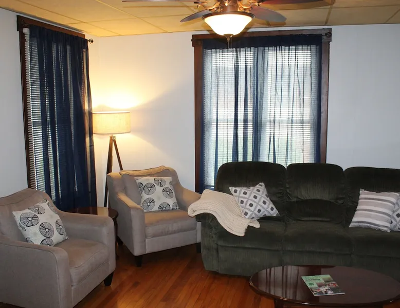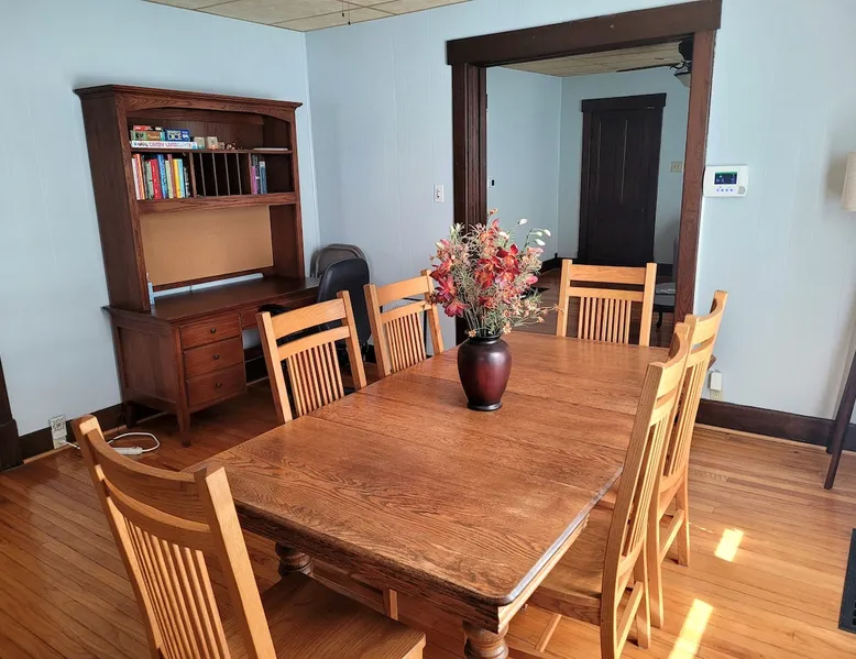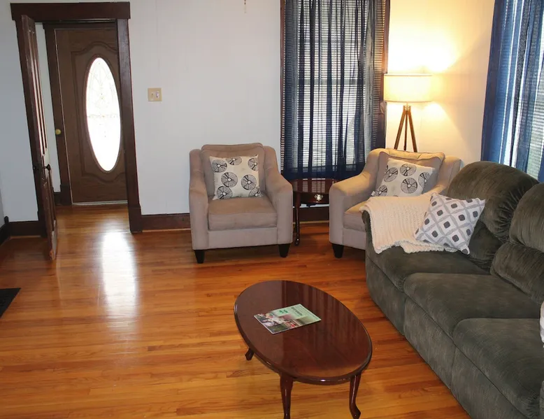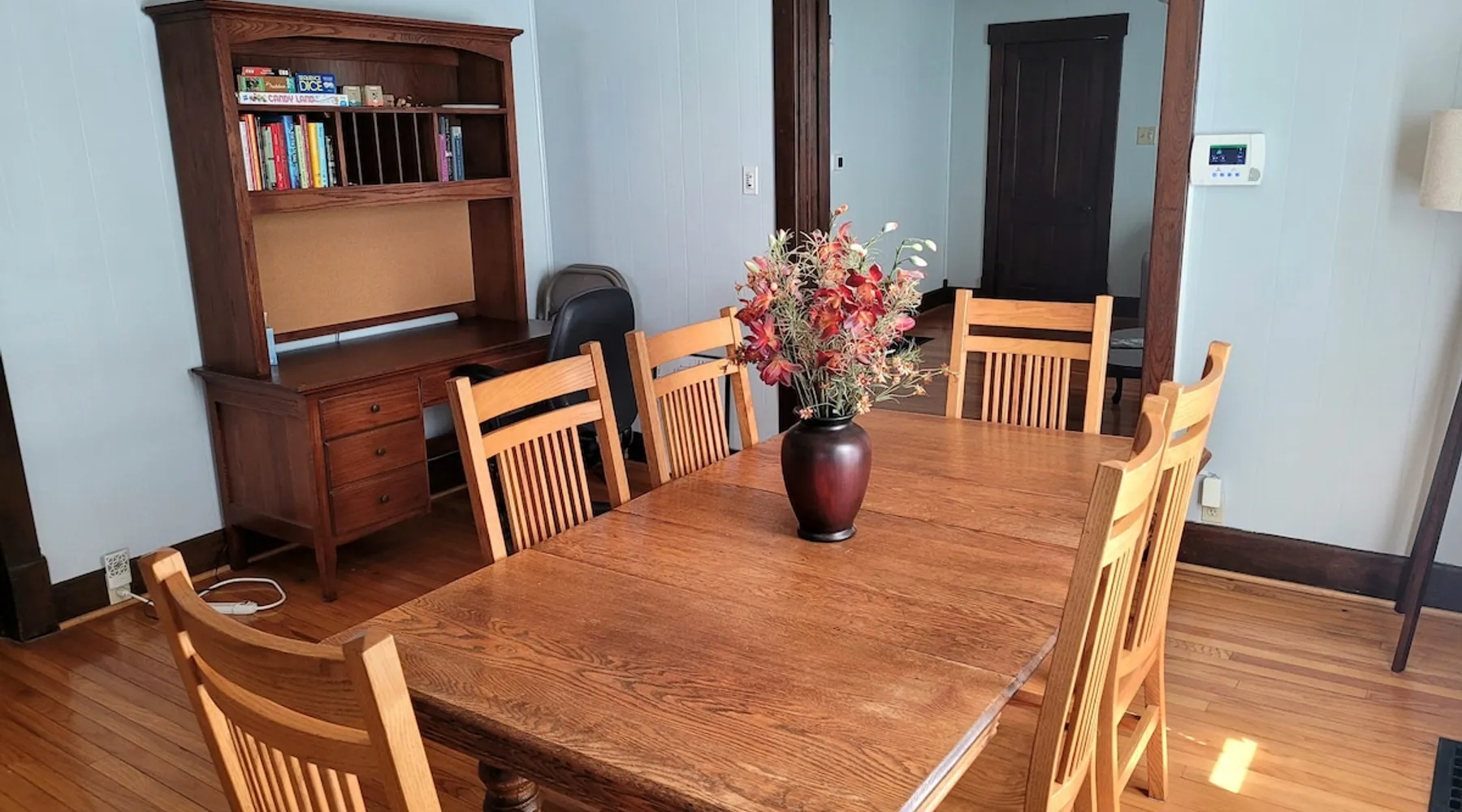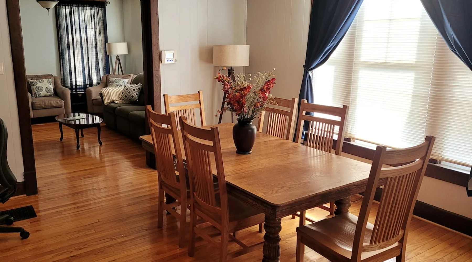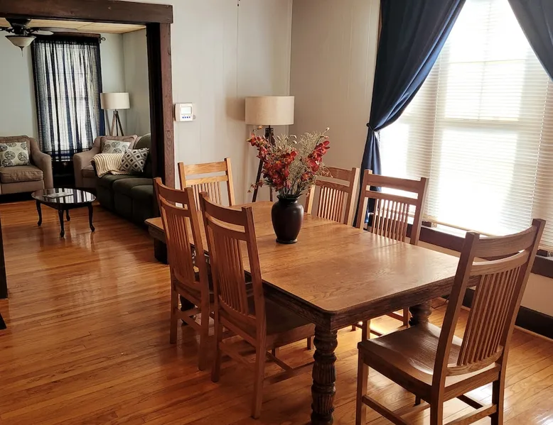 Your family will be close to everything when you stay at this centrally-located bungalow. This beautiful 3 bedroom, 2 bathroom home is walking distance to Downtown Urbana, the University of Illinois, and Carle Hospital. There are 2 off-street parking spaces, and the home is 2 blocks from a bus line that runs through campus to Downtown Champaign. The space This is a 2 story bungalow. The first floor has 3 bedrooms, a living room, dining room, kitchen, and full bath. The second floor has a second full bathroom. We welcome families and can provide a travel crib and high chair upon request. Guest access Guests will be able to access the entire first and second floors of the house, front porch, and driveway. Short-term guests will not have access to the basement or garage as we use those areas for storage. Other things to note The washer and dryer in the basement storage area will be made available to long-term guests upon request.