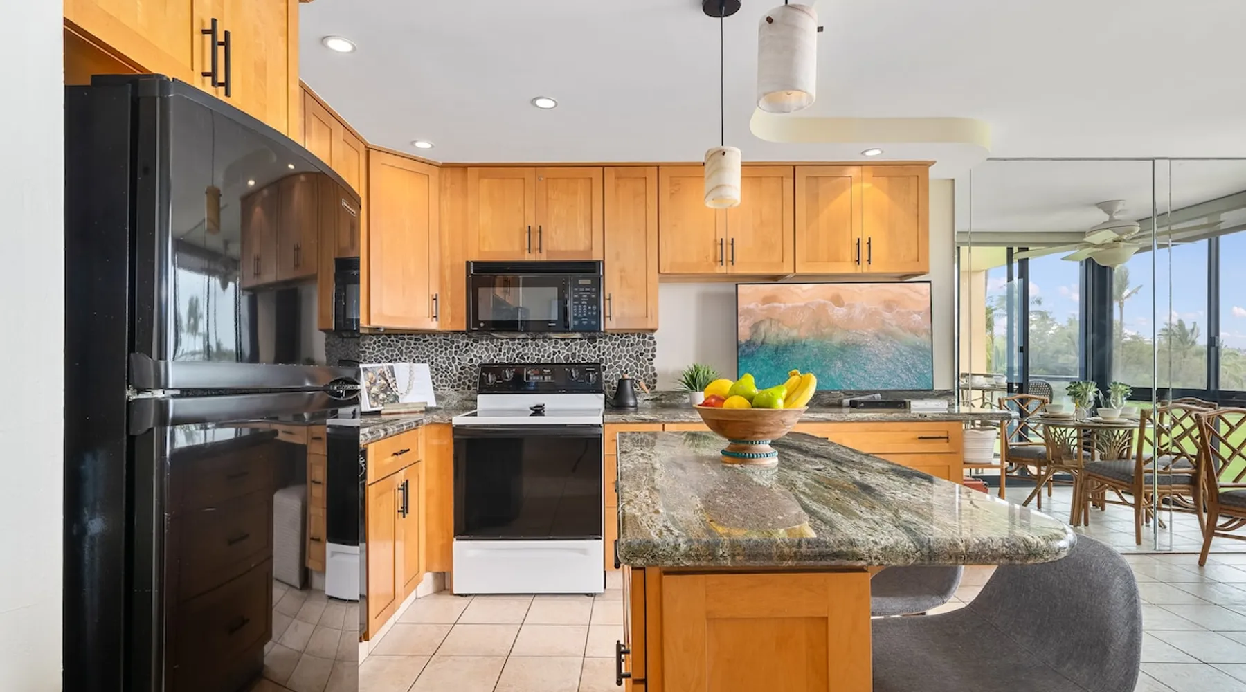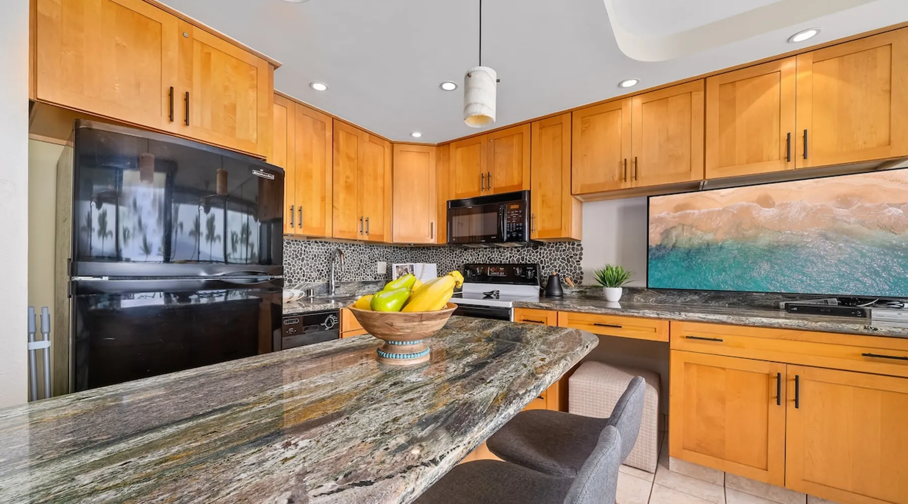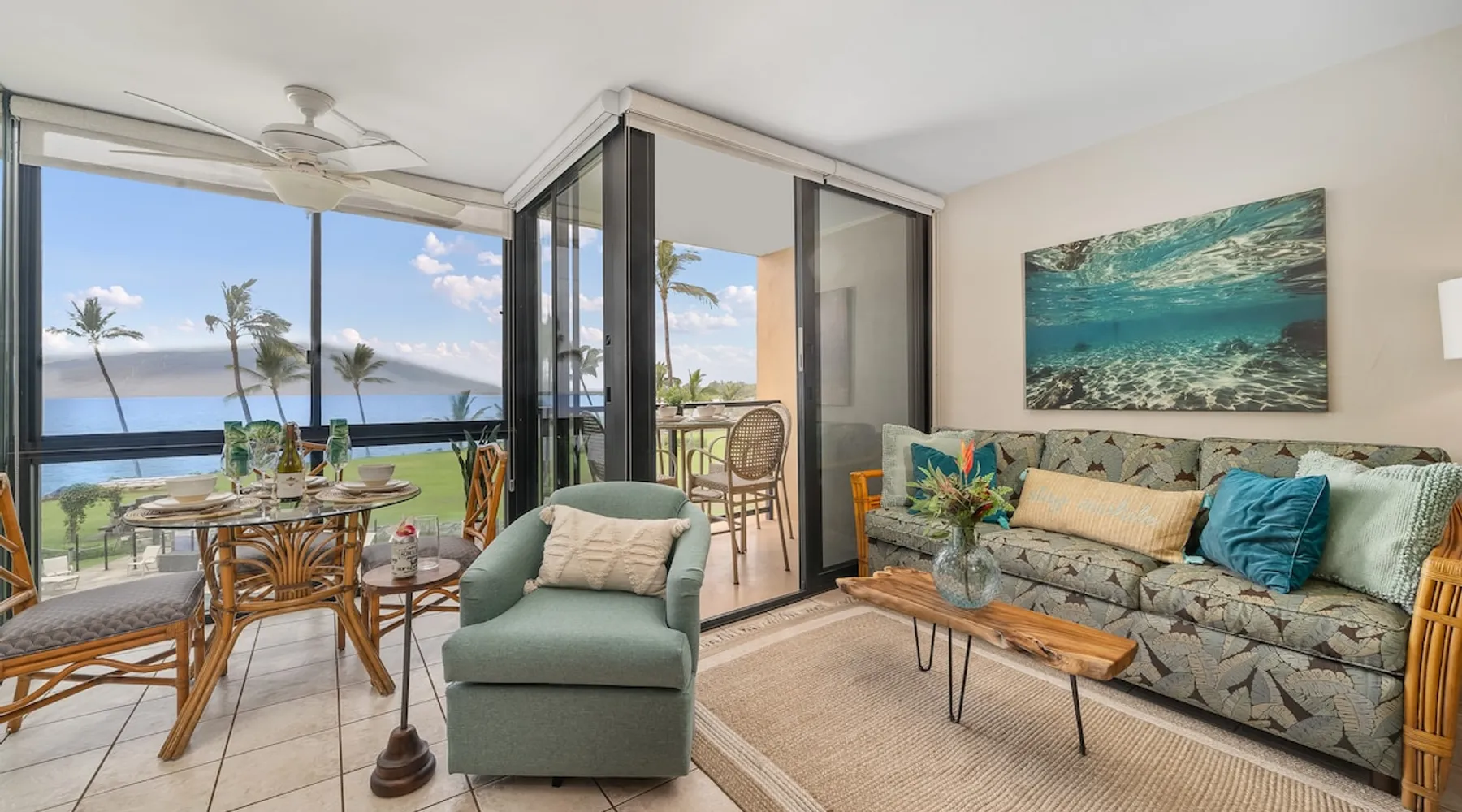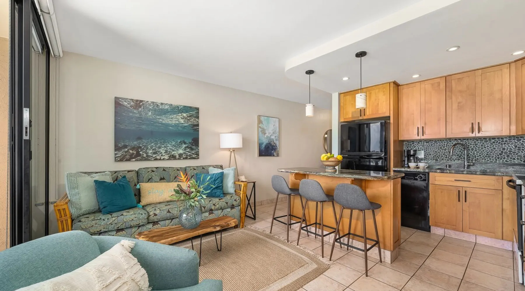 Kihei Surfside 306 Beautifully Updated Hawaiian Style OceanFront 1Bedroom Condo with Ocean Views for Front Row Whale Watching. Steps to Beach, Restaurants, Shopping The space FREE daily activities included with your stay value up to $554! Complimentary admission, every day of your stay*: Whale Watching (seasonal), Sunset Dinner Cruise, Molokini Snorkel Trip, Alpaca Farm Tour, Pineapple Farm Tour, and Tea Farm Tour. (S1) *One ticket per activity per day. Additional details provided after confirmed booking. Dreaming of your next Maui getaway and looking for that perfect spot to relax and let your worries drift away? Kihei Surfside 306 offers just that; with amazing ocean breezes, ocean views and awe-inspiring beach walks. This convenient South Kihei location is steps from the beach and minutes away from all the activities and attractions of South Maui including the Makena and Wailea Resort areas. Condo Highlights: -1 Bedroom, 1 Bathroom, Sleeps 4 guests -Split AC in bedroom and living room (installed Sept 2024) -Ceiling fans -Oceanfront lanai with amazing views. Accessible from the living room and dining area -Ocean views from the living room -Bedroom with king size bed -Sleeper-sofa in the living room -Flat screen internet streaming TVs in living room and bedroom -Fully equipped kitchen -Dining areas for 4 inside and a 3 seat dining table outside on lanai -1 full bathroom with a walk-in shower Kihei Surfside is a wonderful low rise complex with beautiful well kept tropical grounds at the north end of Keawakapu Beach and minutes from Wailea's luxurious resorts. Kihei Surfside provides access to some of Maui's best beaches, snorkel spots, golf courses, restaurants and shopping. Luxury shopping at The Shops at Wailea and world famous Wailea golf courses at the Blue, Gold and Emerald courses are just around the corner. Resort Highlights: -Beachfront resort -Oceanfront pool -BBQ grills for guest use on either side of the building -Putting Green -Bocce Ball court -Elevator -On-site parking included -On-site coin-op laundry facility for guest use on ground floor No Mail Allowed: We are unable to receive USPS mail, including letters and packages at this rental. For medical-related items, please contact our Reservations Team for assistance. Minimum age of primary renter: 25 We provide the following in every unit: -First Aid Kit -High Speed Internet -Linens and towels -Iron and ironing board -Hair dryer -Beach towels, Beach chairs, and Hard sided cooler -Starter Kit: Starter supply of shampoo, conditioner, body wash, lotion, hand soap, dish soap, laundry detergent, dishwasher tabs, toilet paper, paper towels, trash bags *We don’t provide beach umbrellas, toys, or gears, such as snorkeling, due to safety, health, and hygiene risks. BEACHES & CRITTERS: The beach size in Hawaii varies month to month due to weather, heavy surf, strong currents, and tides. Due to Maui’s rural setting, you may experience the occasional rooster, as well as harmless geckos. Geckos are friendly, eat insects, and are considered good luck in Hawaii. Please don’t kill them. Although the HOA schedules regular professional pest control services, pests such as ants, roaches and rodents simply cannot be completely controlled in the tropics. Maui is in a tropical climate. If our guest spot more than the normal expected pests, we always make our best efforts to contact and work with the HOA to minimize your interactions with these pests. Any contact with such pests within or outside the unit does not constitute a breach of this Agreement or give Guest any right to any refund or rental adjustment. **We make no guarantee that properties adjacent to the Unit will be free from disturbances, including but not limited to noise or inconvenience from construction, traffic or other guests or neighbors. Any such disturbance shall not constitute a breach of this Agreement or give Guest any right to any refund or rental adjustment. By booking your stay with us, you accept that Host is not liable for any inconveniences arising from any temporary defect or stoppage in supply of water, electricity, air conditioning or plumbing that is beyond their control. Host is not liable for any loss or damage to Tenants’ personal property caused by weather conditions, natural disasters, or other events beyond their control. Tenants accept that the cable and internet service at the Rental can be sporadic and unreliable at times, and Tenant shall not be entitled to any refund of the rental fee in the event either of these services are unavailable or not operating properly during Tenants’ stay. Registration Details 390040280034, TA-194-550-3232-01