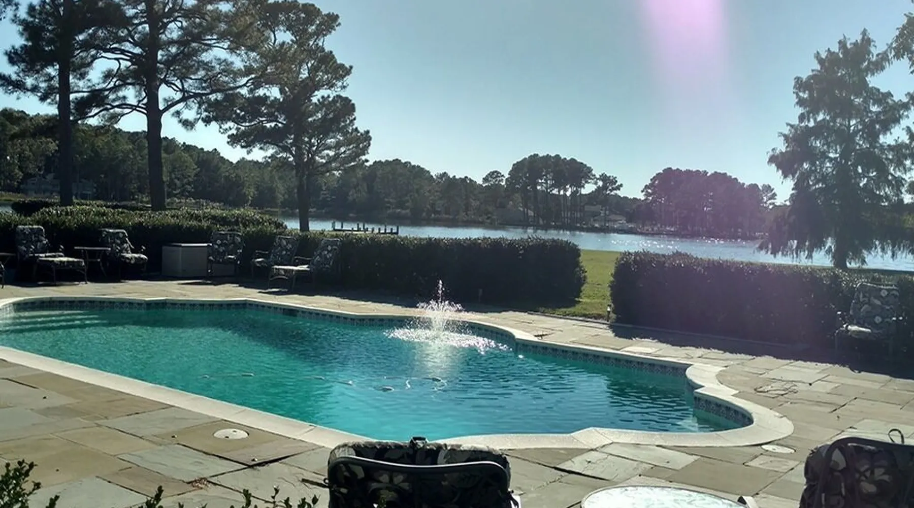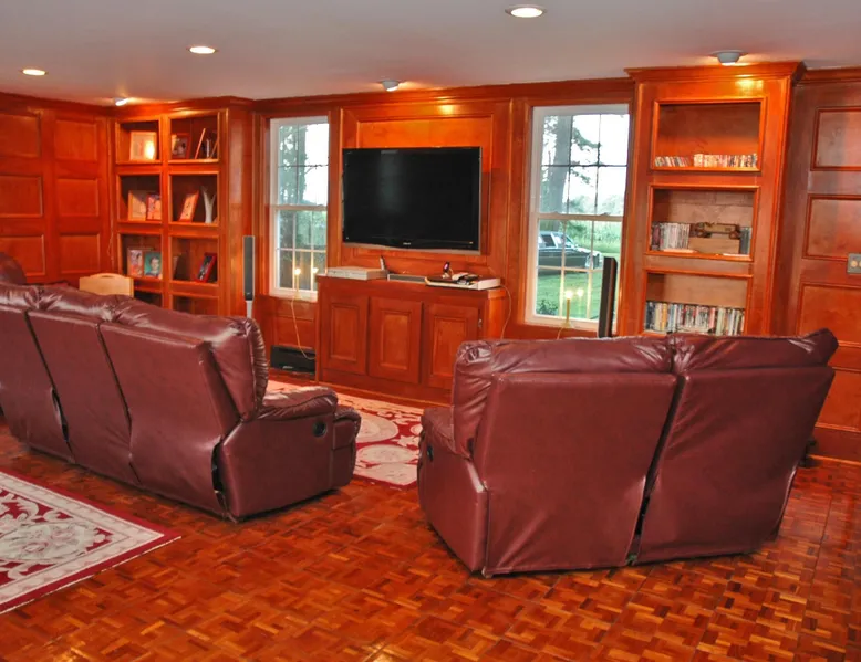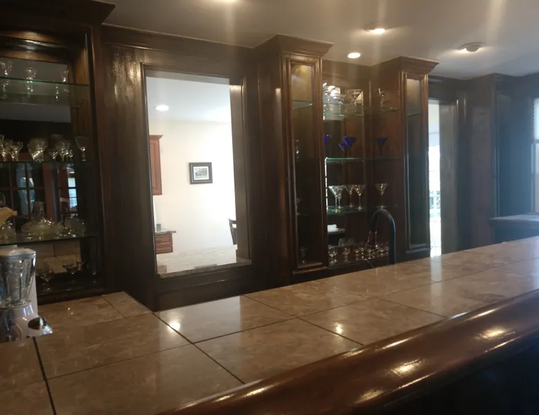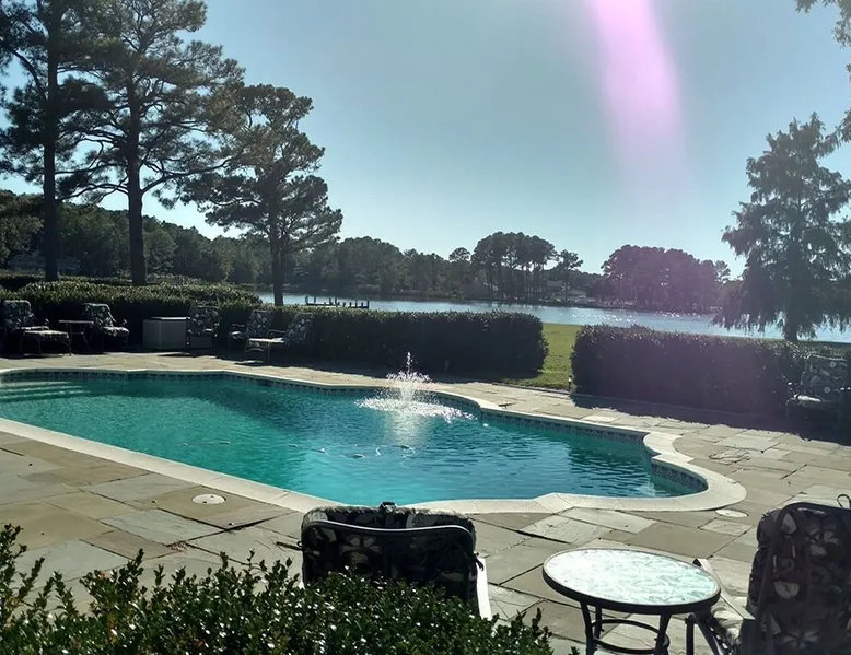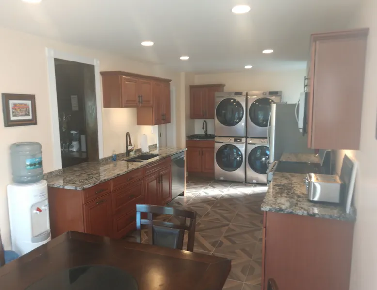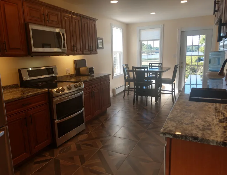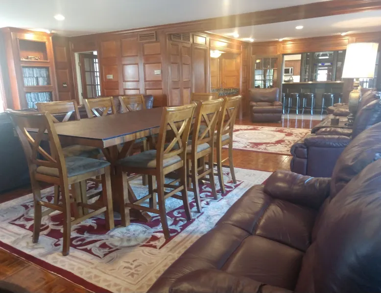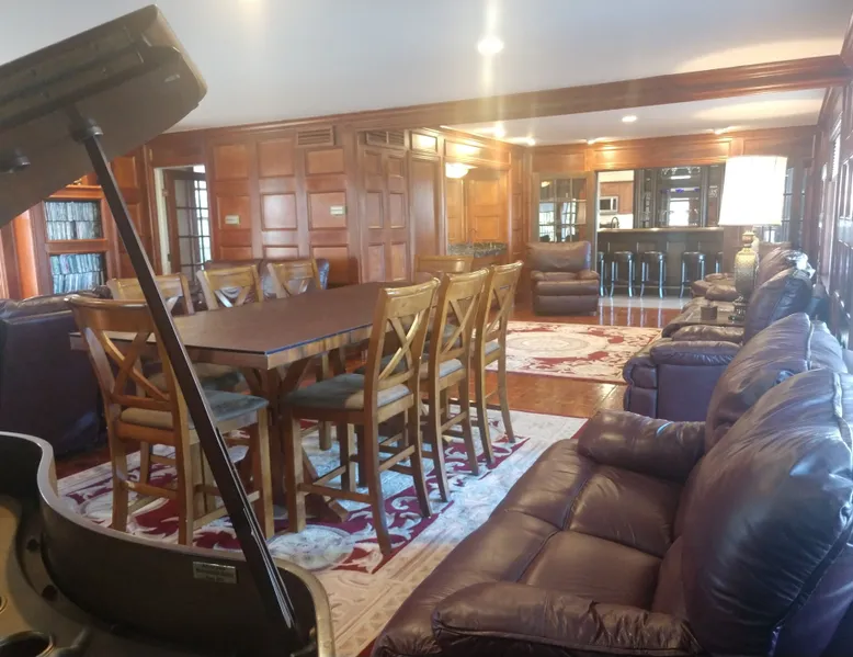 Kingsbay Bayhouse is an exclusive private waterfront house separated by a 70 foot grand solarium hallway off Kingsbay Mansion. Recently, a 350 square foot brand new Kitchen renovation was added, completely out fitted with all new state of art appliances and fully stocked with cooking and serving accessories. In addition, there are two sets of free to use, new washers and dryers. Along, with a custom bar room that seats 12, and a Great Room that provides leather recliner(s) theater seating for 15 people at one time and a counter height dining table center, for eight. Complete with built-in book selves all reminiscence of an Old English Hardwood Paneled Pub and Parlor rooms. You will be renting the 3000 square foot guest house to Kingsbay Mansion called The Bay House. There's a five bedroom three bathroom great room, English Pub bar brand new kitchen and a dedicated swimming pool for you and your guests only. Kingsbay Mansion has five suites, that we rent as a boutique Hotel that is a 13,000 ft house to itself. We also have a property called Kingsbay Dockside with four bedroom three bath Waterfront in ground swimming pool, that you may be also interested in. Please note: KINGSBAY MANSION is our premier property ran as a boutique hotel for nightly stays, or the entire venue for family reunions, weddings and events. This gated, elegant Georgian waterfront estate is one of a kind. Located on Maryland's Eastern Shore, Kingsbay is peninsula on Coulbourn Creek at the mouth of the Chesapeake Bay just north of Crisfield Maryland. It is the largest private home in Somerset County and was designed by Ian McCallum, the architect for Colonial Williamsburg. Built in 1970 on 7 acres and in middle of 500 acres of prime Maryland farmland, this estate offers 11 bedrooms, 10 full baths and 2 half baths. Starting In 2015, Kingsbay Mansion has been transformed into a breathtaking Executive B&B and Private Event Center. Five of its spectacular suites with private baths are being offered as part of the Kingsbay Mansion B&B. The entire estate is available for private functions, corporate events and destination weddings. There is approximately 2000 feet of shoreline with dock for boating and kayaking. Kingsbay has 13K square feet of living space and boasts a three-story rotunda with a domed skylight and Belgian crystal chandelier. The music hall offers vaulted ceilings, another stunning chandelier, grand piano and large theater organ. The formal living room is designed with a doublewide fireplace and an impressive beamed, crown molded ceiling. The formal dining room has a Chinese Chippendale theme with built-mirrored china cupboards, fireplace and chandelier. Other rooms include the family dining room, breakfast room, lounge bar, rear foyer bar, wood paneled library and more. There are two fully stocked bars and the in-ground Grecian swimming pool with slate deck and fountain with magnificent views of the waterfront and the manicured Japanese gardens. Kingsbay Mansion, Bayhouse, Waterside Retreat Compound, Cottage and the Dockside House, vacation rentals properties are available to rent for any occasion to accommodate up to 44 guests.