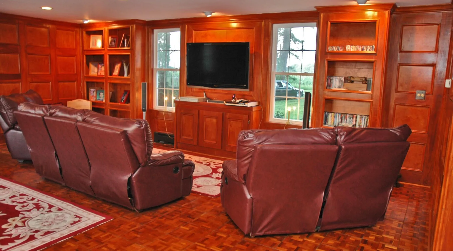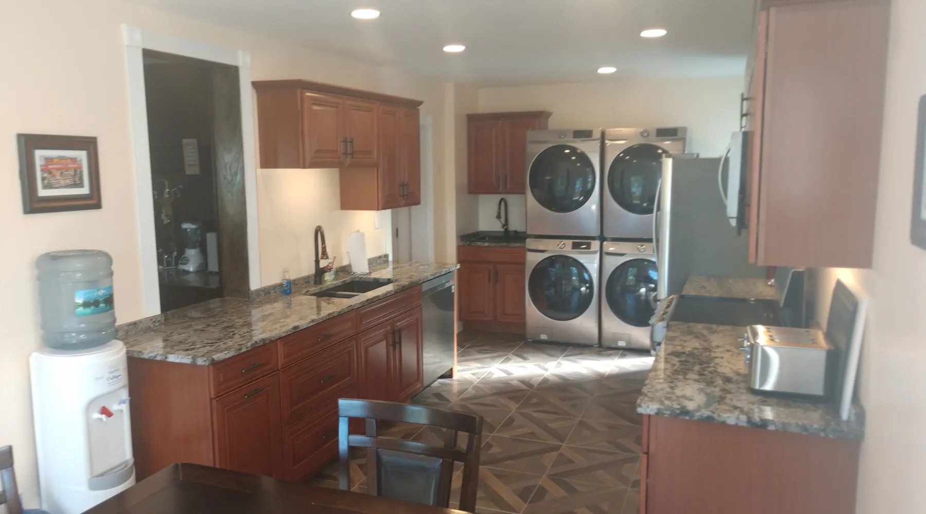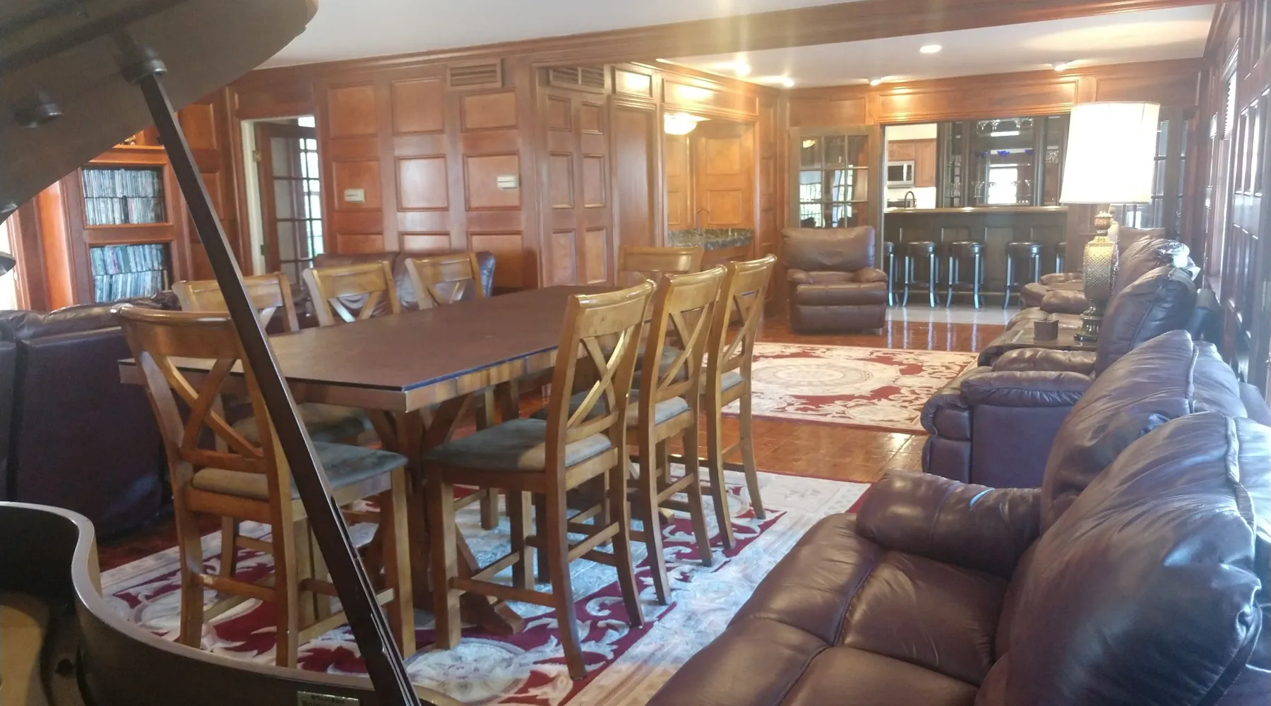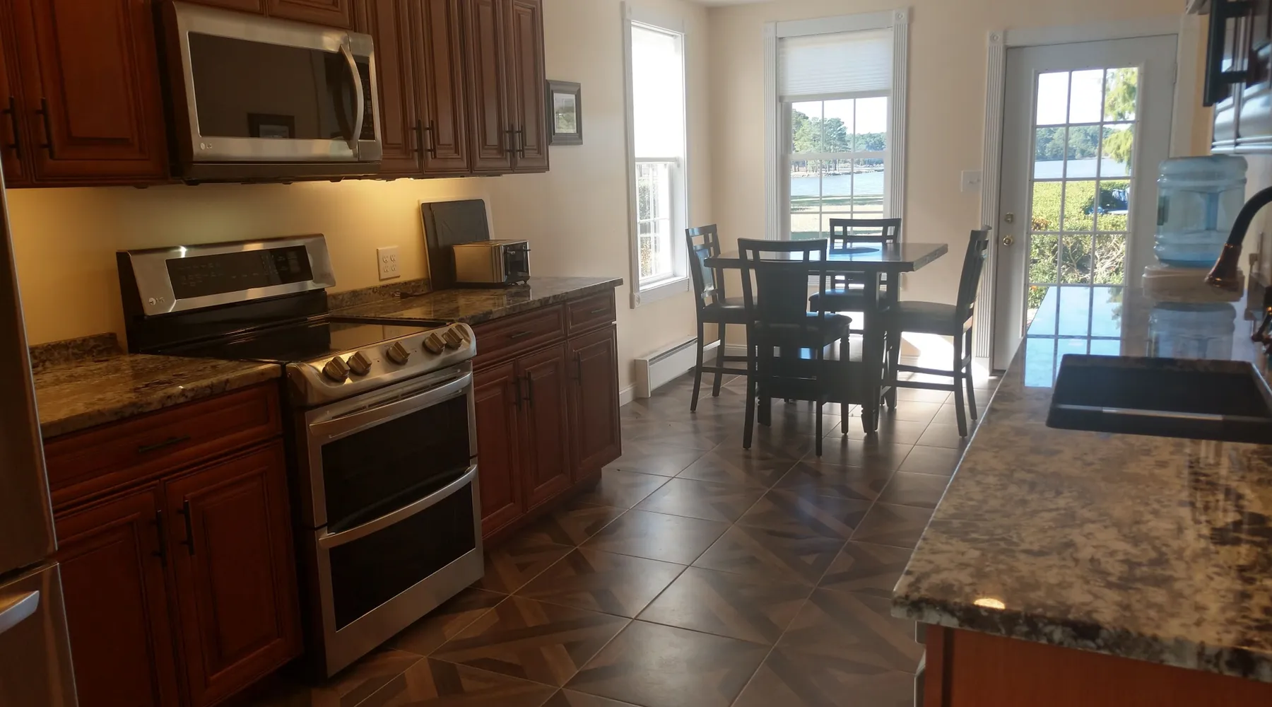 Kingsbay Bayhouse is an exclusive private waterfront house separated by a 70 foot grand solarium hallway off Kingsbay Mansion. Recently, a 350 square foot brand new Kitchen renovation was added, completely out fitted with all new state of art appliances and fully stocked with cooking and serving accessories. In addition, there are two sets of free to use, new washers and dryers. Along, with a custom bar room that seats 12, and a Great Room that provides leather recliner(s) theater seating for 15 people at one time and a counter height dining table center, for eight. Complete with built-in book selves all reminiscence of an Old English Hardwood Paneled Pub and Parlor rooms. You will be renting the 3000 square foot guest house to Kingsbay Mansion called The Bay House. There's a five bedroom three bathroom great room, English Pub bar brand new kitchen and a dedicated swimming pool for you and your guests only. Kingsbay Mansion has five suites, that we rent as a boutique Hotel that is a 13,000 ft house to itself. We also have a property called Kingsbay Dockside with four bedroom three bath Waterfront in ground swimming pool, that you may be also interested in. Please note: KINGSBAY MANSION is our premier property ran as a boutique hotel for nightly stays, or the entire venue for family reunions, weddings and events. This gated, elegant Georgian waterfront estate is one of a kind. Located on Maryland's Eastern Shore, Kingsbay is peninsula on Coulbourn Creek at the mouth of the Chesapeake Bay just north of Crisfield Maryland. It is the largest private home in Somerset County and was designed by Ian McCallum, the architect for Colonial Williamsburg. Built in 1970 on 7 acres and in middle of 500 acres of prime Maryland farmland, this estate offers 11 bedrooms, 10 full baths and 2 half baths. Starting In 2015, Kingsbay Mansion has been transformed into a breathtaking Executive B&B and Private Event Center. Five of its spectacular suites with private baths are being offered as part of the Kingsbay Mansion B&B. The entire estate is available for private functions, corporate events and destination weddings. There is approximately 2000 feet of shoreline with dock for boating and kayaking. Kingsbay has 13K square feet of living space and boasts a three-story rotunda with a domed skylight and Belgian crystal chandelier. The music hall offers vaulted ceilings, another stunning chandelier, grand piano and large theater organ. The formal living room is designed with a doublewide fireplace and an impressive beamed, crown molded ceiling. The formal dining room has a Chinese Chippendale theme with built-mirrored china cupboards, fireplace and chandelier. Other rooms include the family dining room, breakfast room, lounge bar, rear foyer bar, wood paneled library and more. There are two fully stocked bars and the in-ground Grecian swimming pool with slate deck and fountain with magnificent views of the waterfront and the manicured Japanese gardens. Kingsbay Mansion, Bayhouse, Waterside Retreat Compound, Cottage and the Dockside House, vacation rentals properties are available to rent for any occasion to accommodate up to 44 guests.