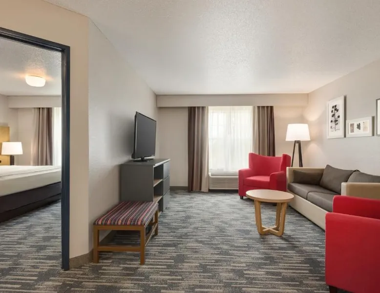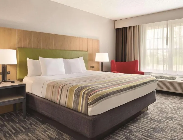 Comfortable Accommodations: Country Inn & Suites by Radisson in Pella offers family rooms with air-conditioning, private bathrooms, and modern amenities. Each room includes a tea and coffee maker, refrigerator, and free WiFi. Wellness and Leisure: Guests can enjoy a spa and wellness center, sauna, fitness center, indoor swimming pool, and sun terrace. Additional facilities include a hot tub, fitness room, and outdoor seating area. Convenient Location: Located 52 mi from Des Moines International Airport, the hotel provides free on-site parking and is highly rated for its room cleanliness and breakfast. Nearby attractions include hiking trails. Offering free WiFi and a TV with HD channels, this room also includes a microwave, refrigerator, coffee machine and a sofa bed.