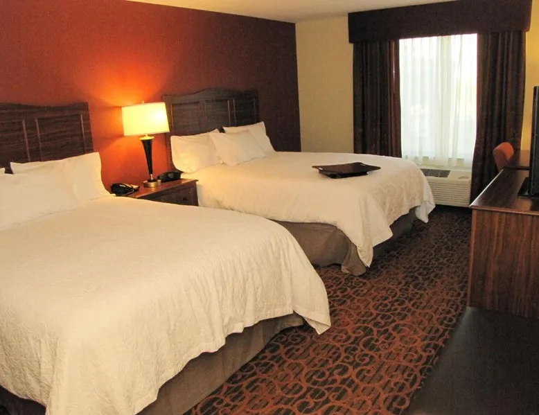 Comfortable Accommodations: Hampton Inn & Suites Jamestown in Jamestown offers comfortable rooms with free WiFi, air-conditioning, and modern amenities. Each room includes a tea and coffee maker, refrigerator, shower, and TV. Leisure Facilities: Guests can enjoy a fitness center, indoor swimming pool, and hot tub. The property also features a lounge, fitness room, and 24-hour front desk. Dining Options: A continental breakfast is served daily, including warm dishes, juice, fresh pastries, pancakes, and fruits. Room service is available for added convenience. Convenient Location: Located 4.3 mi from Jamestown Regional Airport, the hotel is praised for its convenient location and excellent service. Boasting free Wi-Fi and a 42-inch flat-screen cable TV, this room is equipped with tea and coffee-making facilities.