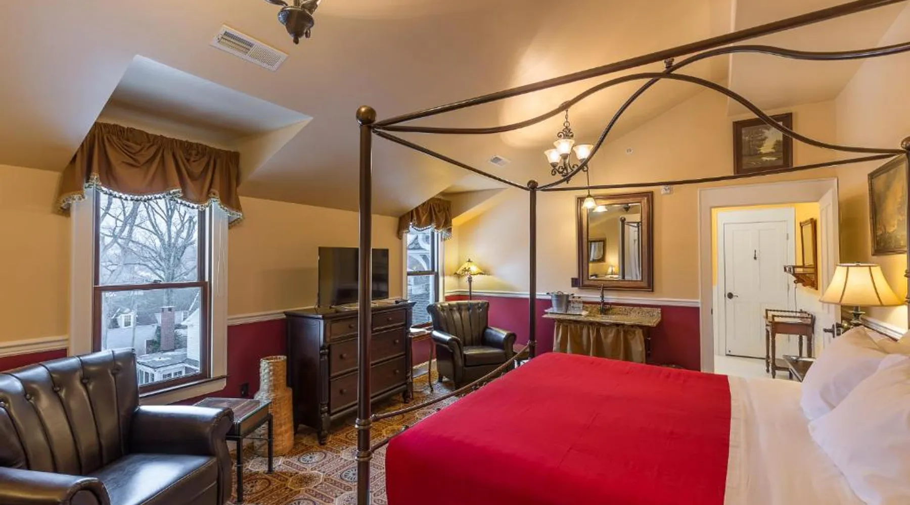 Historic Charm: Steele Mansion Inn & Gathering Hub in Painesville offers a 4-star experience housed in a historic building. Guests enjoy garden views and a sun terrace, complemented by a bar and free WiFi. Comfortable Accommodations: Rooms feature air-conditioning, private bathrooms, and modern amenities such as flat-screen TVs and soundproofing. Additional facilities include a lounge, elevator, and 24-hour front desk. Delicious Breakfast: A child-friendly buffet serves American breakfast with juice and fruits, highly praised by guests for its quality. Prime Location: Located 27 mi from Cleveland Orchestra and Cleveland Museum of Natural History, the inn provides easy access to local attractions. Free on-site private parking is available. This suite consists of 1 living room, 1 separate bedroom and 1 bathroom with a bath and free toiletries. The air-conditioned suite provides a flat-screen TV with cable channels, soundproof walls, a seating area, a wardrobe as well as garden views. The unit offers 1 bed.