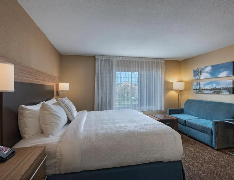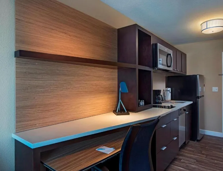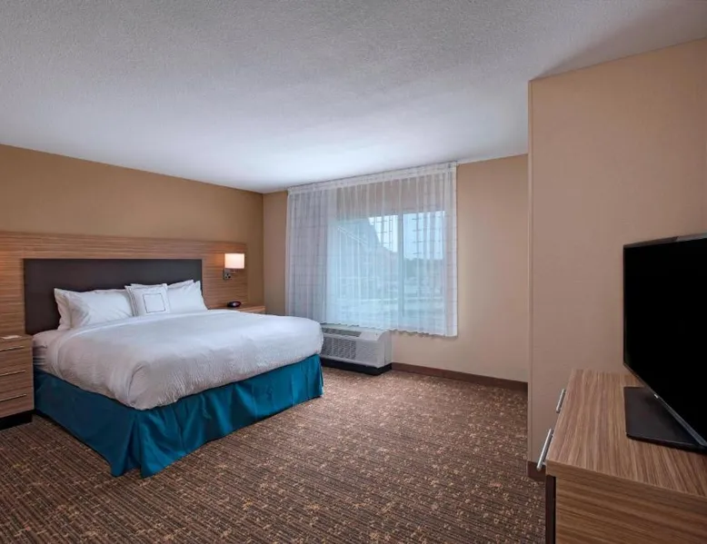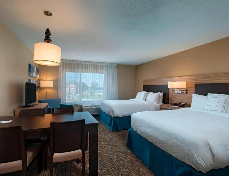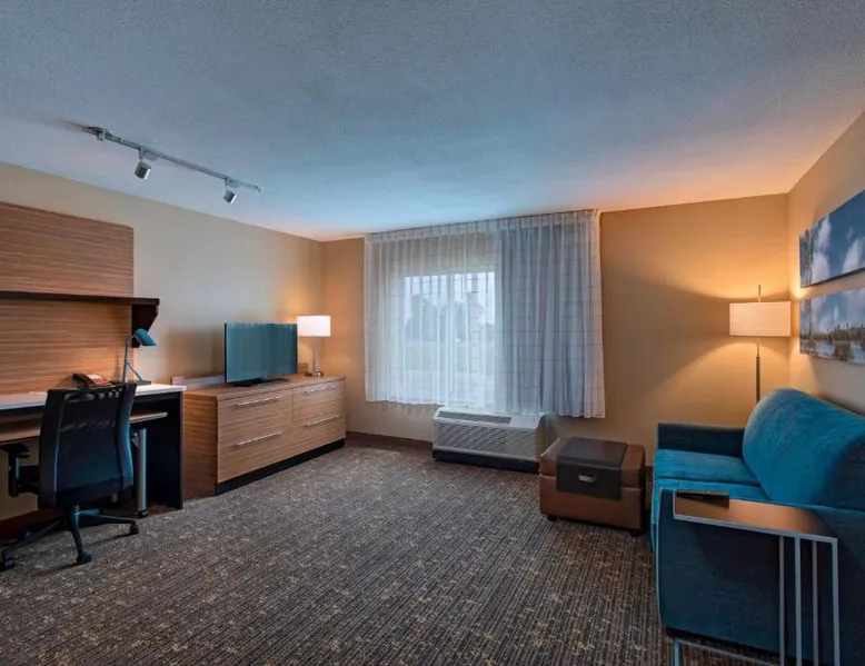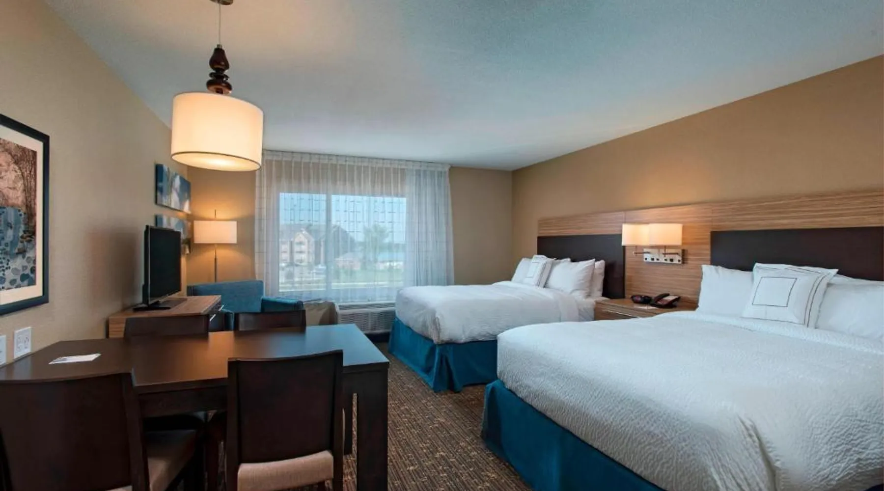 Comfortable Accommodations: TownePlace Suites by Marriott Columbia in Columbia offers family rooms with air-conditioning, private bathrooms, and TVs. Each room includes a work area and free WiFi, ensuring a pleasant stay. Exceptional Facilities: Guests can enjoy a saltwater swimming pool, fitness center, and free bicycles. Additional amenities include a restaurant serving American and Korean cuisines, a lounge, outdoor fireplace, and barbecue facilities. Convenient Services: The hotel provides a free airport shuttle service to Columbia Regional Airport, 7.5 mi away. Free on-site parking, a 24-hour front desk, and express check-in and check-out services enhance the guest experience. This suite features a TV. The unit has 2 beds.