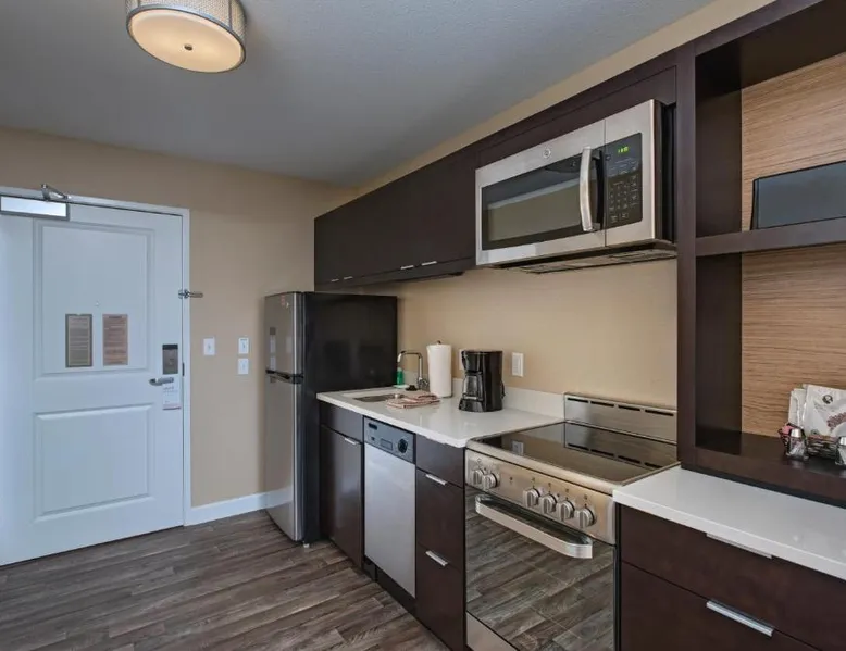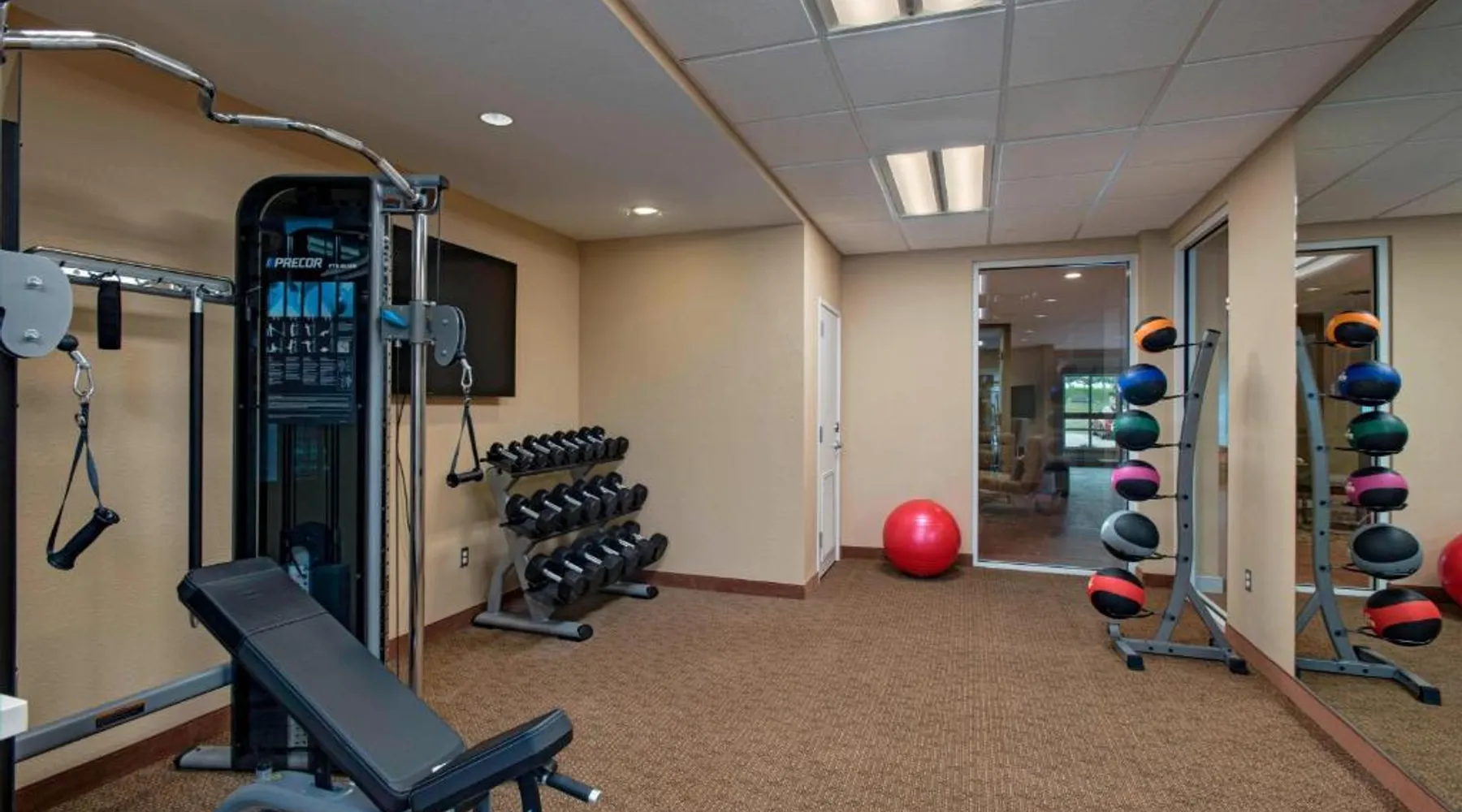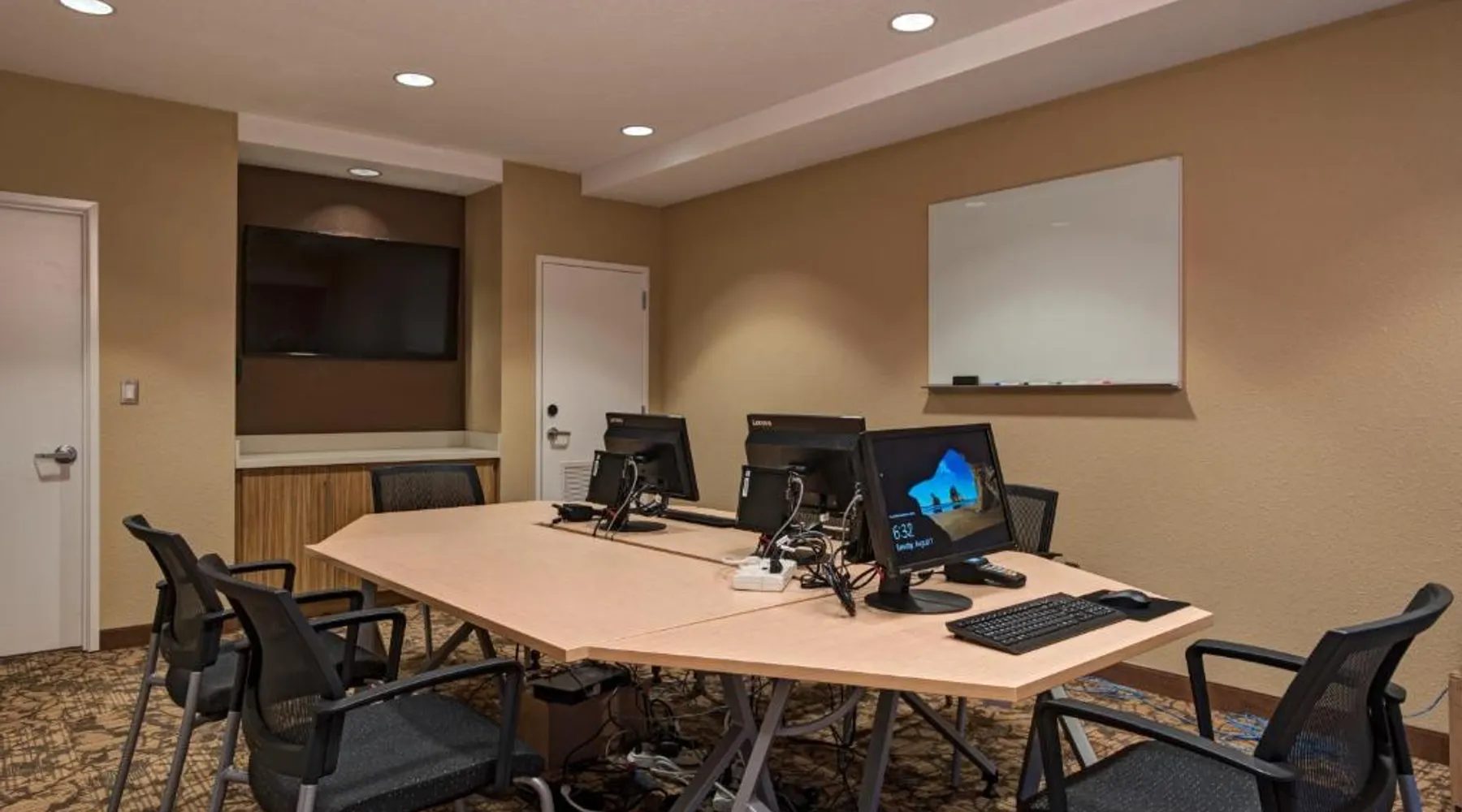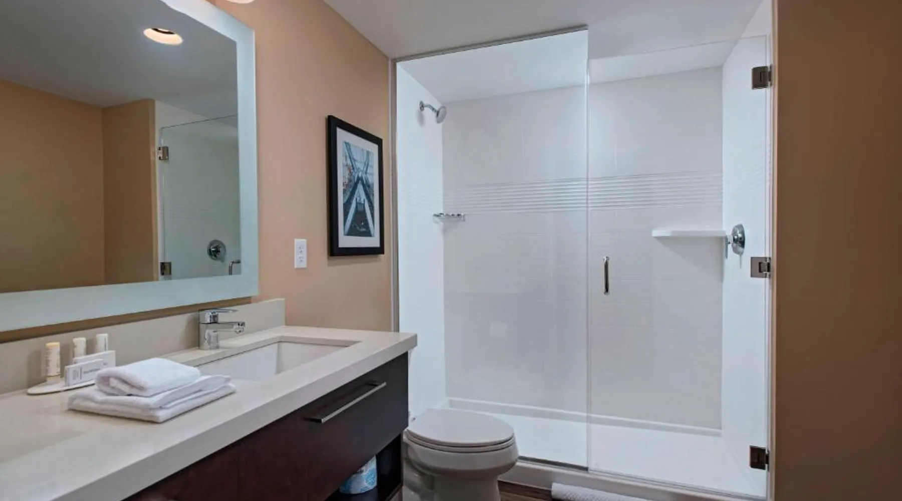 Comfortable Accommodations: TownePlace Suites by Marriott Columbia in Columbia offers family rooms with air-conditioning, private bathrooms, and TVs. Each room includes a work area and free WiFi, ensuring a pleasant stay. Exceptional Facilities: Guests can enjoy a saltwater swimming pool, fitness center, and free bicycles. Additional amenities include a restaurant serving American and Korean cuisines, a lounge, outdoor fireplace, and barbecue facilities. Convenient Services: The hotel provides a free airport shuttle service to Columbia Regional Airport, 7.5 mi away. Free on-site parking, a 24-hour front desk, and express check-in and check-out services enhance the guest experience. This suite features a TV. The unit has 2 beds.