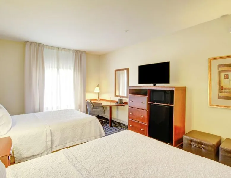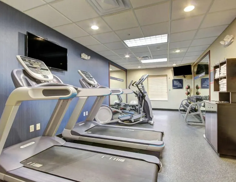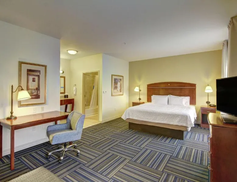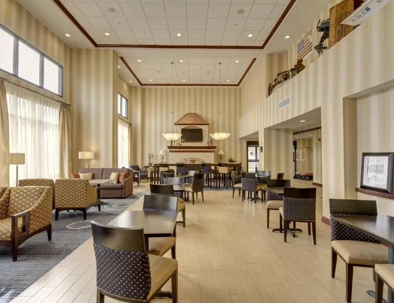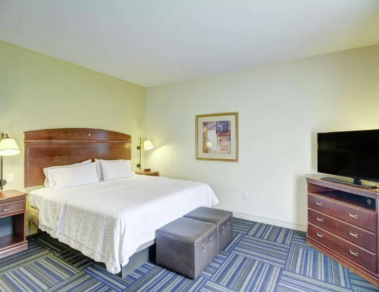 Comfortable Accommodations: Hampton Inn and Suites Alexandria in Alexandria offers rooms with free WiFi, private check-in and check-out, and family rooms. Each room includes a tea and coffee maker, hairdryer, refrigerator, microwave, shower, and TV. Leisure Facilities: Guests can enjoy a fitness center, indoor swimming pool, and hot tub. Additional amenities include a lounge, fitness room, elevator, outdoor seating area, and a business area. Free off-site parking is available. Local Attractions: Located 71 mi from St. Cloud Regional Airport and 20 mi from Evansville Art Center. Activities include fishing, skiing, canoeing, hiking, and cycling. Guests appreciate the room cleanliness, comfort, and breakfast provided by the property. Boasting free Wi-Fi and a flat-screen TV with cable channels, this room is equipped with tea and coffee-making facilities, refrigerator and a microwave.