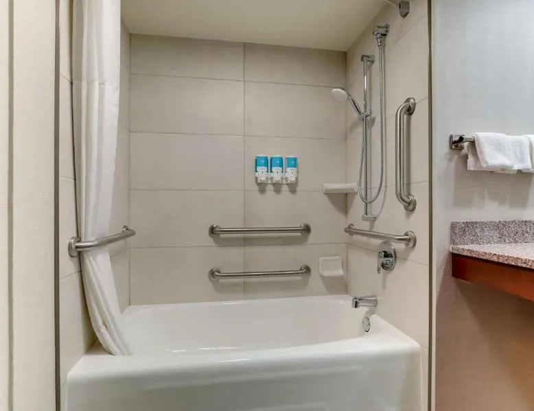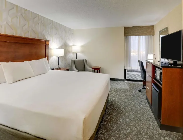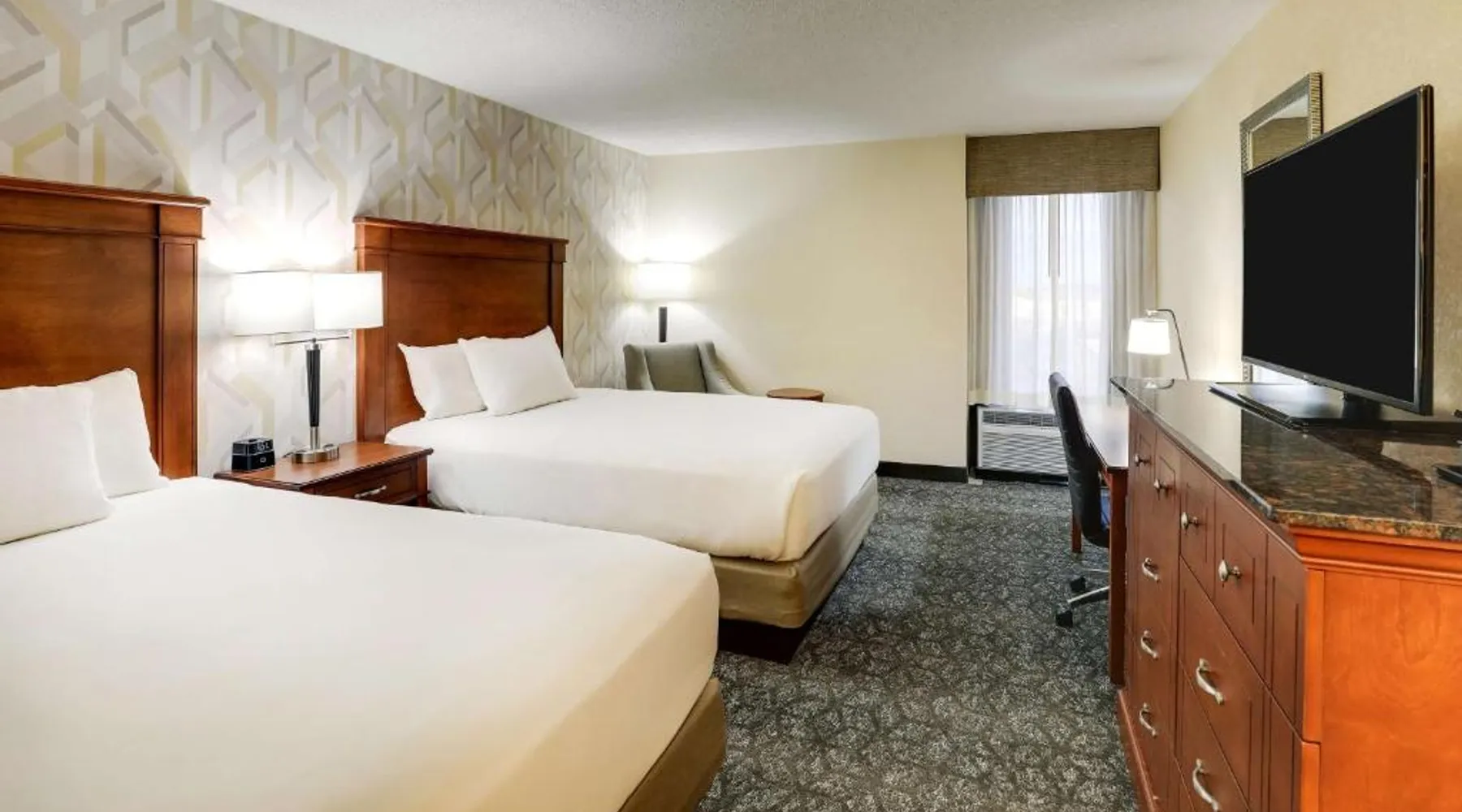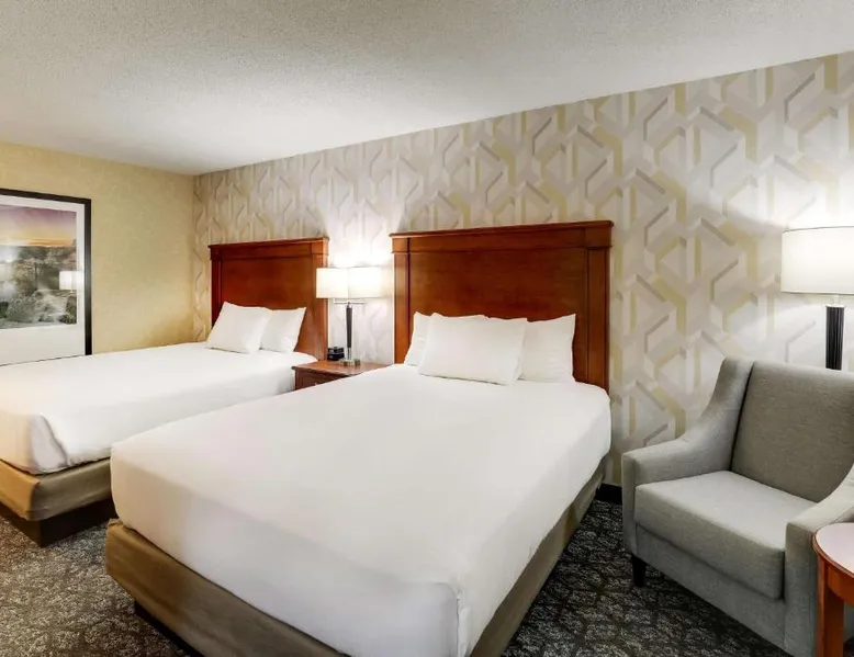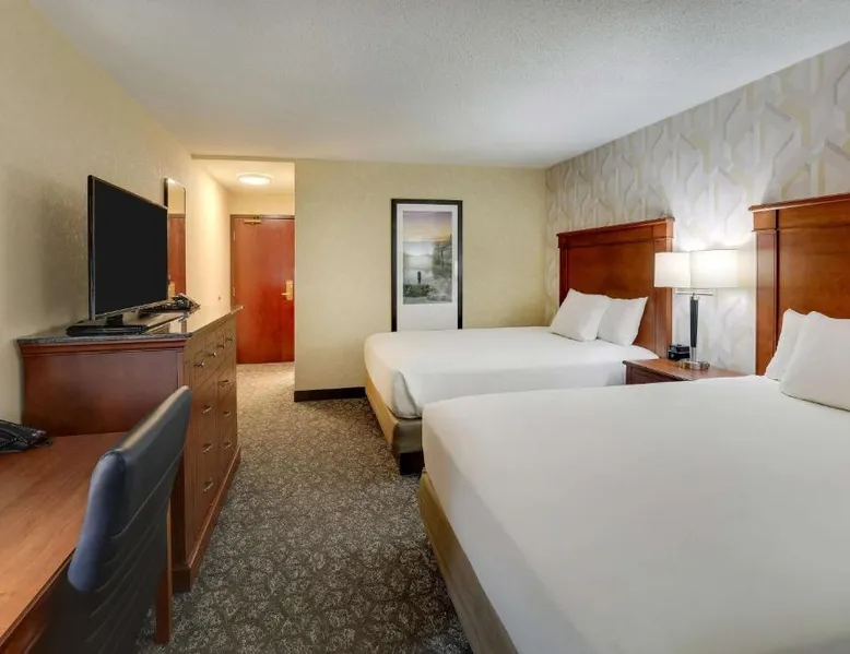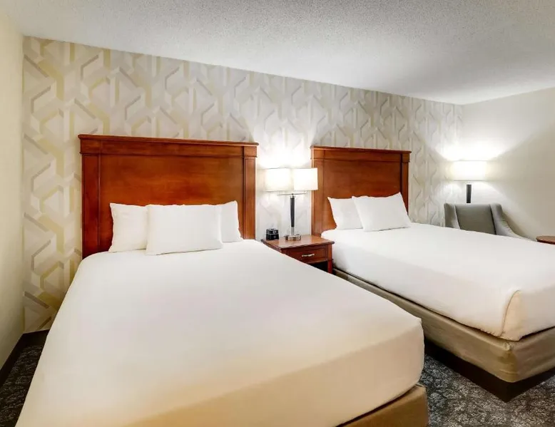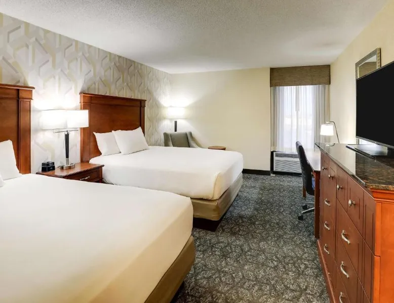 Located off Interstate 57, this Drury Inn & Suites Marion is less than 1 mile away from shopping at Illinois Center Mall. A daily hot breakfast is served, and each room contains a flat-screen cable TV. Free WiFi is provided in every room at Drury Inn & Suites Marion. For added convenience, each room includes a microwave and refrigerator. An indoor pool and hot tub are available at Drury Inn & Suites Marion. Guests can make use of the fitness center and launderette facilities during their stay. Free appetizers and beverages are served nightly. Kokopelli Golf Club can be reached in 3 minutes’ drive. Crab Orchard National Wildlife Refuge is 10 miles away. This air-conditioned quadruple room is consisted of of a flat-screen TV with cable channels and a private bathroom. The unit has 2 beds.