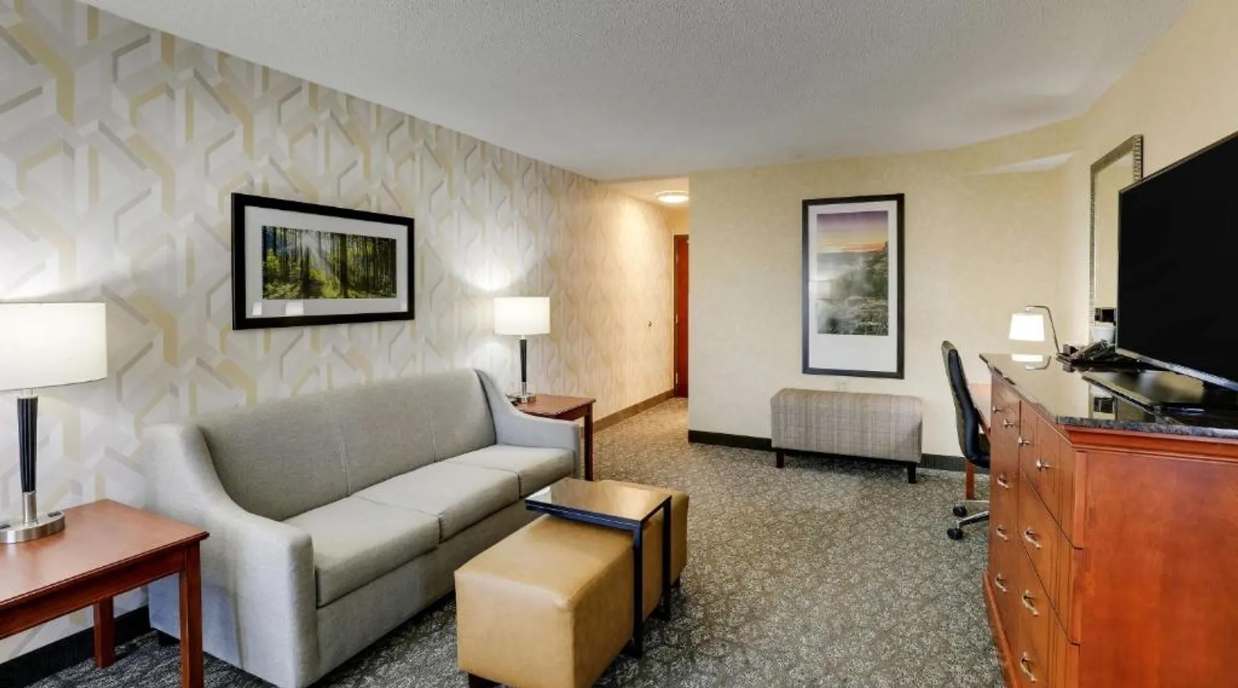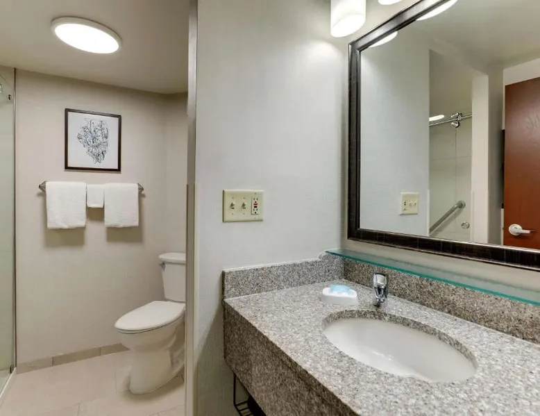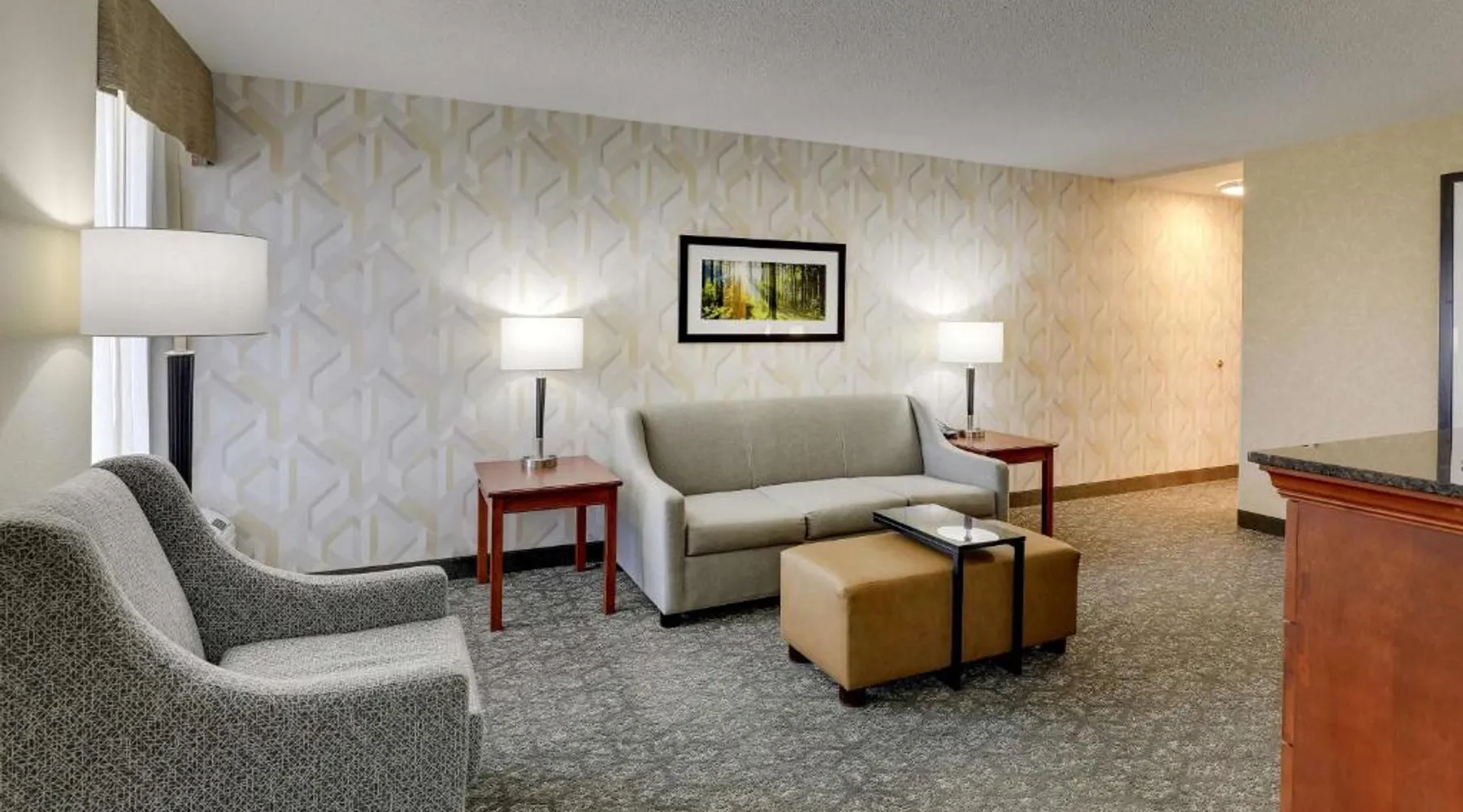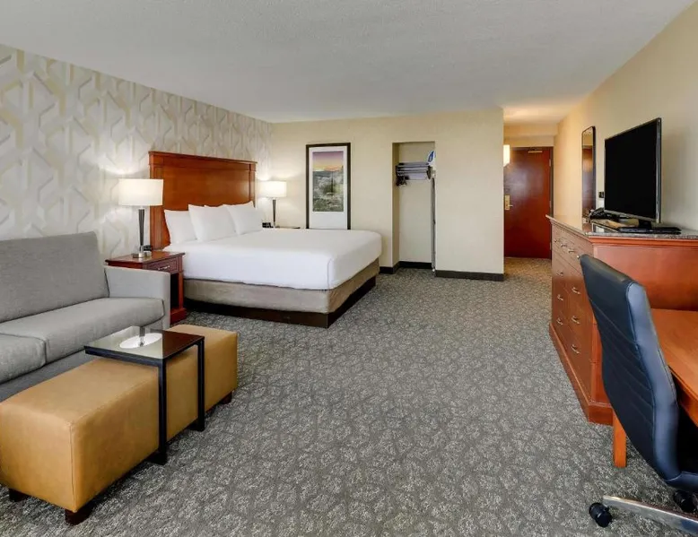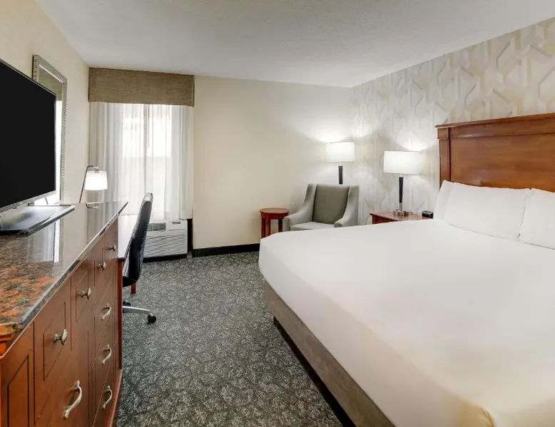 Located off Interstate 57, this Drury Inn & Suites Marion is less than 1 mile away from shopping at Illinois Center Mall. A daily hot breakfast is served, and each room contains a flat-screen cable TV. Free WiFi is provided in every room at Drury Inn & Suites Marion. For added convenience, each room includes a microwave and refrigerator. An indoor pool and hot tub are available at Drury Inn & Suites Marion. Guests can make use of the fitness center and launderette facilities during their stay. Free appetizers and beverages are served nightly. Kokopelli Golf Club can be reached in 3 minutes’ drive. Crab Orchard National Wildlife Refuge is 10 miles away. This air-conditioned quadruple room is consisted of of a flat-screen TV with cable channels and a private bathroom. The unit has 2 beds.