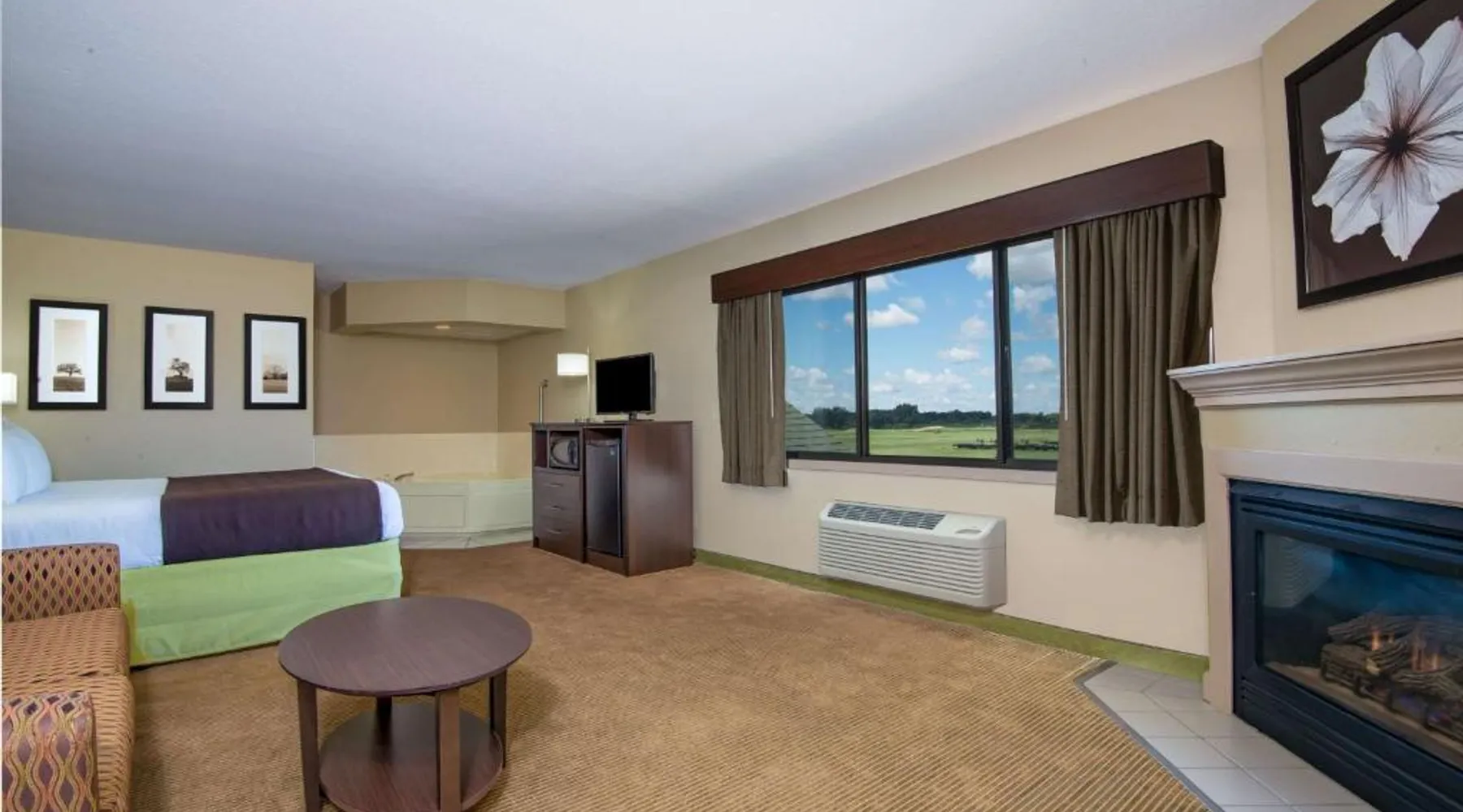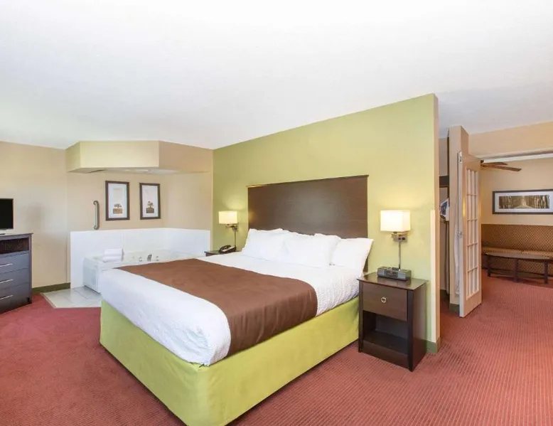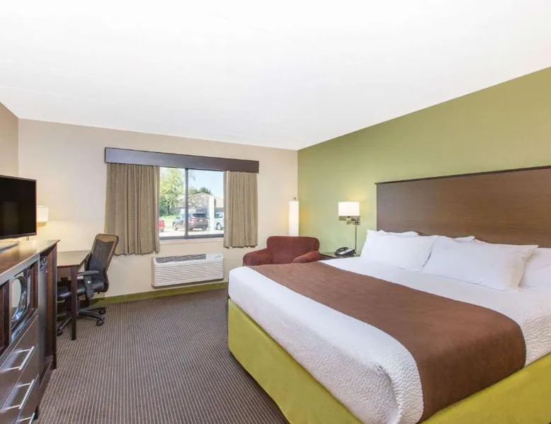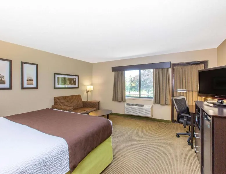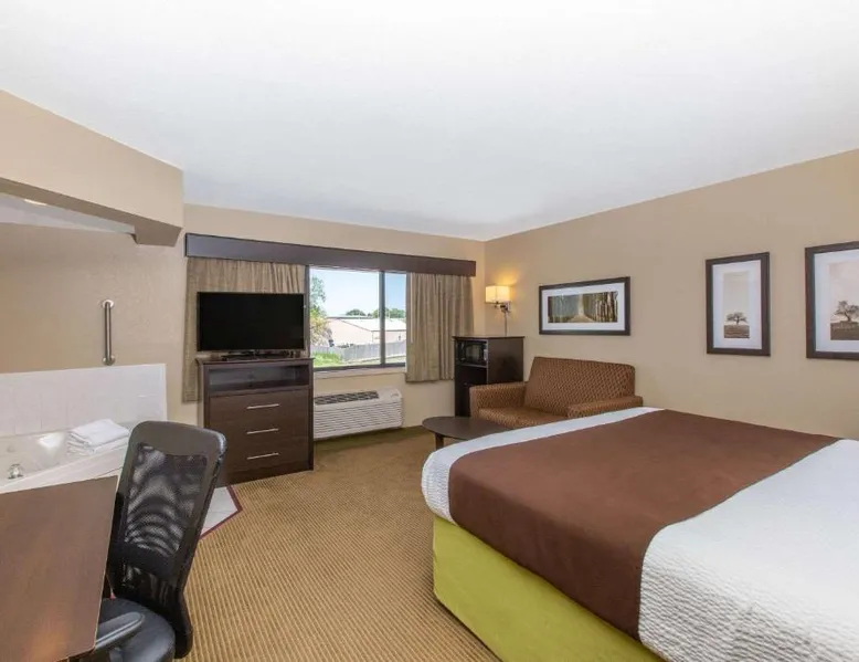 Comfortable Accommodations: AmericInn by Wyndham Okoboji in Okoboji offers rooms with air-conditioning, private bathrooms, and free WiFi. Each room includes a work desk, TV, and free toiletries. Leisure Facilities: Guests can enjoy a sauna, sun terrace, indoor swimming pool, and hot tub. Additional amenities include an outdoor fireplace, steam room, and barbecue facilities. Dining Options: A continental breakfast is served daily, featuring juice, fresh pastries, and fruits. The property also offers a minimarket and outdoor seating area. Location and Attractions: Located 2.5 mi from Arnolds Park Amusement Park and 100 mi from Sioux Falls Regional Airport. Highly rated for room cleanliness, breakfast, and comfort. Offering a 32-inch flat-screen TV and free Wi-Fi, this room includes either a patio or balcony. A microwave and a refrigerator are also provided.