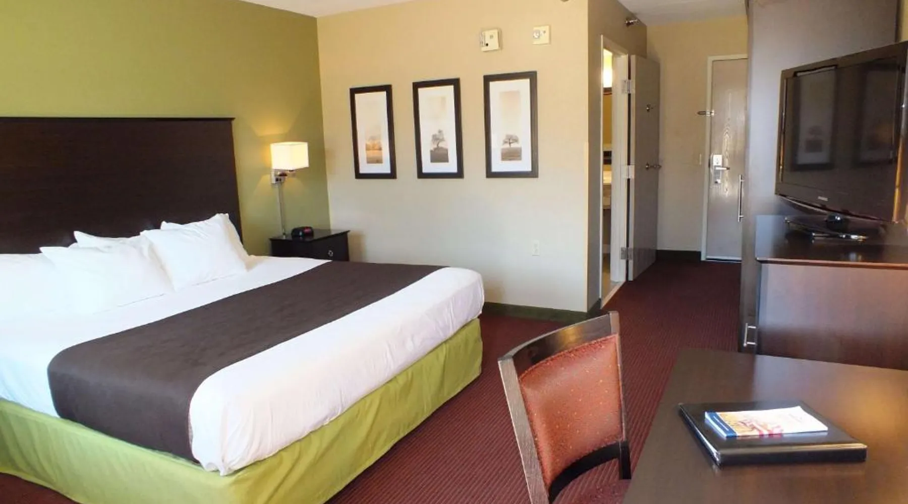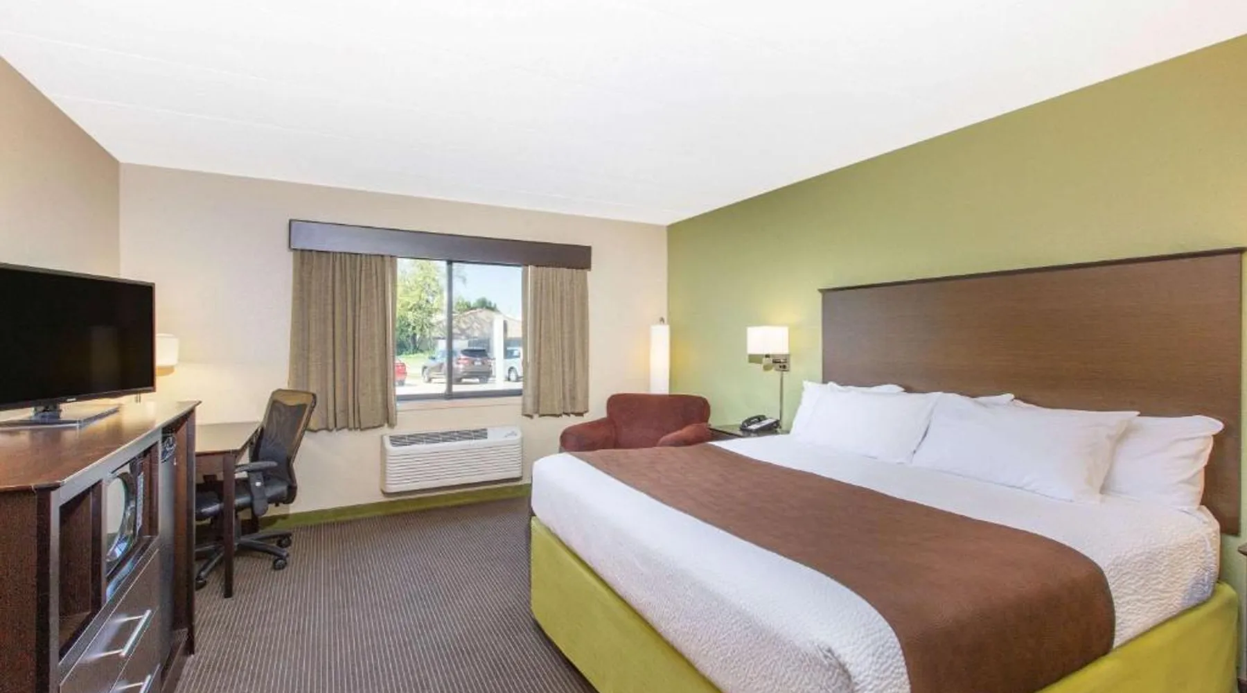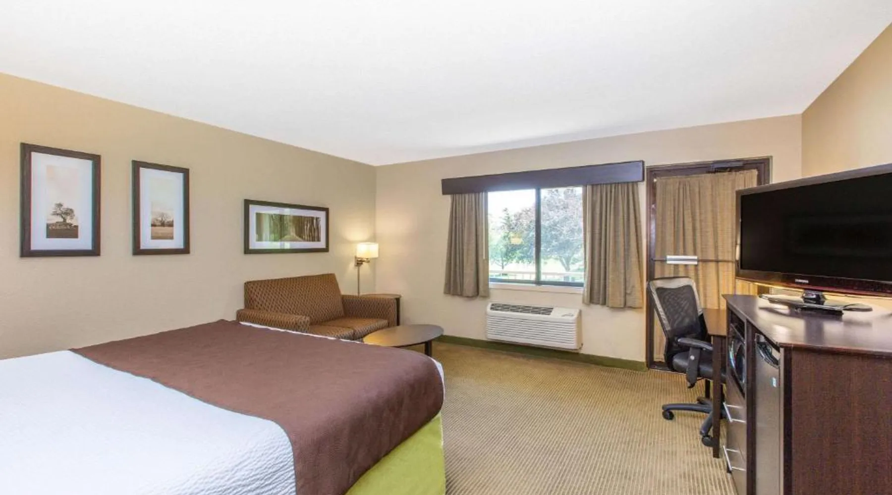 Comfortable Accommodations: AmericInn by Wyndham Okoboji in Okoboji offers rooms with air-conditioning, private bathrooms, and free WiFi. Each room includes a work desk, TV, and free toiletries. Leisure Facilities: Guests can enjoy a sauna, sun terrace, indoor swimming pool, and hot tub. Additional amenities include an outdoor fireplace, steam room, and barbecue facilities. Dining Options: A continental breakfast is served daily, featuring juice, fresh pastries, and fruits. The property also offers a minimarket and outdoor seating area. Location and Attractions: Located 2.5 mi from Arnolds Park Amusement Park and 100 mi from Sioux Falls Regional Airport. Highly rated for room cleanliness, breakfast, and comfort. Offering a 32-inch flat-screen TV and free Wi-Fi, this room includes either a patio or balcony. A microwave and a refrigerator are also provided.