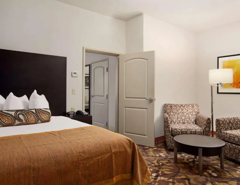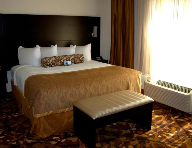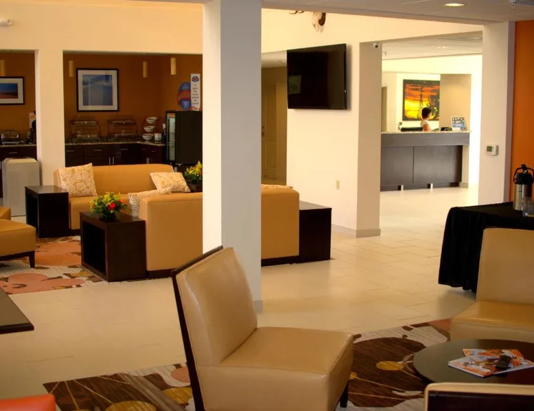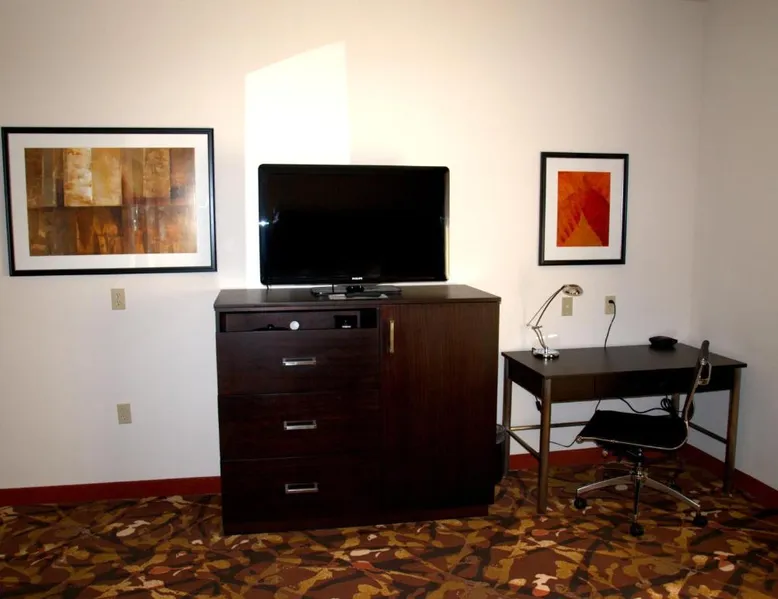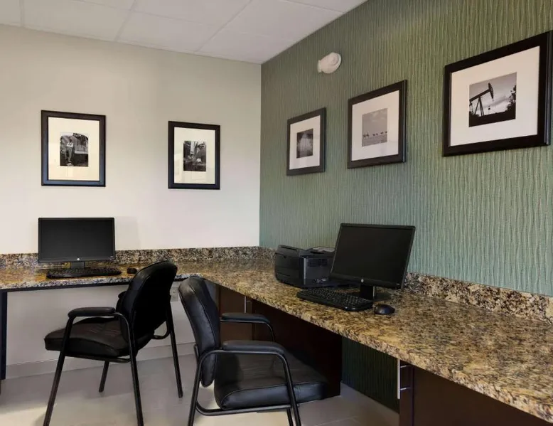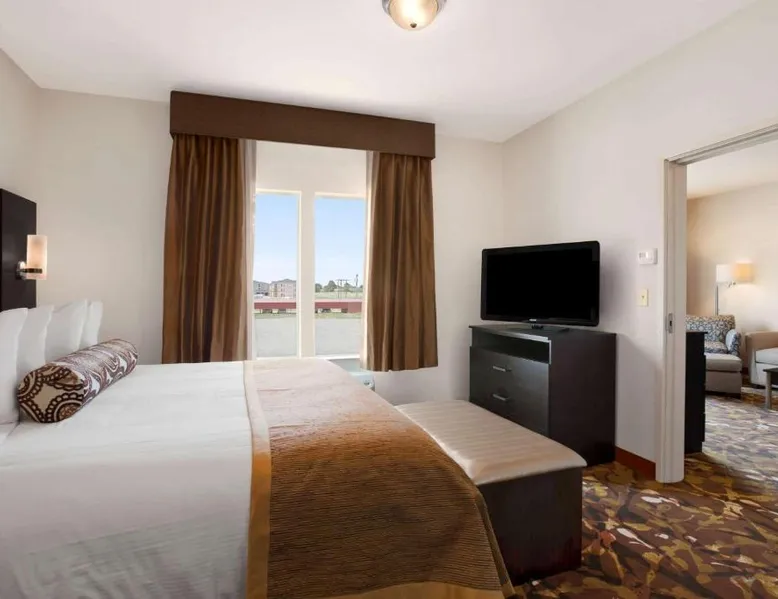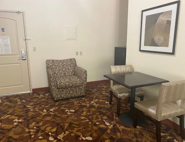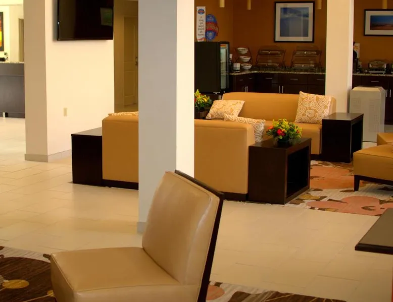 Comfortable Accommodations: Baymont by Wyndham Hobbs in Hobbs offers family rooms with air-conditioning, private bathrooms, and free WiFi. Each room includes a work desk, TV, and wardrobe. Leisure Facilities: Guests can enjoy a fitness center, seasonal outdoor swimming pool, and outdoor seating area. Free on-site parking is available. Convenient Services: The hotel provides a lounge, fitness room, elevator, 24-hour front desk, housekeeping, business area, and free continental breakfast. Location and Attractions: Located 5.6 mi from Lea County Regional Airport, the property is near attractions such as the Hobbs Museum and the Hobbs Zoo. This air-conditioned quadruple room includes a flat-screen TV with cable channels and a private bathroom. The unit offers 2 beds.