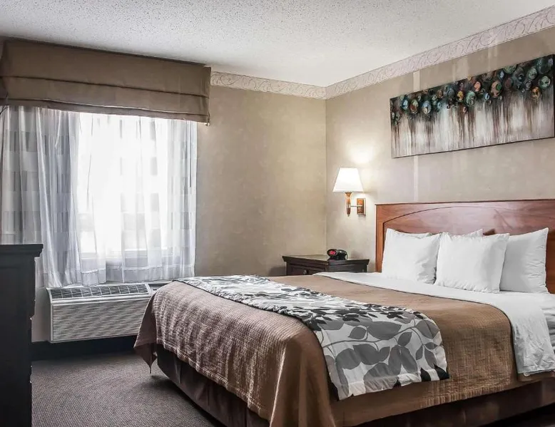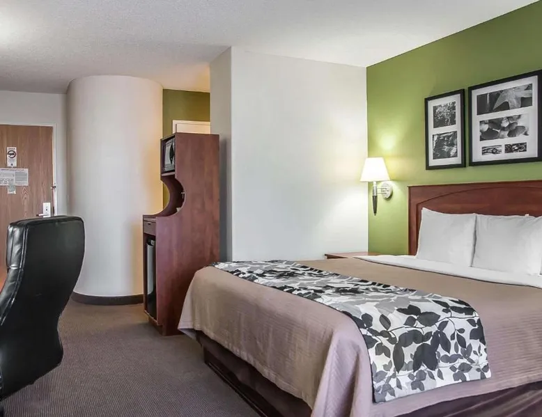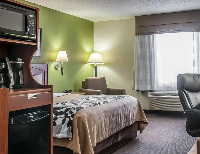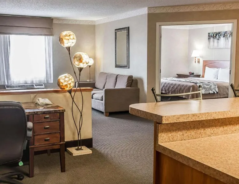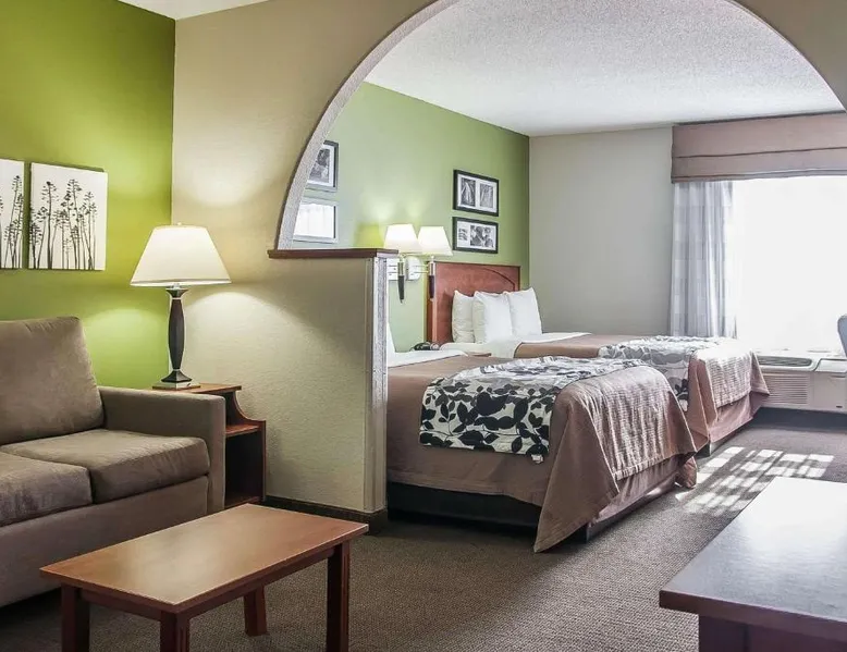 Comfortable Accommodations: Sleep Inn & Suites Conference Center and Water Park in Minot offers comfortable rooms with amenities such as free WiFi, air-conditioning, and a work desk. Each room includes a tea and coffee maker, hairdryer, microwave, and a TV. Leisure Facilities: Guests can enjoy a fitness center, indoor swimming pool, plunge pool, and a hot tub. The hotel also features a casino, games room, and a kids' pool, ensuring entertainment for all ages. Dining Options: A continental buffet breakfast is served daily, including juice, fresh pastries, and cheese. Additional amenities include a bar and a business area, catering to both leisure and business travelers. Convenient Location: Located 5 mi from Minot International Airport, the hotel is near nearby shops and theme parks. Free on-site parking is available, and the 24-hour front desk provides excellent service. This suite has a tea and coffee maker, a safe deposit box and a TV with cable channels. The unit has 1 bed.