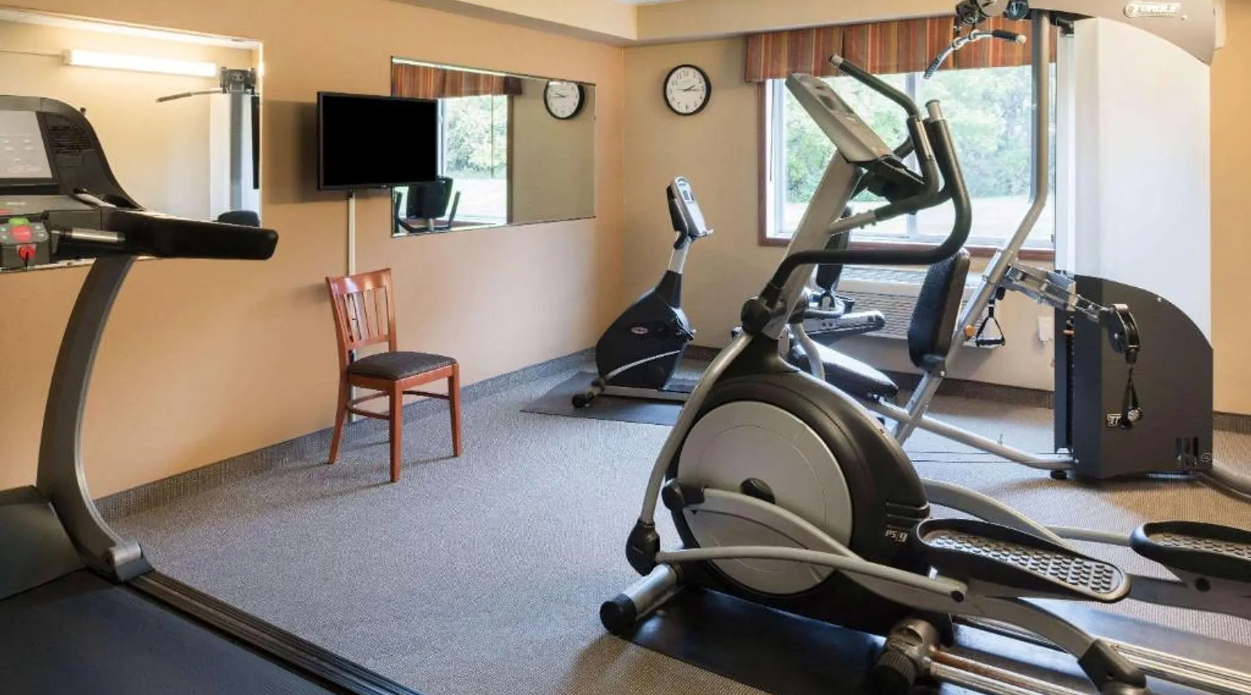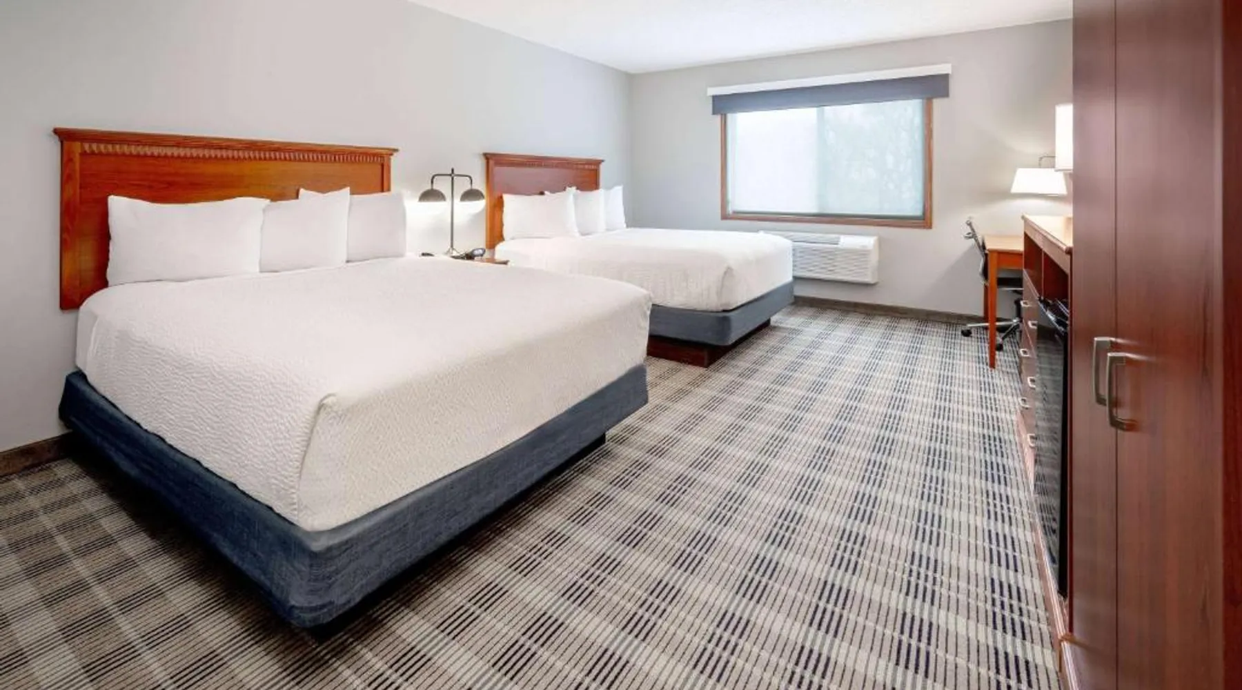 Comfortable Accommodations: AmericInn by Wyndham Valley City Conference Center in Valley City offers family rooms with air-conditioning, private bathrooms, and modern amenities. Each room includes a work desk, free toiletries, and a TV. Exceptional Facilities: Guests can enjoy a sauna, fitness center, indoor swimming pool, and free WiFi. Additional facilities include a hot tub, outdoor fireplace, and a lounge. Dining Experience: The modern restaurant serves American cuisine with vegetarian and gluten-free options. Breakfast includes warm dishes, fresh pastries, and a variety of beverages. Convenient Location: Located 34 mi from Jamestown Regional Airport, the hotel provides free on-site private parking. Nearby attractions include the Valley City Museum and the North Dakota State Fairgrounds. This room features a cable TV and a work desk. A microwave, fridge and coffee-making facilities are included.