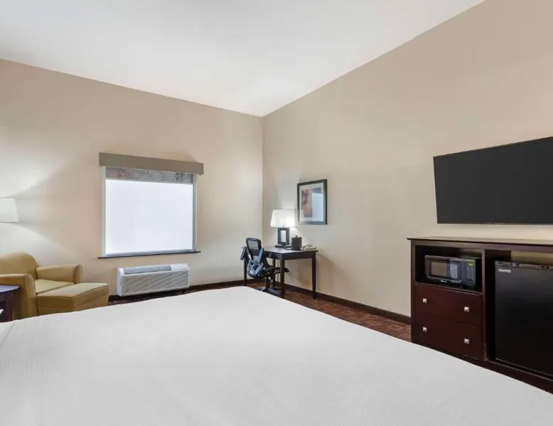 Comfortable Accommodations: Best Western Plus Goliad Inn & Suites in Goliad offers air-conditioned rooms with private bathrooms, tea and coffee makers, and free WiFi. Each room includes a work desk, refrigerator, and wardrobe. Leisure Facilities: Guests can enjoy a fitness center, seasonal outdoor swimming pool, and barbecue facilities. Additional amenities include a elevator, 24-hour front desk, daily housekeeping, business area, and express check-in and check-out services. Convenient Location: Located 36 mi from Victoria Regional Airport, the hotel provides free on-site parking. Guests appreciate the room cleanliness, breakfast provided by the property, and attentive staff. This double room features a private bathroom and air conditioning. The unit offers 1 bed.