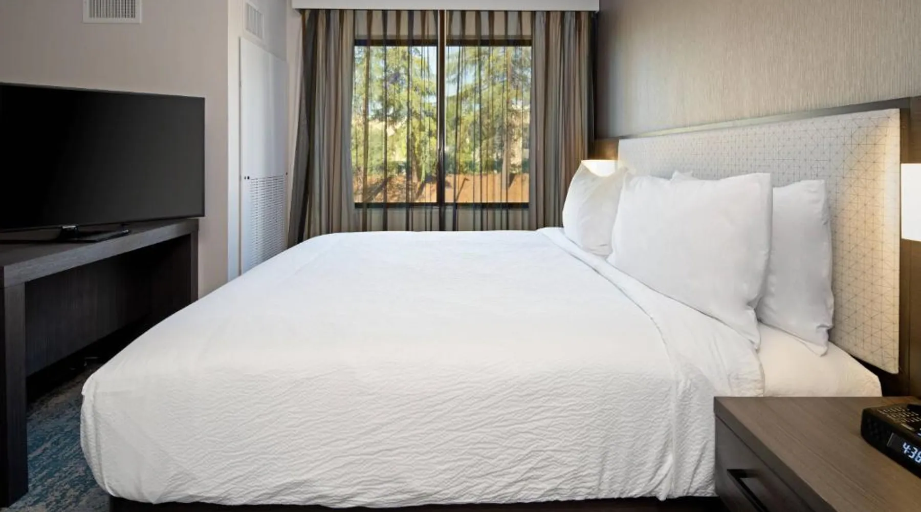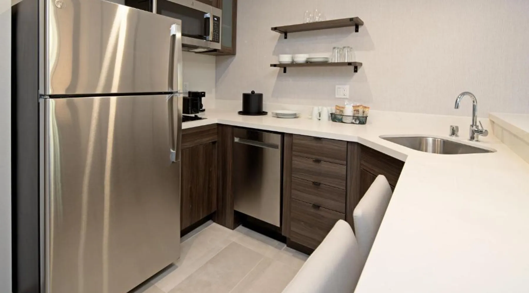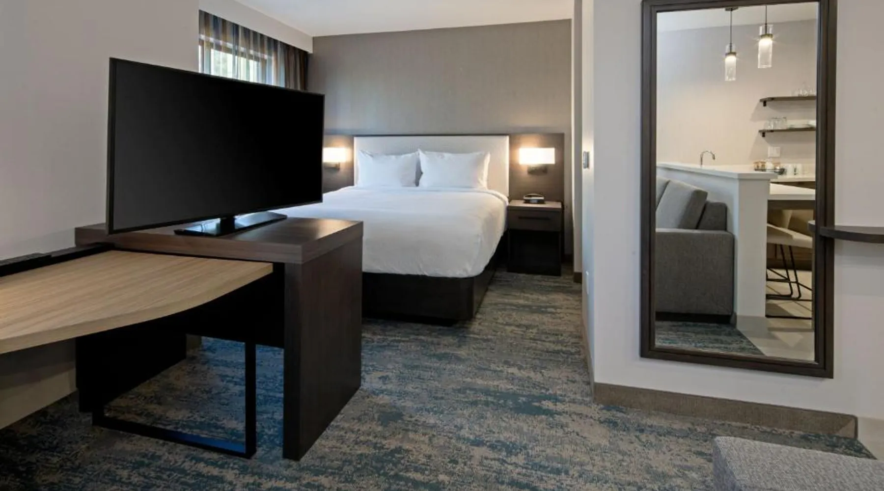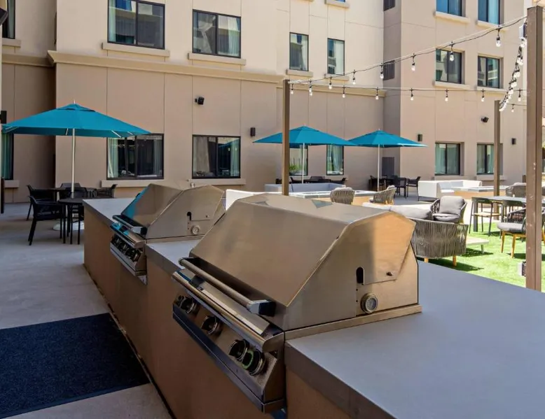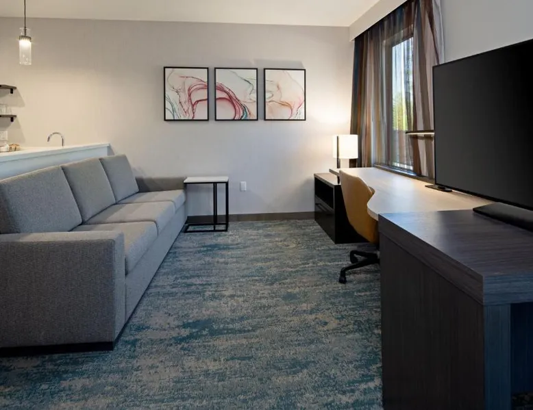 Comfortable Accommodations: Residence Inn by Marriott Valencia in Valencia offers rooms with air-conditioning, private bathrooms, and kitchen facilities. Guests enjoy amenities such as free toiletries, work desks, and streaming services. Exceptional Facilities: The hotel features a fitness center, bar, and a year-round outdoor swimming pool. Additional facilities include a lounge, outdoor fireplace, and games room. Delicious Breakfast: A variety of breakfast options are available, including continental, American, buffet, vegetarian, and gluten-free. Guests can enjoy warm dishes, fresh pastries, fruits, and juice. Prime Location: Located 21 mi from Hollywood Burbank Airport, the hotel is near attractions like Nethercutt Museum (12 mi) and Universal Studios Hollywood (25 mi). Activities such as hiking and rafting are available in the surroundings. The air-conditioned suite has 1 bedroom and 1 bathroom with a walk-in shower and a hairdryer. In the well-equipped kitchen, guests will find a stovetop, a refrigerator, a dishwasher and kitchenware. The suite features carpeted floors, a seating area with a flat-screen TV with streaming services, a tea and coffee maker, a dining area, as well as a wardrobe. The unit has 2 beds.