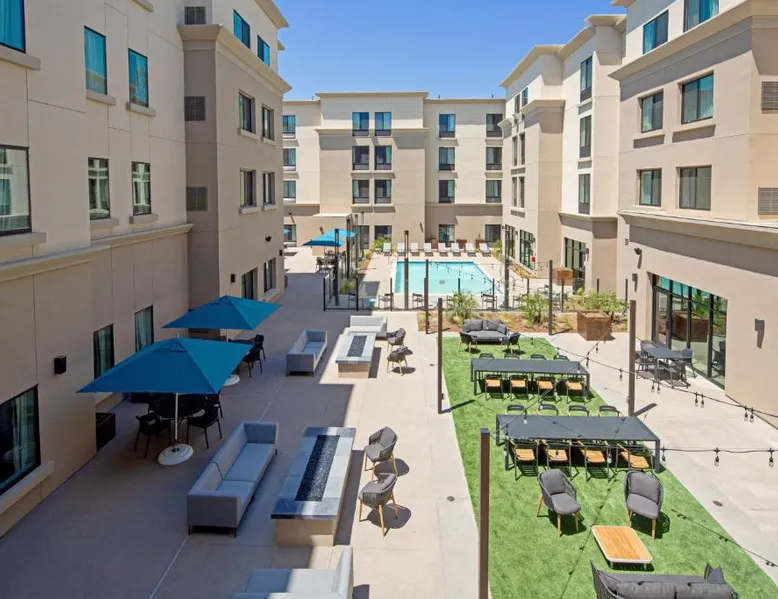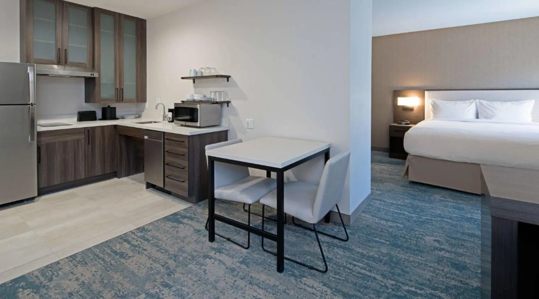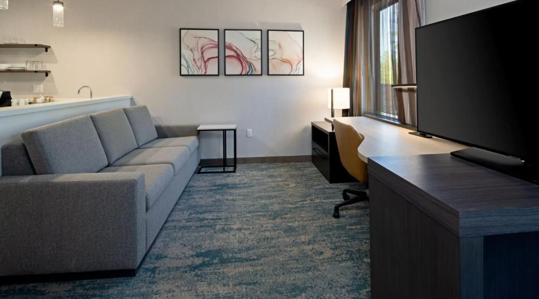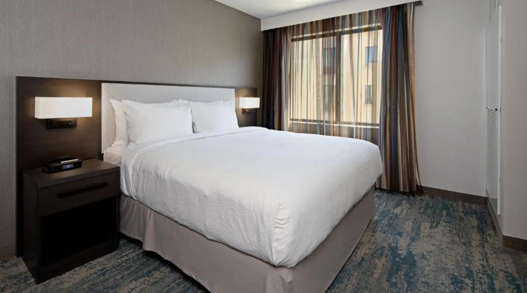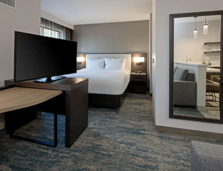Comfortable Accommodations: Residence Inn by Marriott Valencia in Valencia offers rooms with air-conditioning, private bathrooms, and kitchen facilities. Guests enjoy amenities such as free toiletries, work desks, and streaming services. Exceptional Facilities: The hotel features a fitness center, bar, and a year-round outdoor swimming pool. Additional facilities include a lounge, outdoor fireplace, and games room. Delicious Breakfast: A variety of breakfast options are available, including continental, American, buffet, vegetarian, and gluten-free. Guests can enjoy warm dishes, fresh pastries, fruits, and juice. Prime Location: Located 21 mi from Hollywood Burbank Airport, the hotel is near attractions like Nethercutt Museum (12 mi) and Universal Studios Hollywood (25 mi). Activities such as hiking and rafting are available in the surroundings. The air-conditioned suite has 1 bedroom and 1 bathroom with a walk-in shower and a hairdryer. In the well-equipped kitchen, guests will find a stovetop, a refrigerator, a dishwasher and kitchenware. The suite features carpeted floors, a seating area with a flat-screen TV with streaming services, a tea and coffee maker, a dining area, as well as a wardrobe. The unit has 2 beds.