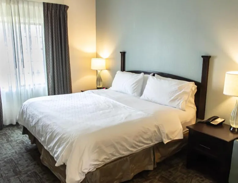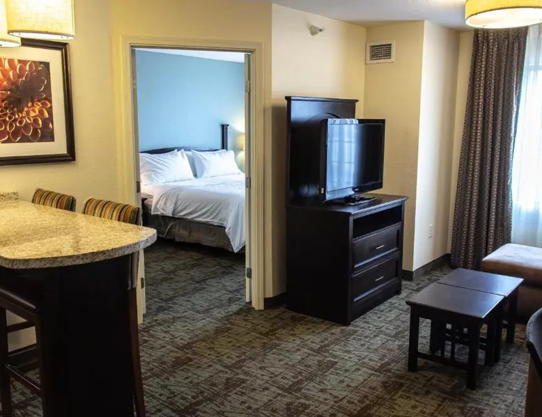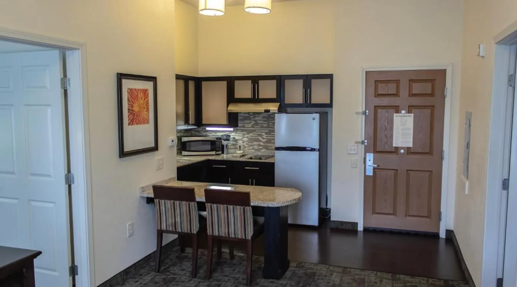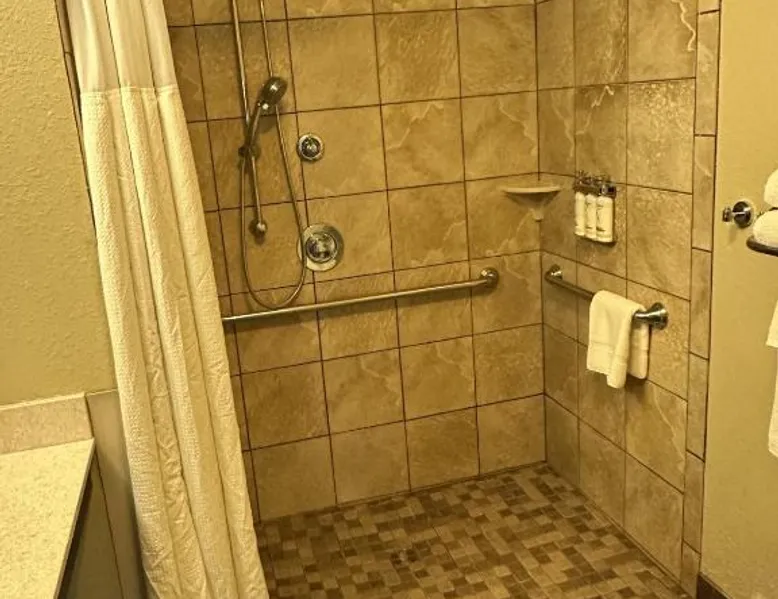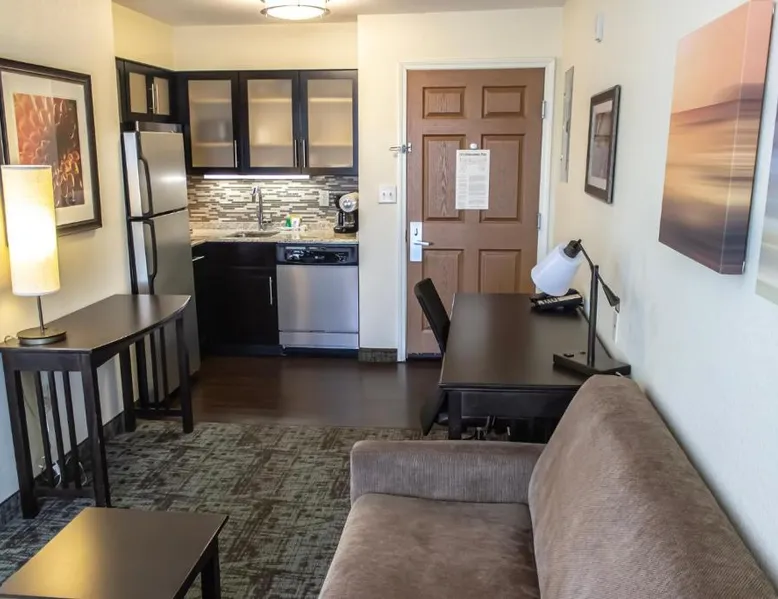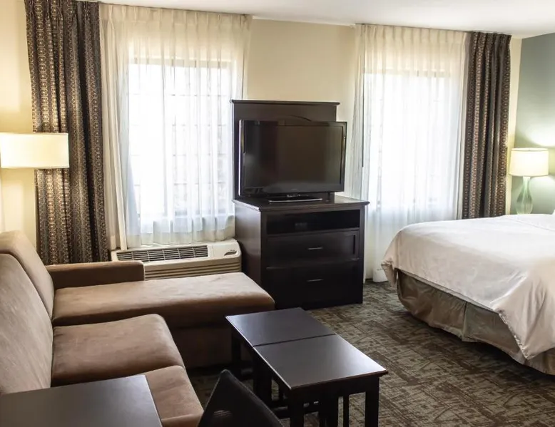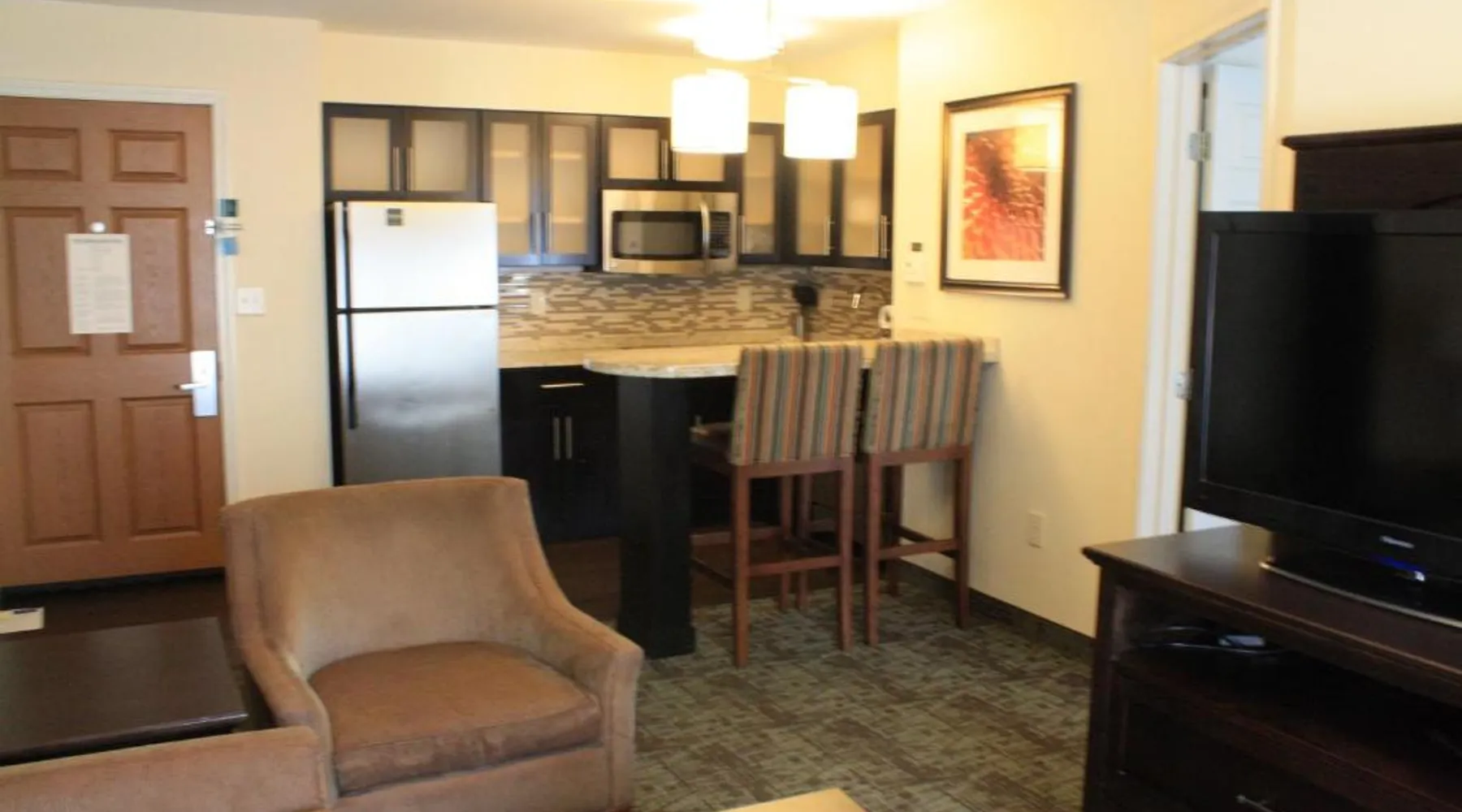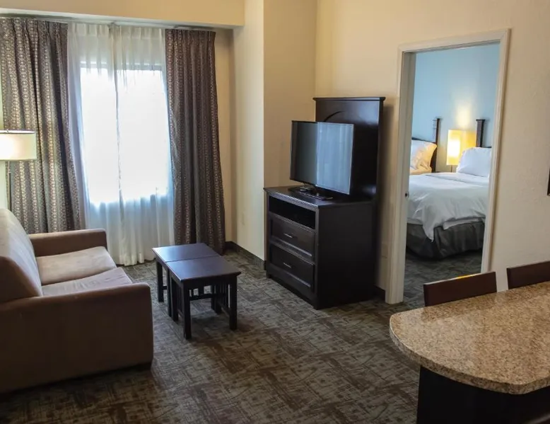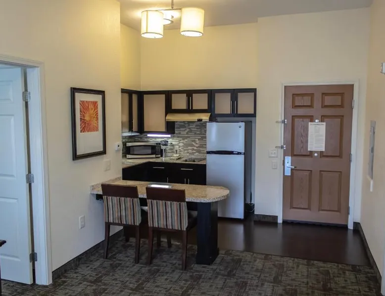 Comfortable Accommodations: Staybridge Suites Minot by IHG in Minot offers family rooms with air-conditioning, kitchenettes, private bathrooms, and city views. Each room includes a work desk, sofa, and free toiletries. Exceptional Facilities: Guests can enjoy a fitness center, sun terrace, garden, and indoor swimming pool. Additional amenities include a lounge, outdoor fireplace, hot tub, and 24-hour front desk. Delicious Breakfast: A complimentary breakfast is provided by the property, featuring a variety of options to suit all preferences. Convenient Location: Located 3.7 mi from Minot International Airport, the hotel offers paid on-site private parking and is praised for its attentive staff and room cleanliness. Featuring a kitchenette and 37-inch flat-screen TV, this suite also offers a wider doorway, grab bars, and audiovisual alarms.