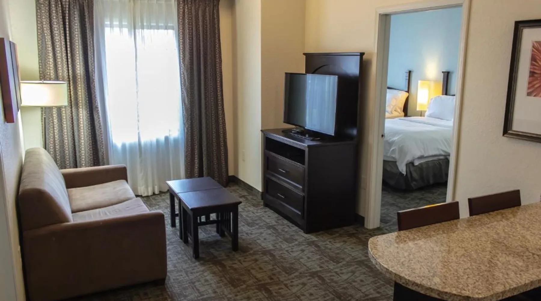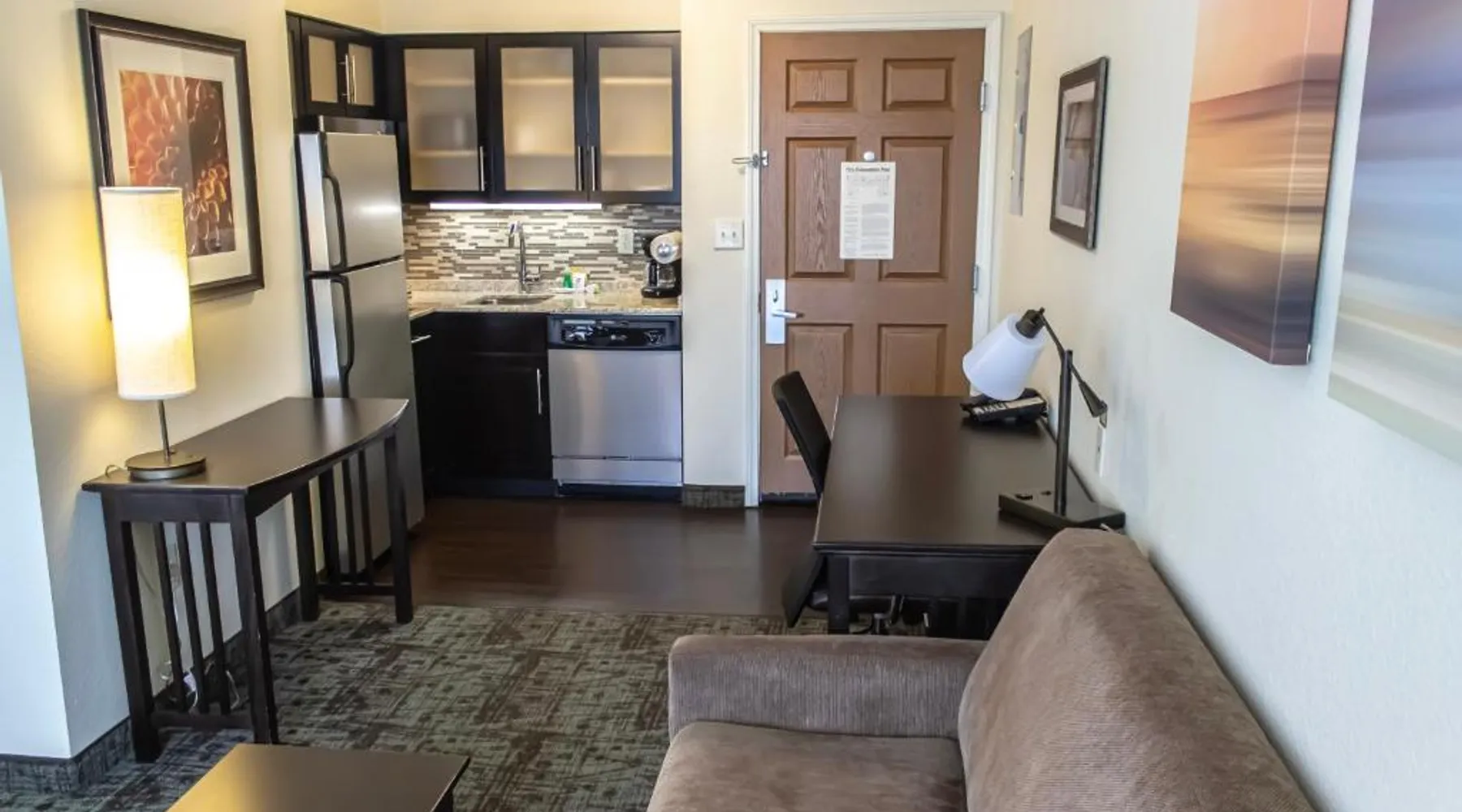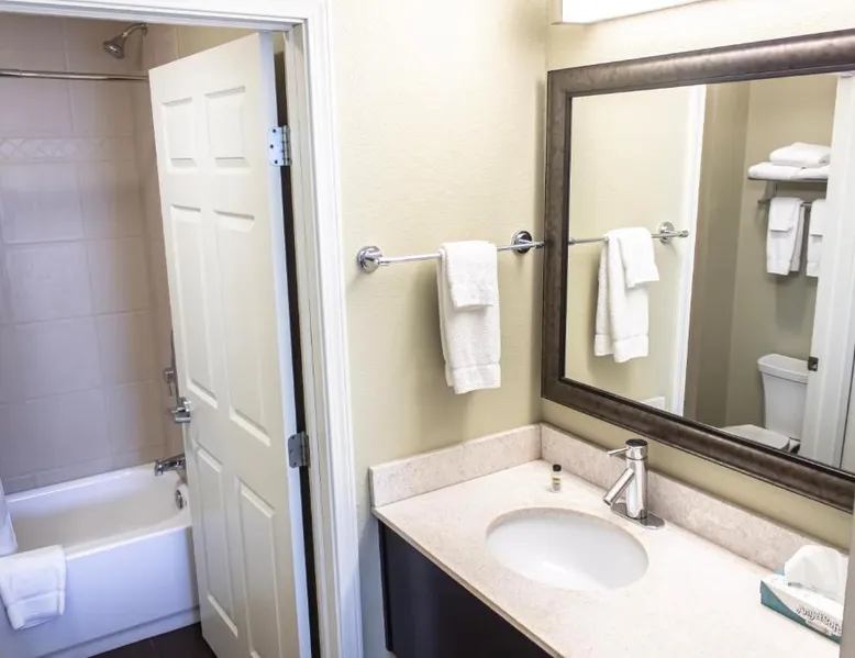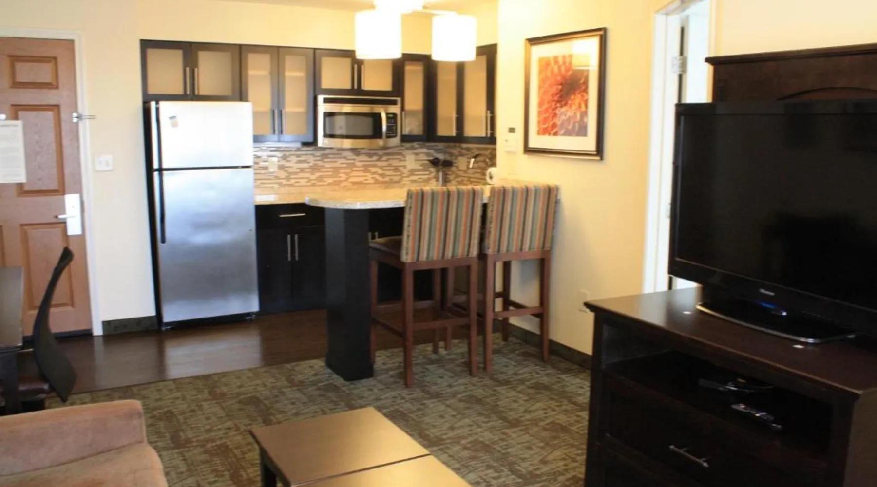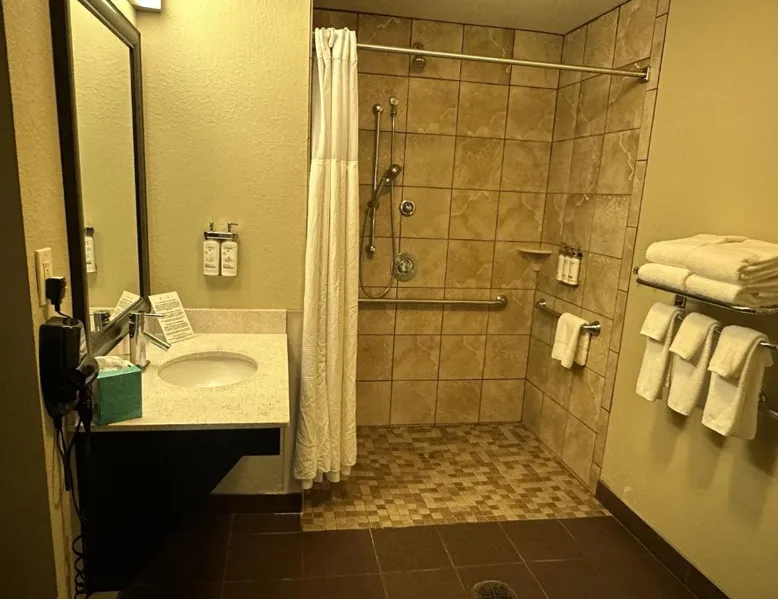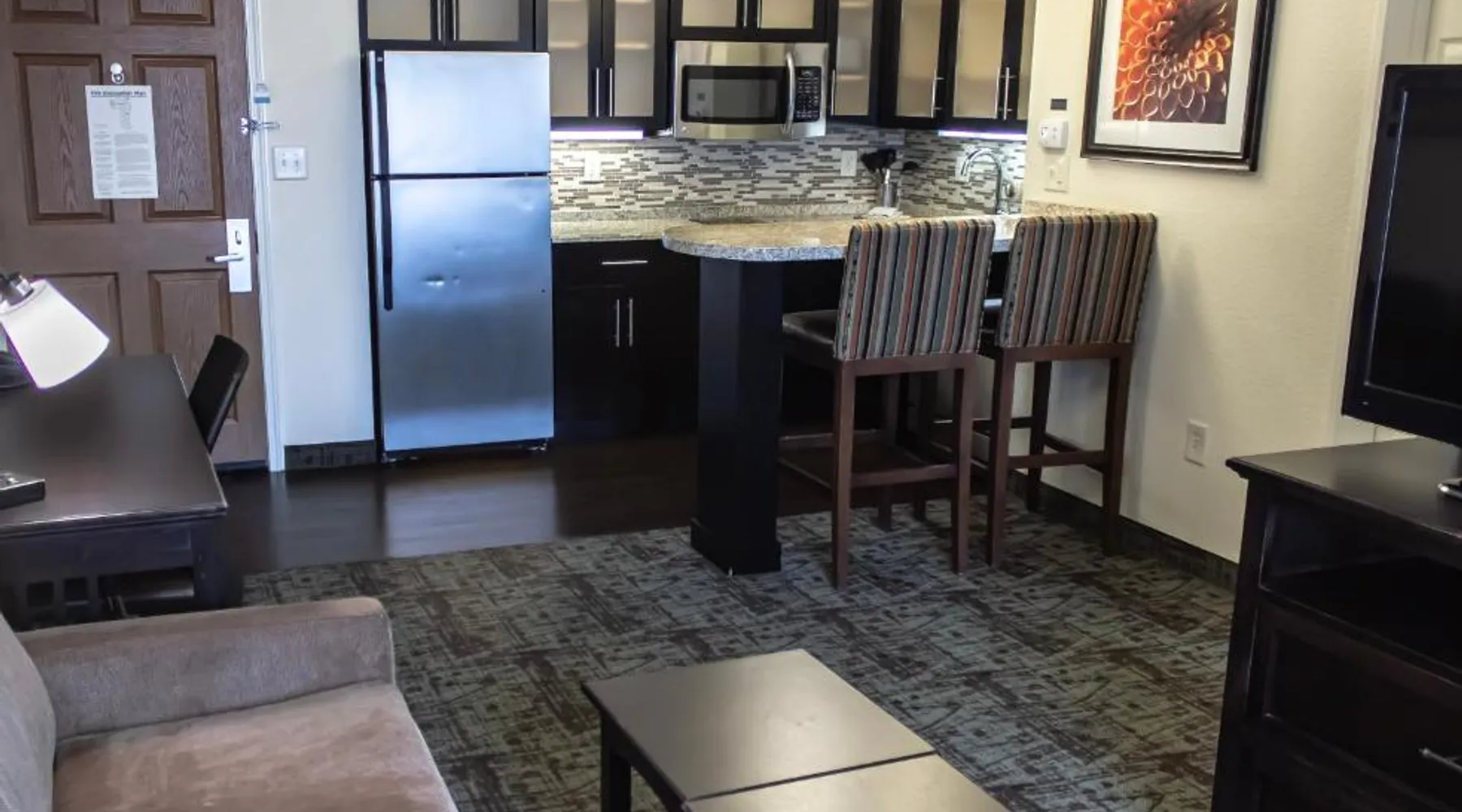 Comfortable Accommodations: Staybridge Suites Minot by IHG in Minot offers family rooms with air-conditioning, kitchenettes, private bathrooms, and city views. Each room includes a work desk, sofa, and free toiletries. Exceptional Facilities: Guests can enjoy a fitness center, sun terrace, garden, and indoor swimming pool. Additional amenities include a lounge, outdoor fireplace, hot tub, and 24-hour front desk. Delicious Breakfast: A complimentary breakfast is provided by the property, featuring a variety of options to suit all preferences. Convenient Location: Located 3.7 mi from Minot International Airport, the hotel offers paid on-site private parking and is praised for its attentive staff and room cleanliness. Featuring a kitchenette and 37-inch flat-screen TV, this suite also offers a wider doorway, grab bars, and audiovisual alarms.