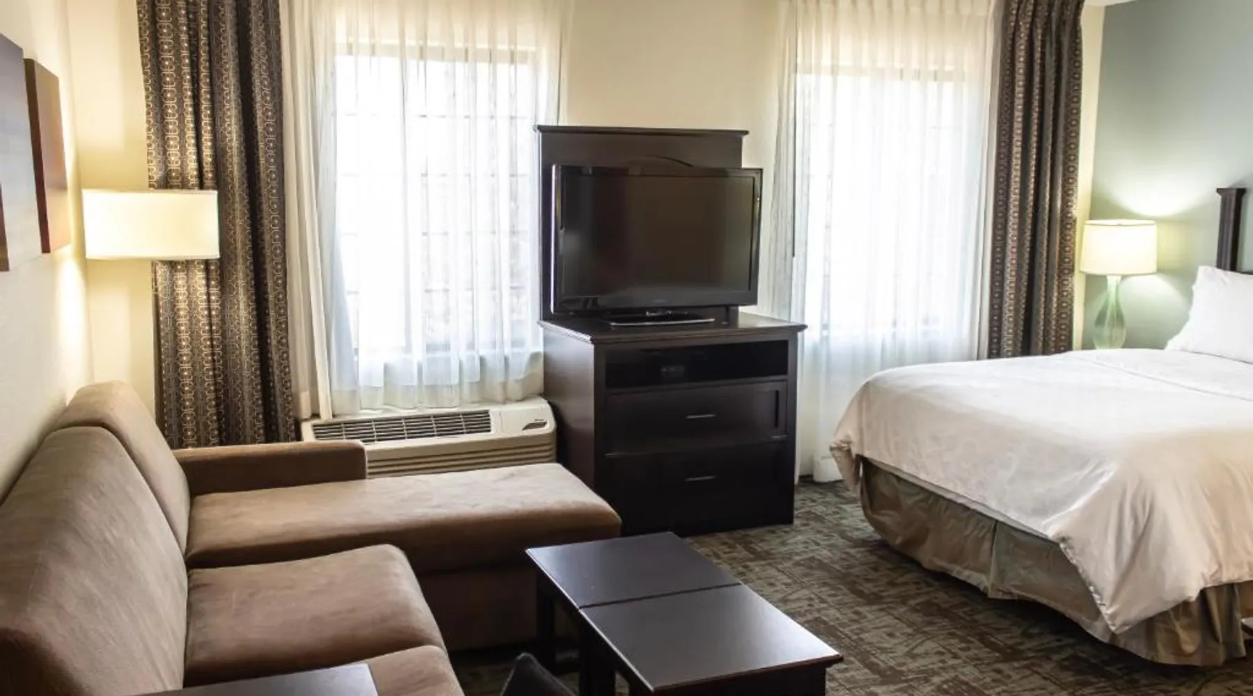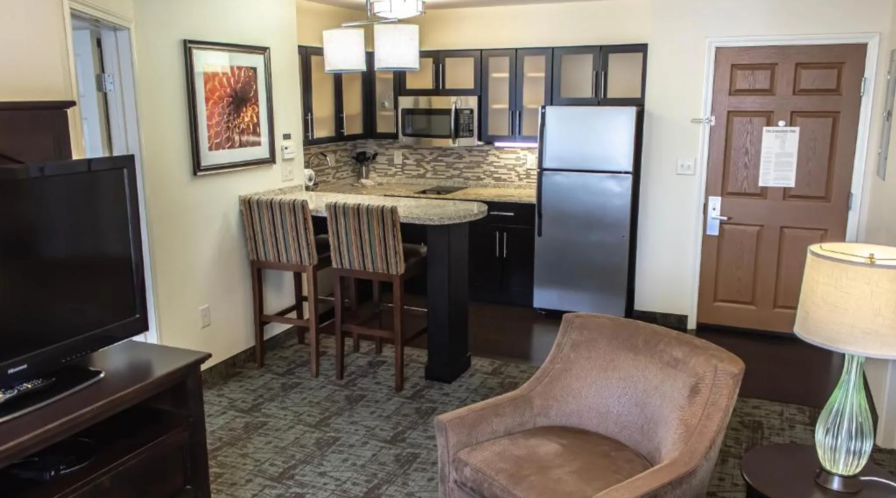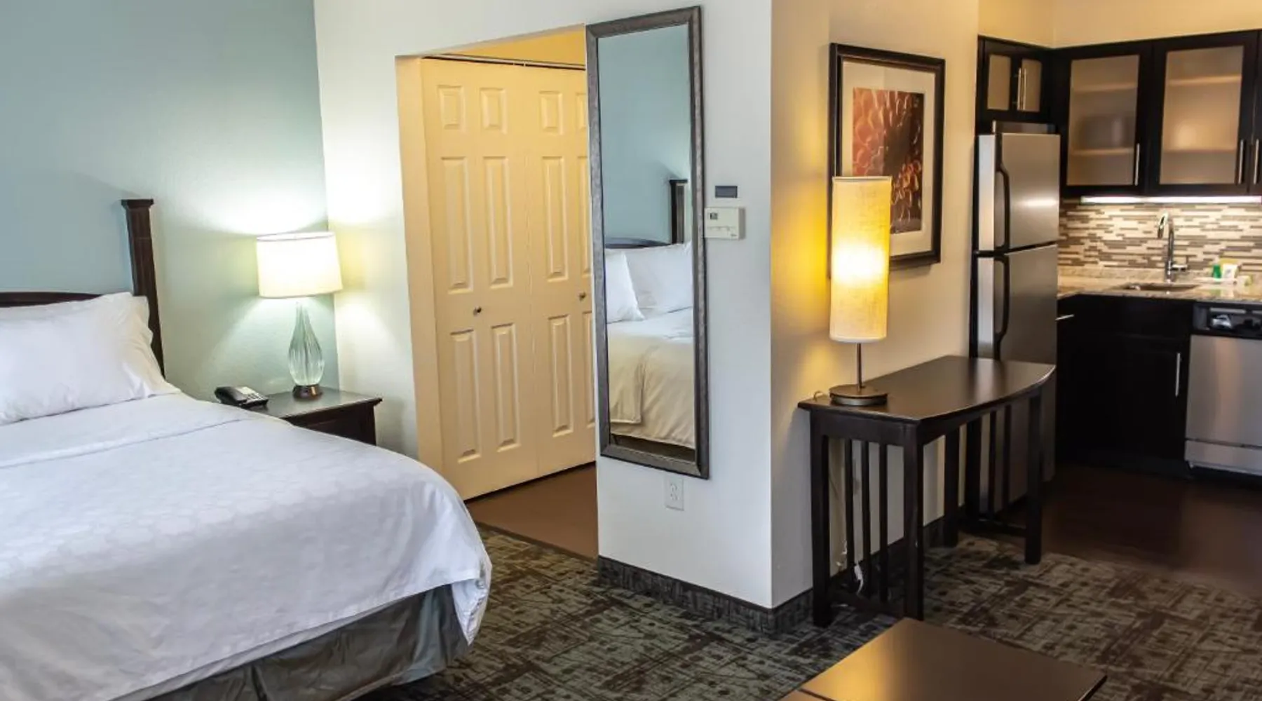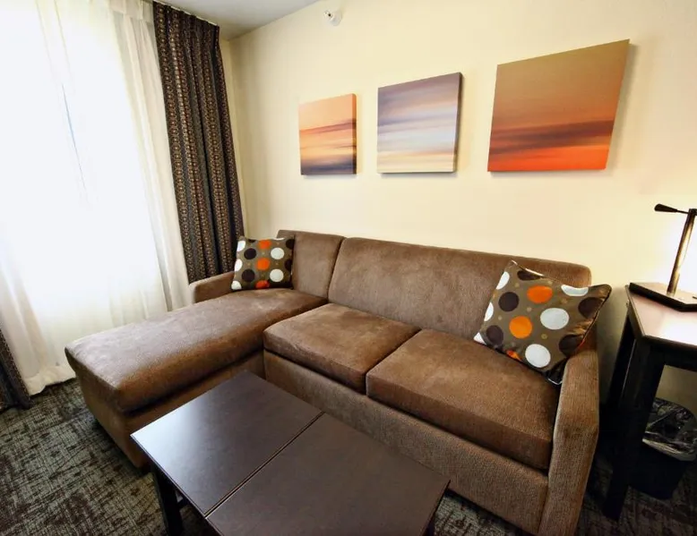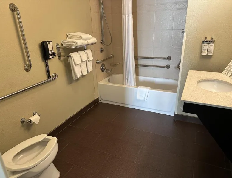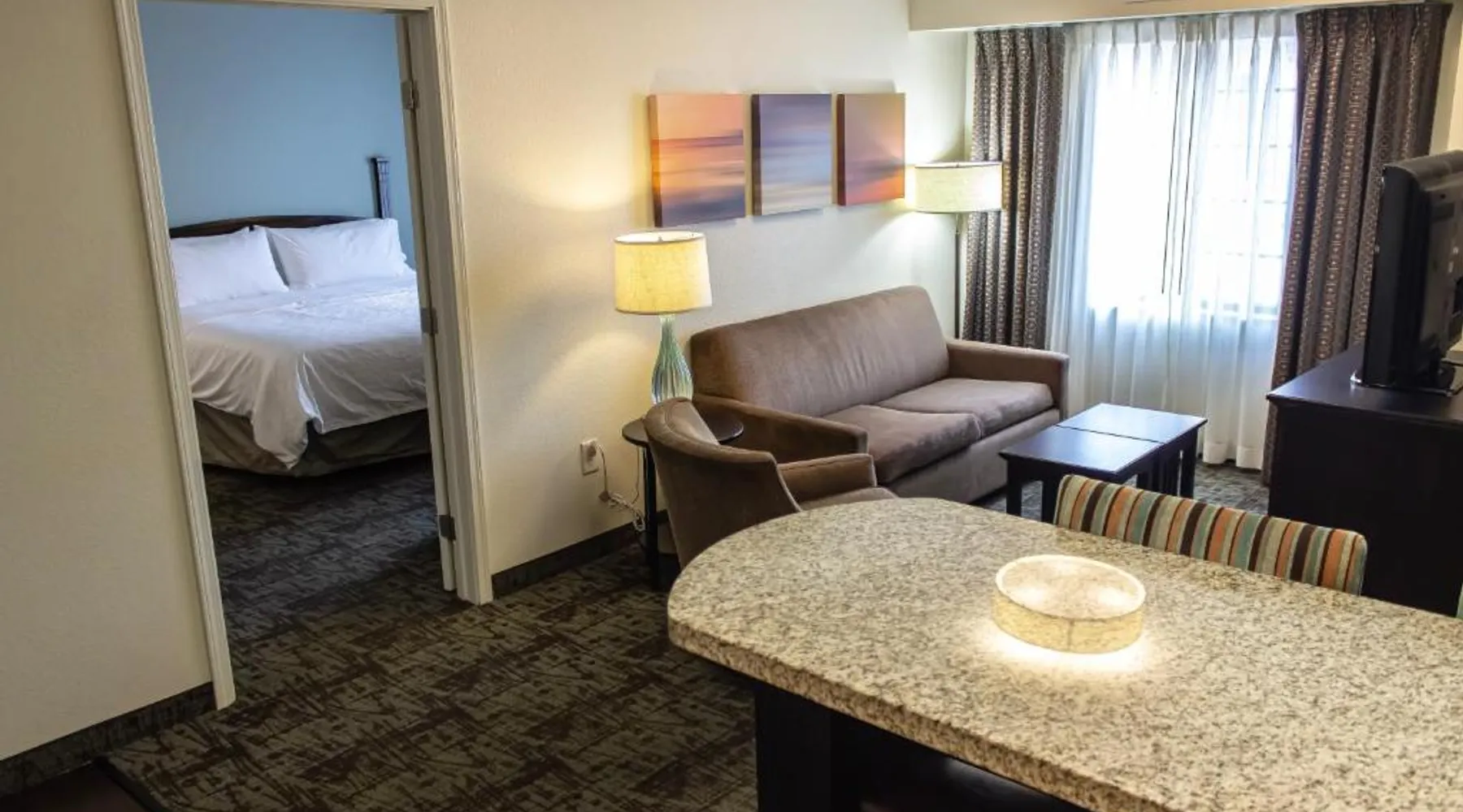 Comfortable Accommodations: Staybridge Suites Minot by IHG in Minot offers family rooms with air-conditioning, kitchenettes, private bathrooms, and city views. Each room includes a work desk, sofa, and free toiletries. Exceptional Facilities: Guests can enjoy a fitness center, sun terrace, garden, and indoor swimming pool. Additional amenities include a lounge, outdoor fireplace, hot tub, and 24-hour front desk. Delicious Breakfast: A complimentary breakfast is provided by the property, featuring a variety of options to suit all preferences. Convenient Location: Located 3.7 mi from Minot International Airport, the hotel offers paid on-site private parking and is praised for its attentive staff and room cleanliness. Featuring a kitchenette and 37-inch flat-screen TV, this suite also offers a wider doorway, grab bars, and audiovisual alarms.