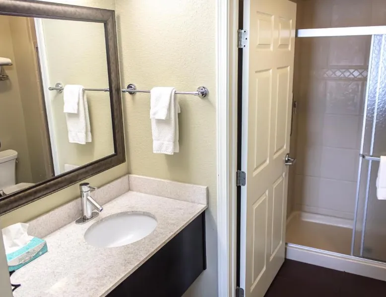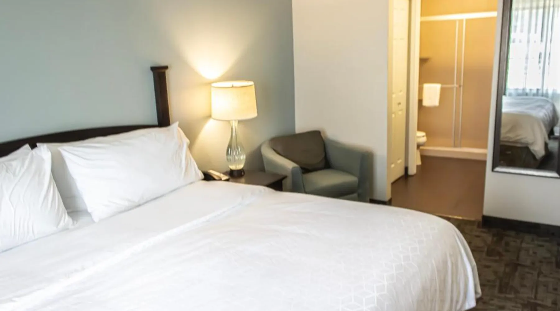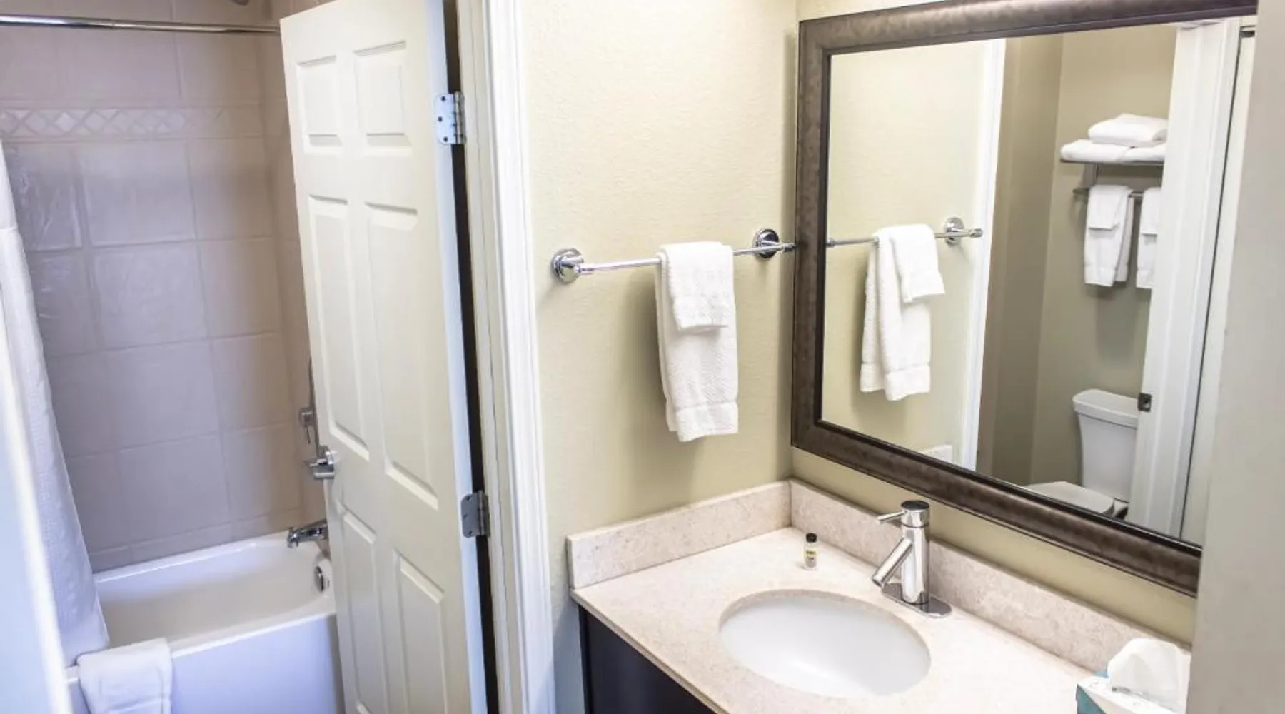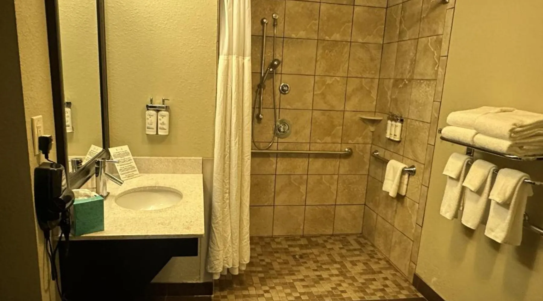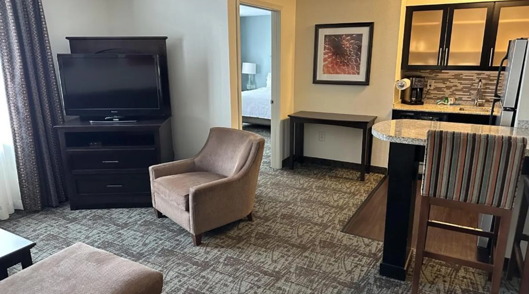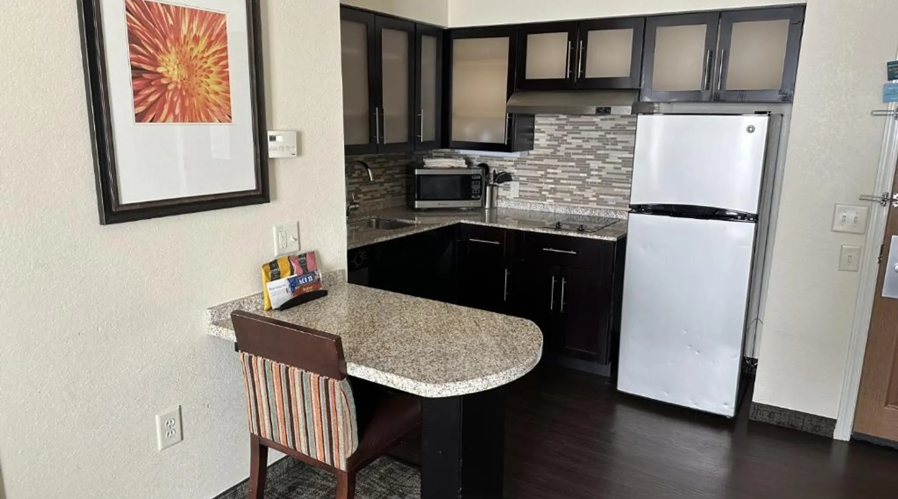 Comfortable Accommodations: Staybridge Suites Minot by IHG in Minot offers family rooms with air-conditioning, kitchenettes, private bathrooms, and city views. Each room includes a work desk, sofa, and free toiletries. Exceptional Facilities: Guests can enjoy a fitness center, sun terrace, garden, and indoor swimming pool. Additional amenities include a lounge, outdoor fireplace, hot tub, and 24-hour front desk. Delicious Breakfast: A complimentary breakfast is provided by the property, featuring a variety of options to suit all preferences. Convenient Location: Located 3.7 mi from Minot International Airport, the hotel offers paid on-site private parking and is praised for its attentive staff and room cleanliness. Featuring a kitchenette and 37-inch flat-screen TV, this suite also offers a wider doorway, grab bars, and audiovisual alarms.