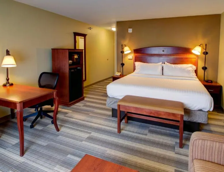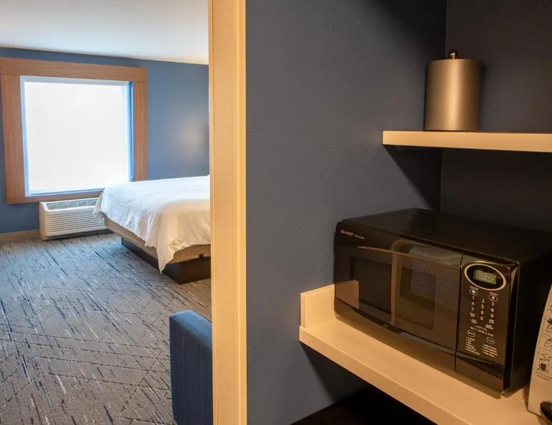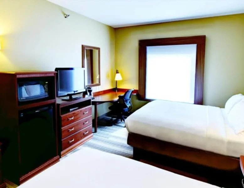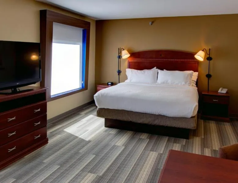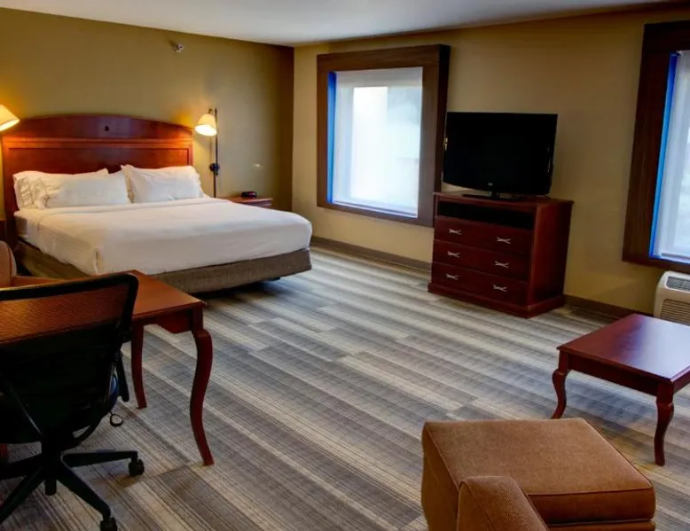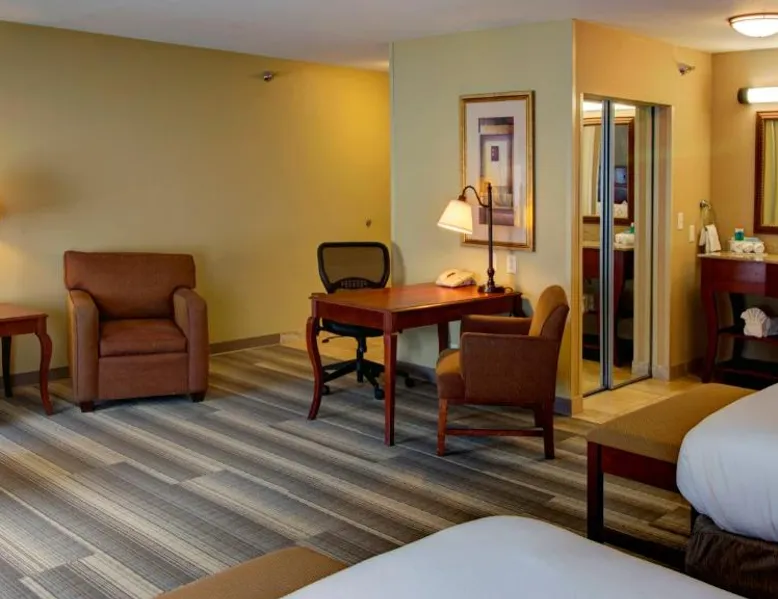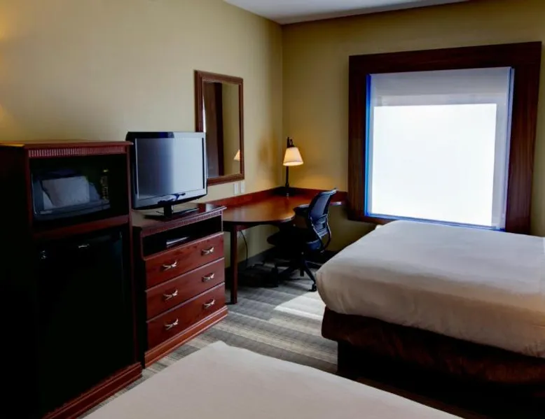 Comfortable Accommodations: Holiday Inn Express & Suites Sioux City-South by IHG in Sioux City offers family rooms with air-conditioning, free WiFi, and amenities such as a work desk and sofa bed. Each room includes a TV, refrigerator, and free toiletries. Leisure Facilities: Guests can enjoy a fitness center, indoor swimming pool, and a lounge. Additional services include a minimarket, business area, and free on-site parking. Dining Options: A continental, American, and buffet breakfast is served daily, featuring juice, fresh pastries, pancakes, and fruits. Special diet menus are available. Convenient Location: Located 3.7 mi from Sioux Gateway Airport, the hotel is near attractions like Whispering Creek Golf Club and Sioux City Art Center. An ice-skating rink is in the surroundings. This suite offers a tea and coffee maker and a flat-screen TV. The unit has 2 beds.