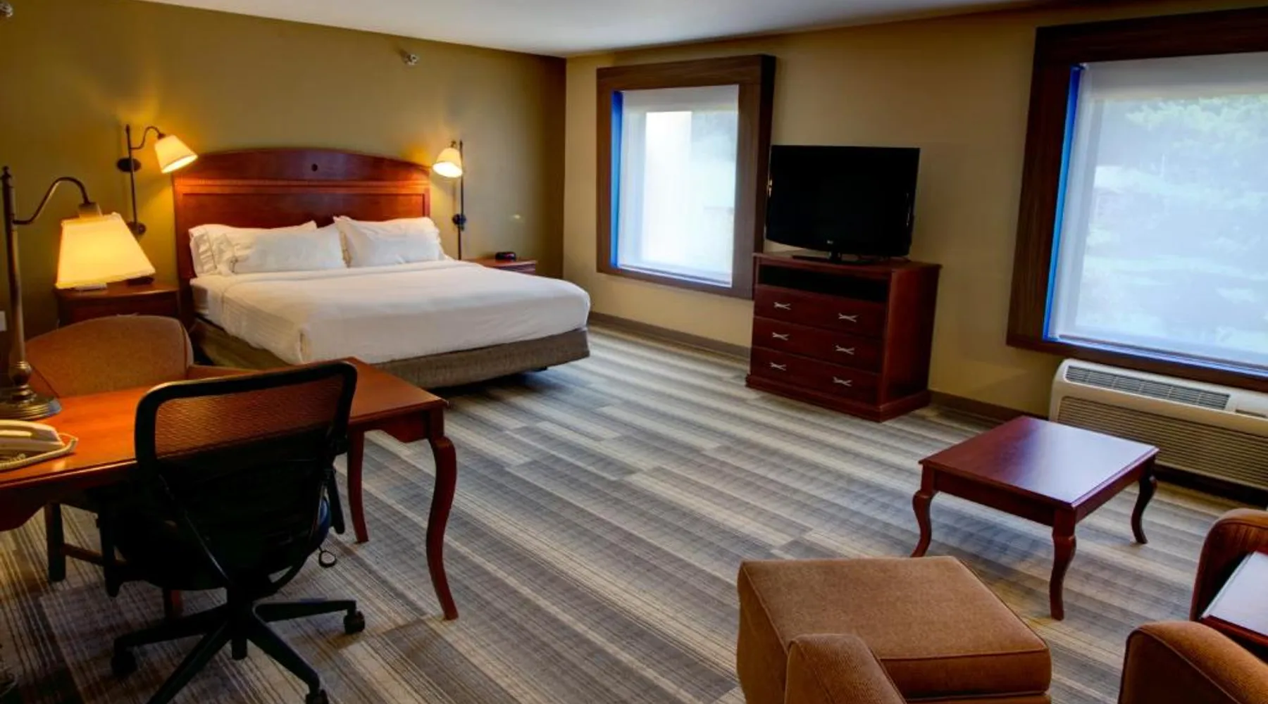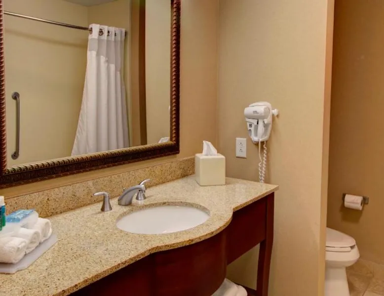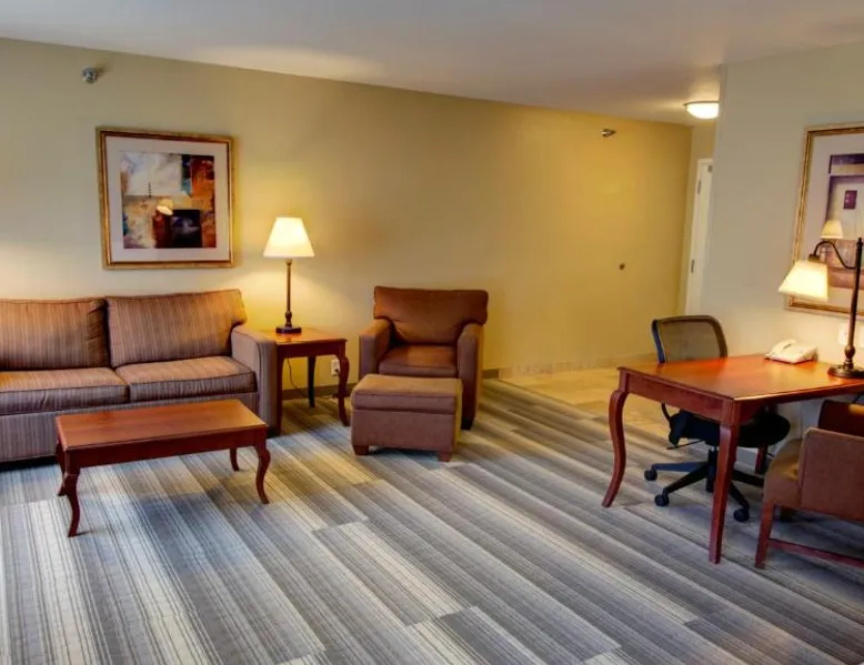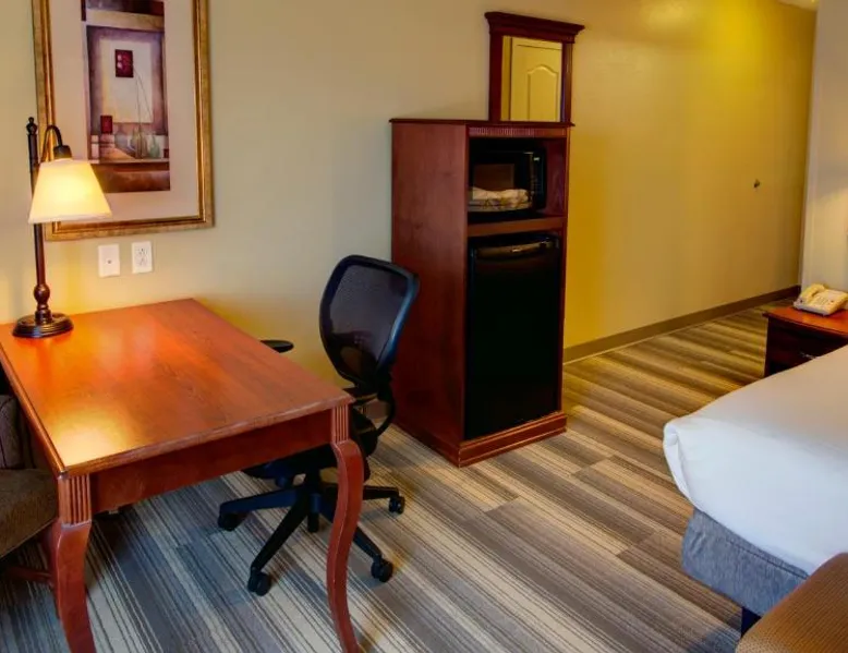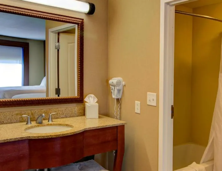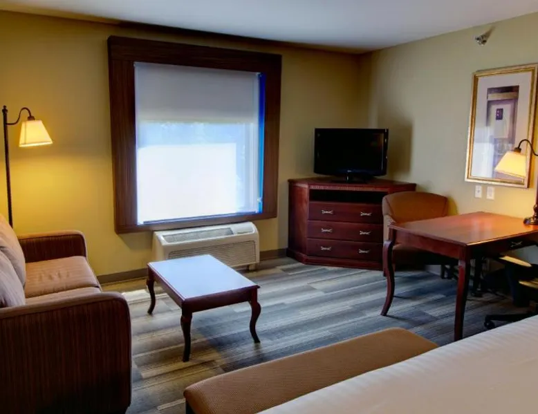 Comfortable Accommodations: Holiday Inn Express & Suites Sioux City-South by IHG in Sioux City offers family rooms with air-conditioning, free WiFi, and amenities such as a work desk and sofa bed. Each room includes a TV, refrigerator, and free toiletries. Leisure Facilities: Guests can enjoy a fitness center, indoor swimming pool, and a lounge. Additional services include a minimarket, business area, and free on-site parking. Dining Options: A continental, American, and buffet breakfast is served daily, featuring juice, fresh pastries, pancakes, and fruits. Special diet menus are available. Convenient Location: Located 3.7 mi from Sioux Gateway Airport, the hotel is near attractions like Whispering Creek Golf Club and Sioux City Art Center. An ice-skating rink is in the surroundings. This suite offers a tea and coffee maker and a flat-screen TV. The unit has 2 beds.