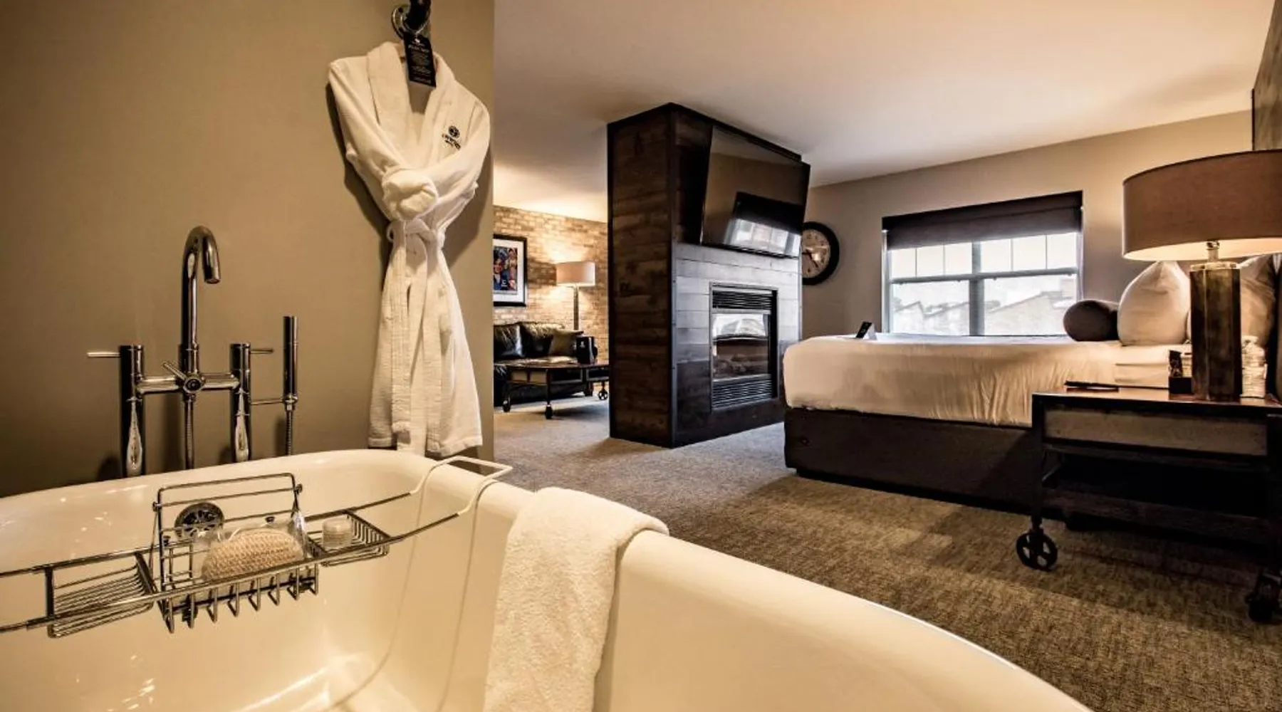 Comfortable Accommodations: Rooms feature air-conditioning, private bathrooms, tea and coffee makers, and free toiletries. Additional amenities include mini-bars, work desks, and free WiFi. Dining and Leisure: The traditional restaurant serves steakhouse cuisine for dinner and cocktails. Guests can also enjoy the bar and fitness center. Convenient Location: Located in Beloit, the hotel is 28 mi from Chicago Rockford International Airport. Nearby attractions include the Logan Museum of Anthropology, a 5-minute walk away, and Magic Waters Waterpark, 21 mi distant. Guest Satisfaction: Highly rated for its convenient location, room cleanliness, and attentive staff. The fireplace is the standout feature of this suite. Featuring free toiletries and bathrobes, this suite includes a private bathroom with a bath, a shower and a hairdryer. The spacious air-conditioned suite features a flat-screen TV with cable channels, a mini-bar, a tea and coffee maker, a seating area as well as river views. The unit has 2 beds.