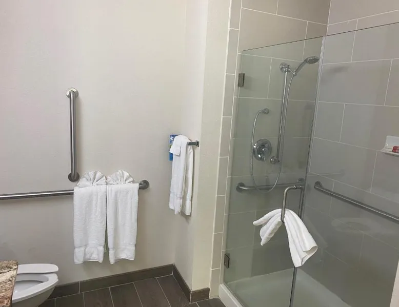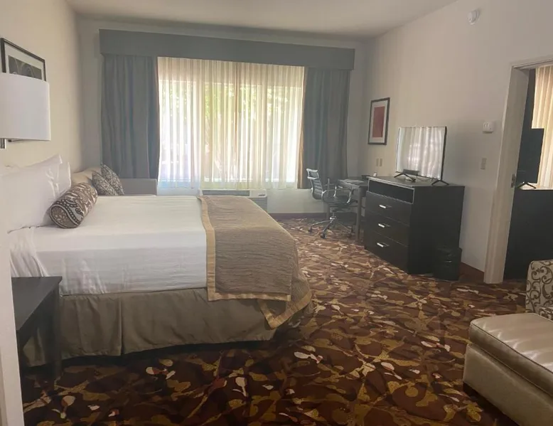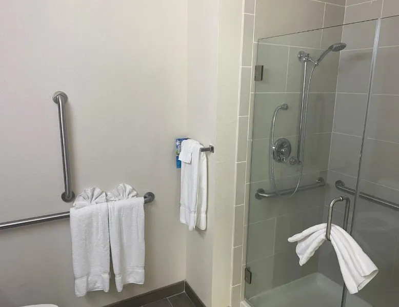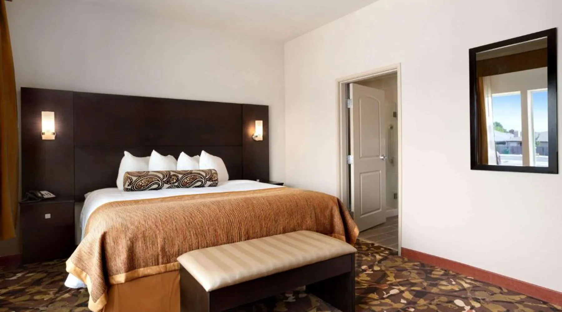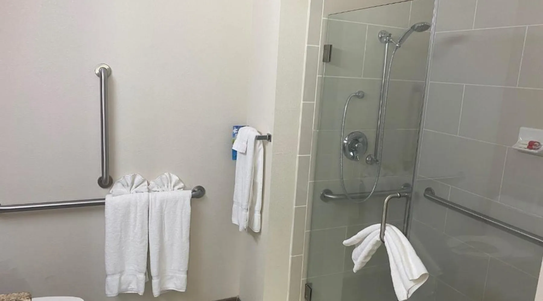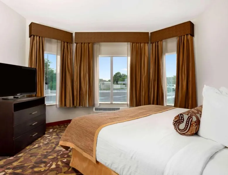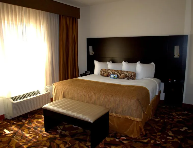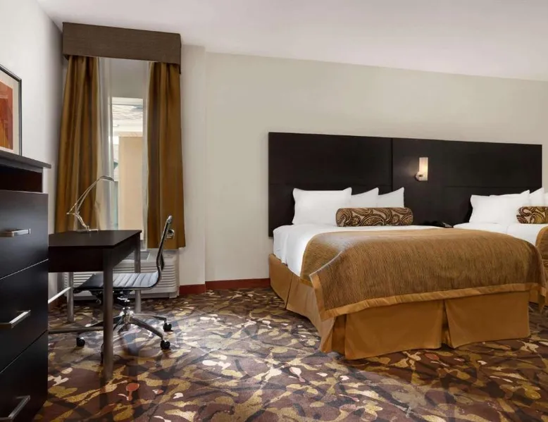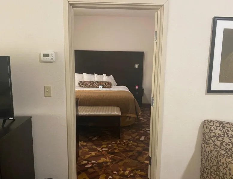 Comfortable Accommodations: Baymont by Wyndham Hobbs in Hobbs offers family rooms with air-conditioning, private bathrooms, and free WiFi. Each room includes a work desk, TV, and wardrobe. Leisure Facilities: Guests can enjoy a fitness center, seasonal outdoor swimming pool, and outdoor seating area. Free on-site parking is available. Convenient Services: The hotel provides a lounge, fitness room, elevator, 24-hour front desk, housekeeping, business area, and free continental breakfast. Location and Attractions: Located 5.6 mi from Lea County Regional Airport, the property is near attractions such as the Hobbs Museum and the Hobbs Zoo. This air-conditioned quadruple room is consisted of of a TV with cable channels and a private bathroom.