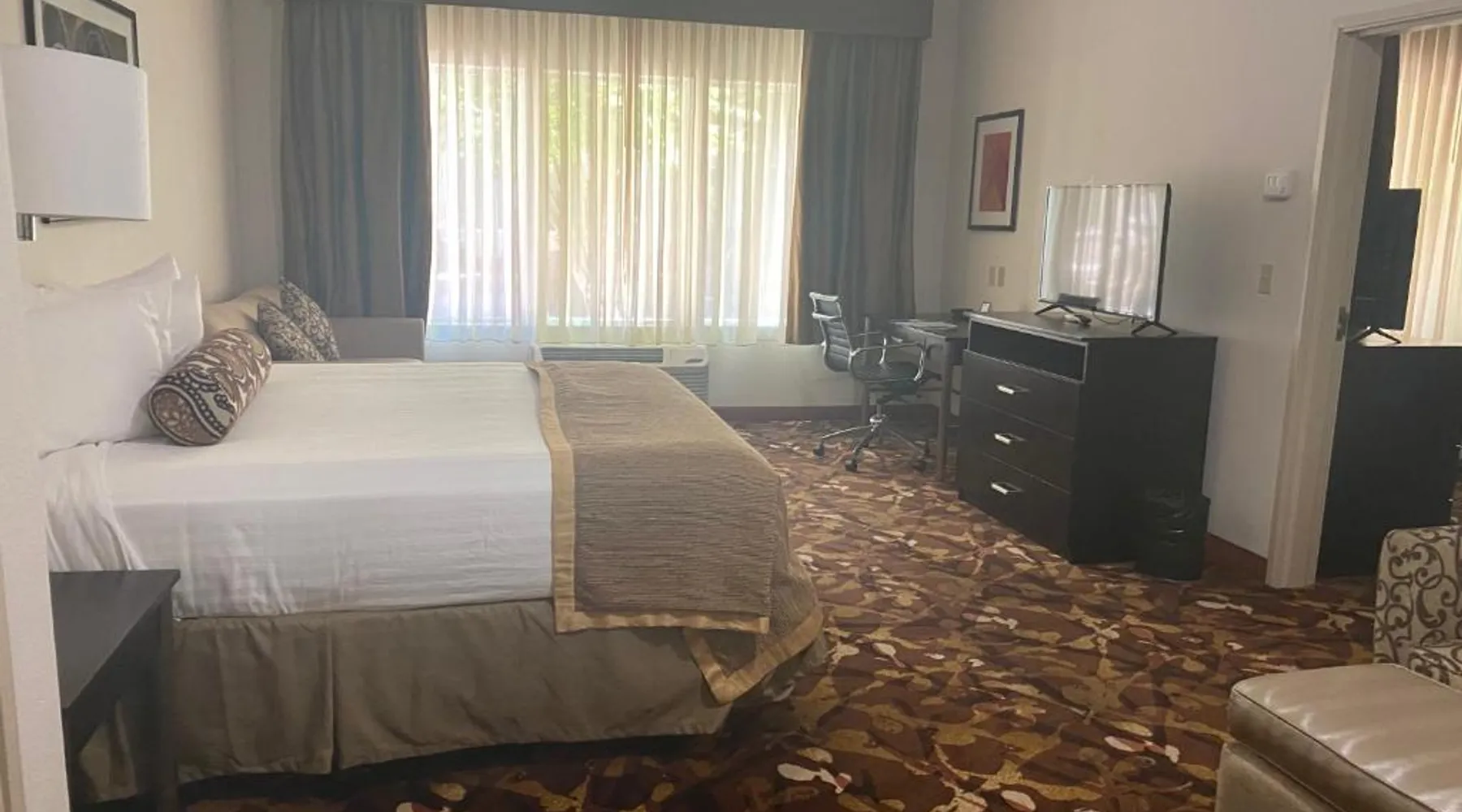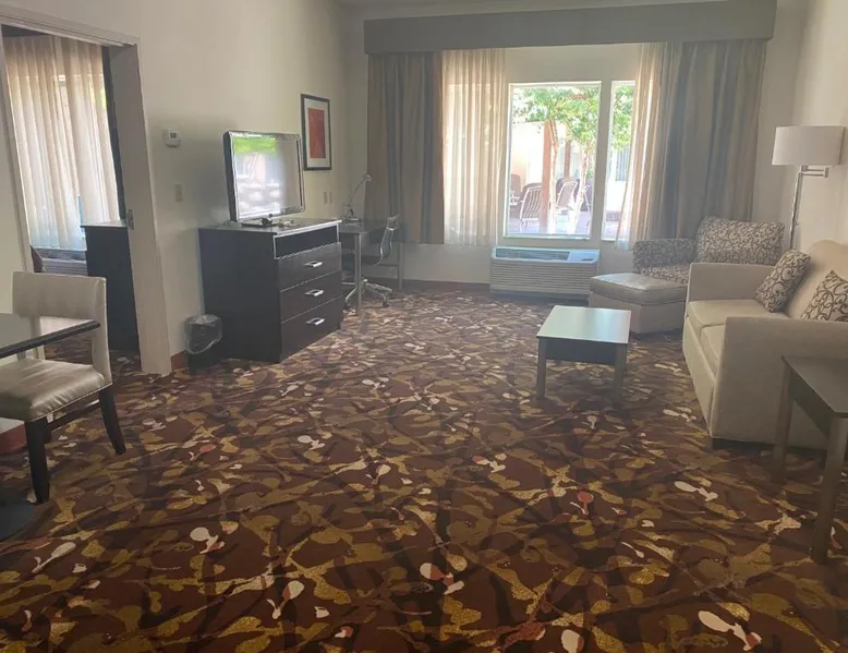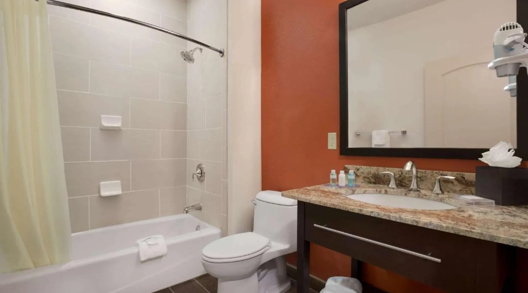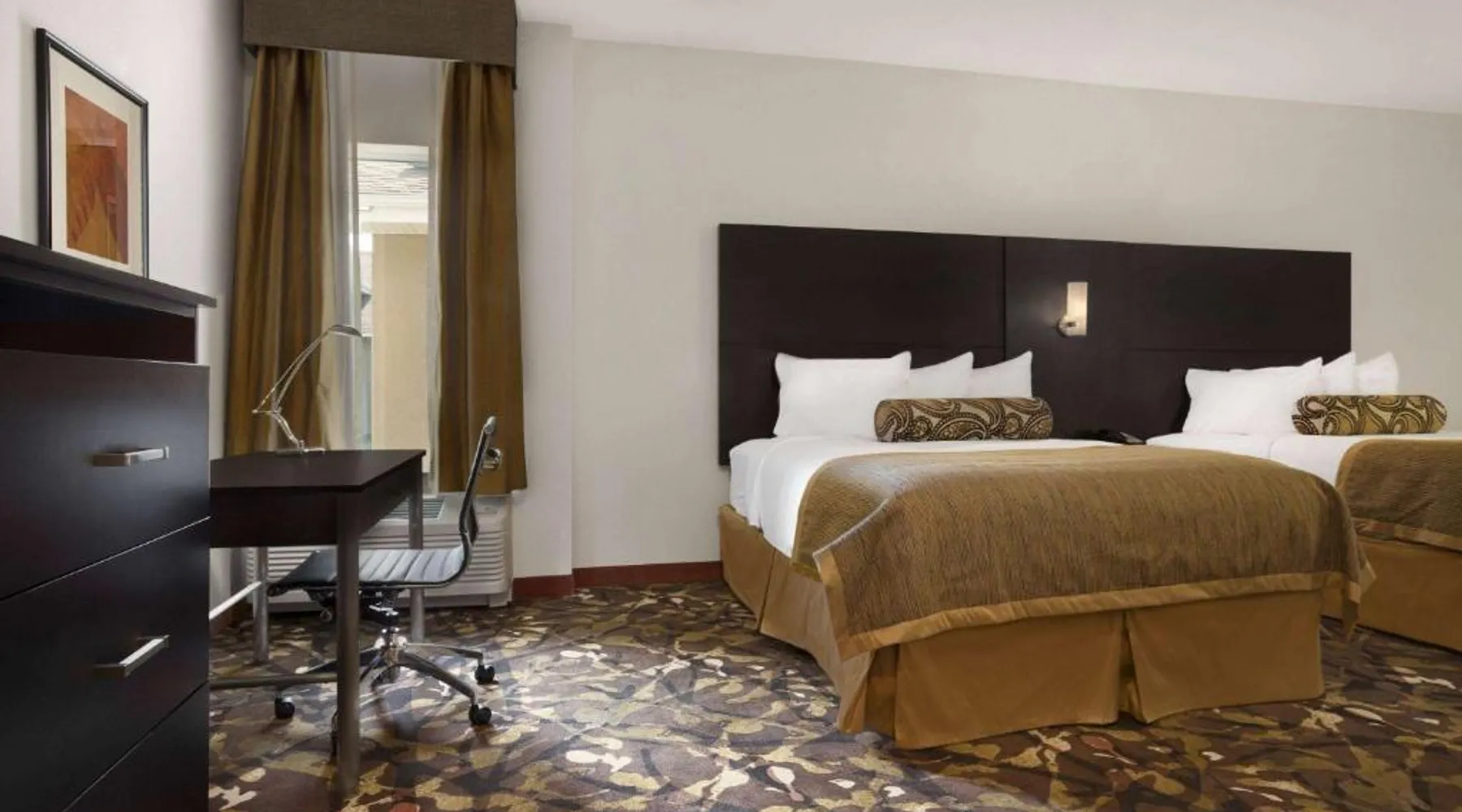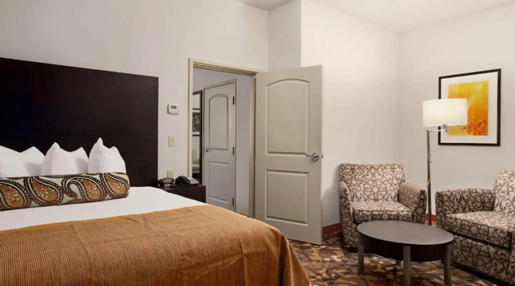 Comfortable Accommodations: Baymont by Wyndham Hobbs in Hobbs offers family rooms with air-conditioning, private bathrooms, and free WiFi. Each room includes a work desk, TV, and wardrobe. Leisure Facilities: Guests can enjoy a fitness center, seasonal outdoor swimming pool, and outdoor seating area. Free on-site parking is available. Convenient Services: The hotel provides a lounge, fitness room, elevator, 24-hour front desk, housekeeping, business area, and free continental breakfast. Location and Attractions: Located 5.6 mi from Lea County Regional Airport, the property is near attractions such as the Hobbs Museum and the Hobbs Zoo. This air-conditioned quadruple room is consisted of of a TV with cable channels and a private bathroom.