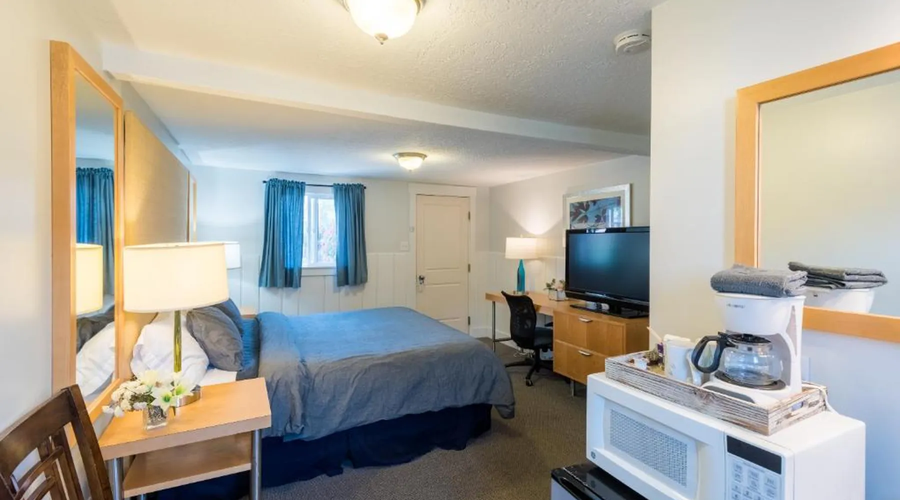 Comfortable Accommodations: Gannett Peak Lodge in Pinedale offers air-conditioned rooms with private bathrooms, tea and coffee makers, and free WiFi. Each room includes a work desk, TV, and free toiletries. Exceptional Services: Guests benefit from private check-in and check-out, concierge, housekeeping, and live music. Additional services include bicycle parking, express check-in and check-out, and luggage storage. Convenient Location: Located 87 mi from Jackson Hole Airport, the lodge is near an ice-skating rink. Activities available include fishing, skiing, hiking, cycling, and diving. Guest Satisfaction: Highly rated for its attentive staff, room cleanliness, and convenient location. This double room features has an air conditioning, a tea/coffee maker, private entrance and microwave.
