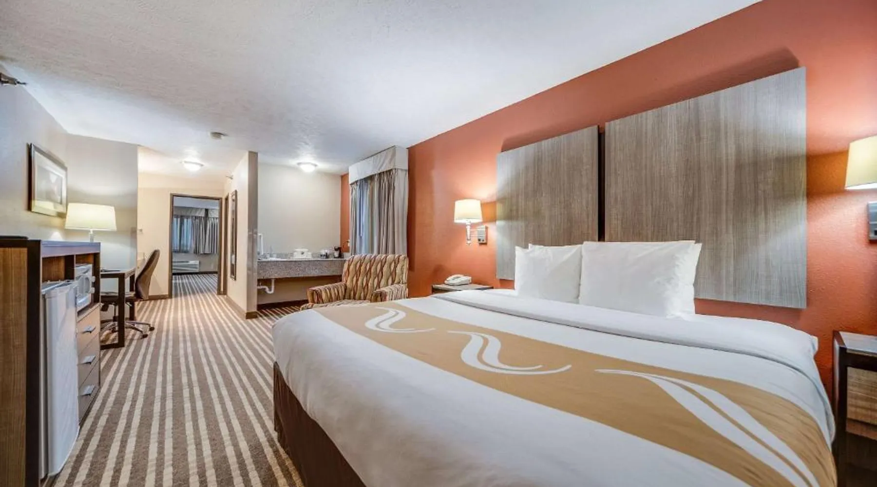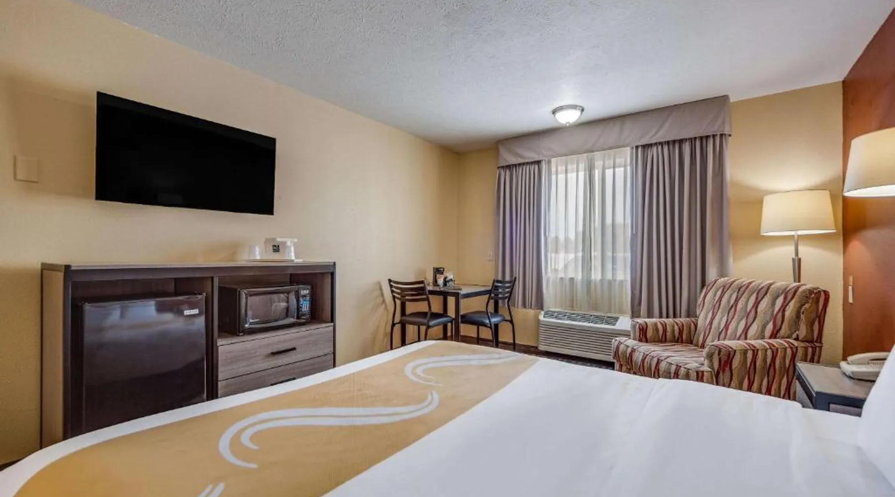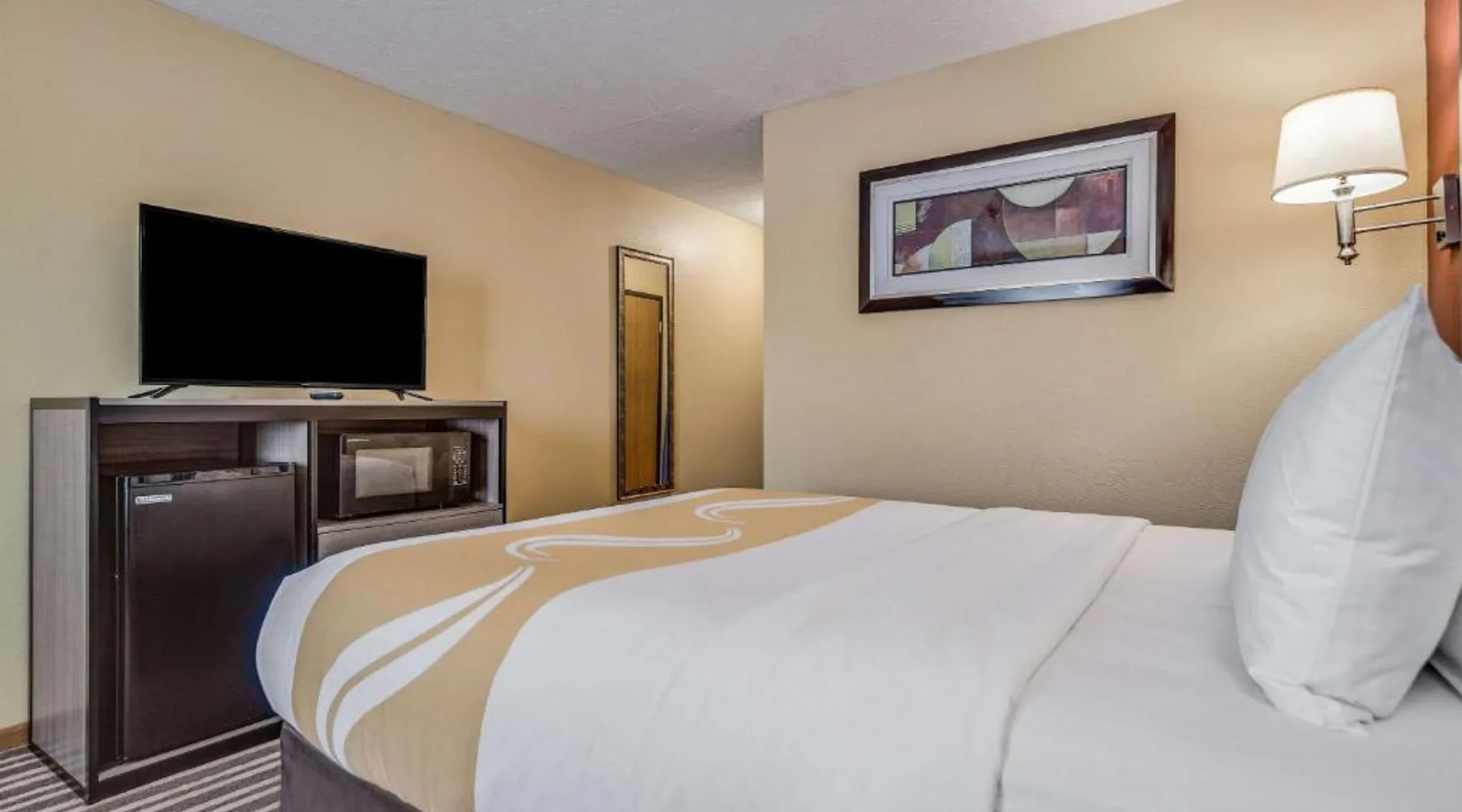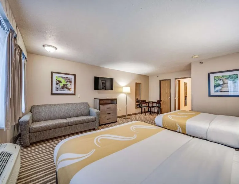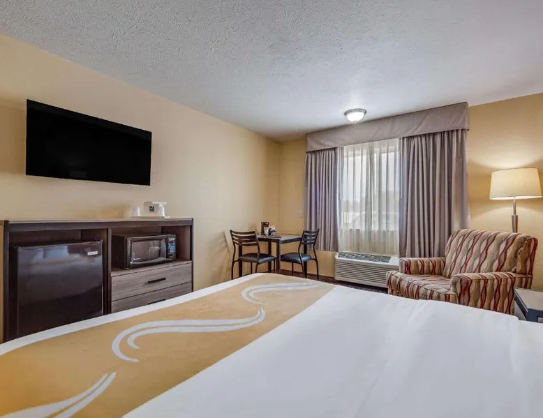 The Quality Inn Hastings hotel in Hastings, Nebraska offers easy access to a variety of popular local attractions, including the Nebraska Softball Hall of Fame and Hastings Museum. This hotel is also close to Fisher Fountain, MPH Raceway and Lochland Country Club. Guests of the hotel will appreciate the indoor heated pool, a great place to relax year-round. Guest laundry service is available. As a convenience to business travelers, access to copy and fax services is offered. Other amenities at the hotel include, free hot breakfast, free wireless high-speed Internet access and free weekday newspapers. All spacious guest rooms offer a flat-screen television with cable, coffee maker, microwave, refrigerator, hair dryer, desk, iron and ironing board. This is a nonsmoking hotel. Offering free Wi-Fi and a cable TV, this room includes a microwave and a refrigerator.