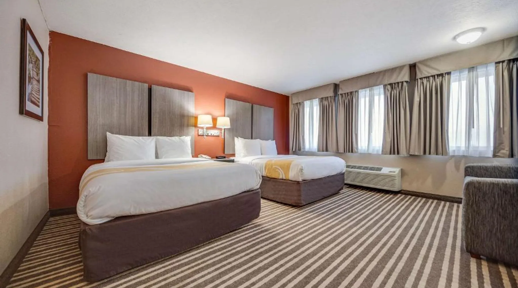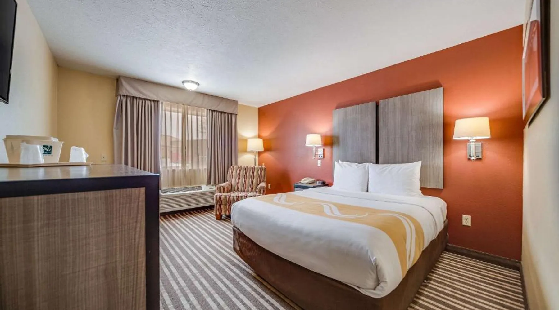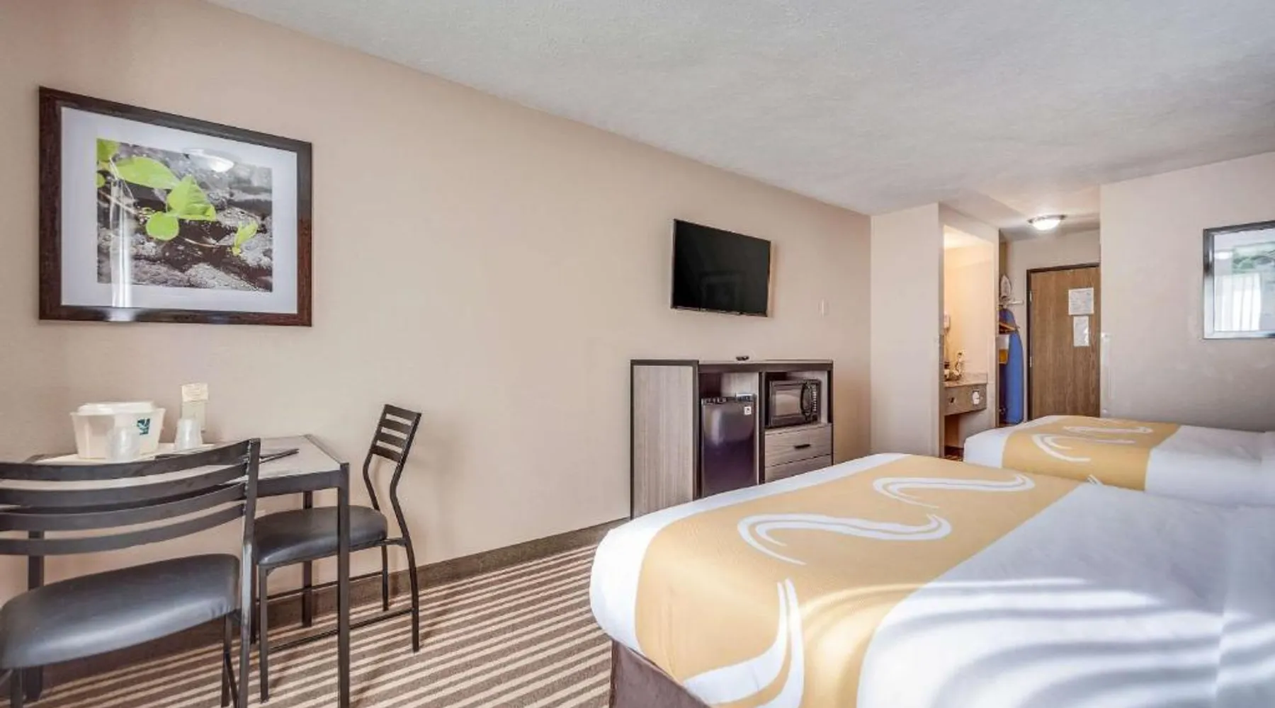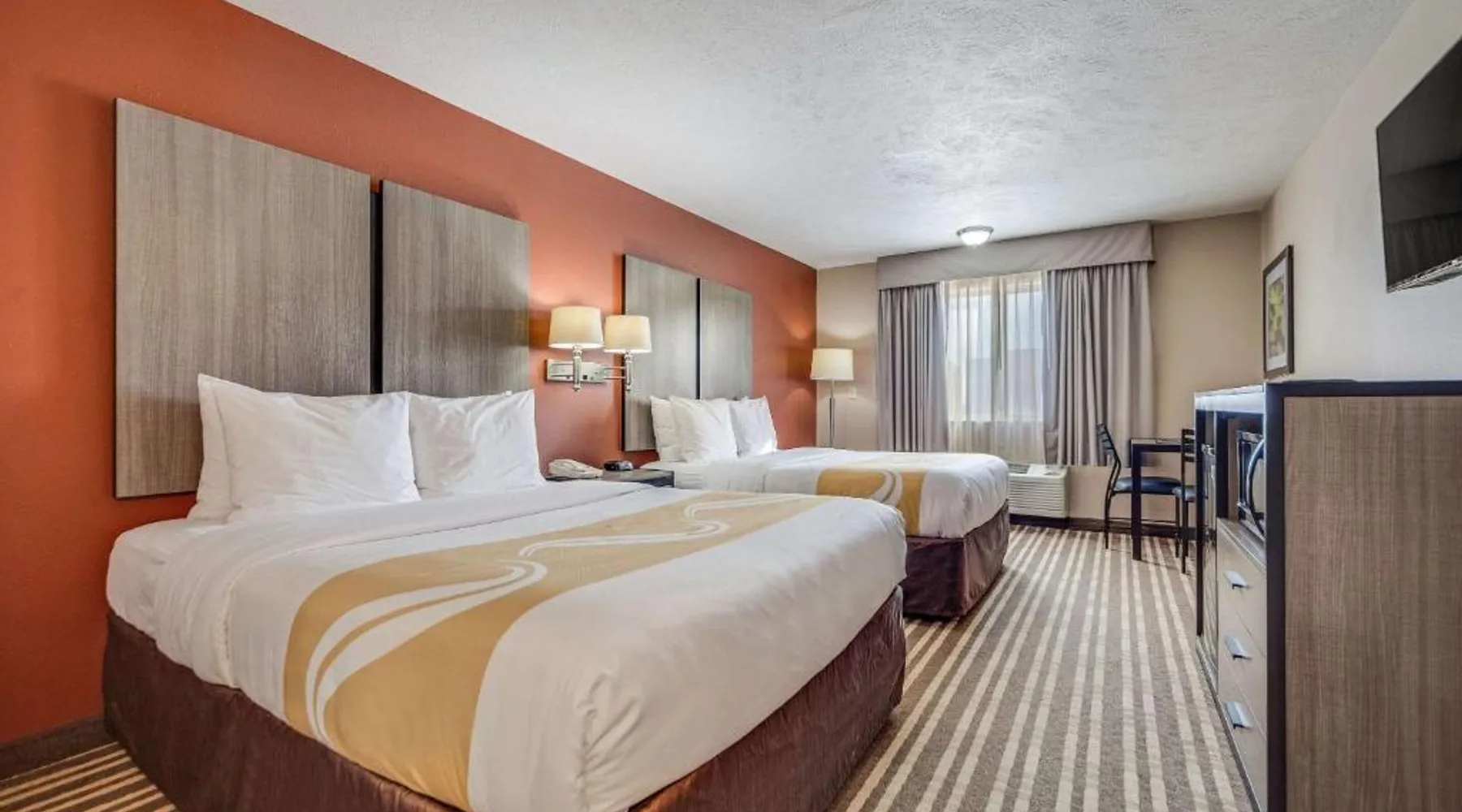 The Quality Inn Hastings hotel in Hastings, Nebraska offers easy access to a variety of popular local attractions, including the Nebraska Softball Hall of Fame and Hastings Museum. This hotel is also close to Fisher Fountain, MPH Raceway and Lochland Country Club. Guests of the hotel will appreciate the indoor heated pool, a great place to relax year-round. Guest laundry service is available. As a convenience to business travelers, access to copy and fax services is offered. Other amenities at the hotel include, free hot breakfast, free wireless high-speed Internet access and free weekday newspapers. All spacious guest rooms offer a flat-screen television with cable, coffee maker, microwave, refrigerator, hair dryer, desk, iron and ironing board. This is a nonsmoking hotel. Offering free Wi-Fi and a cable TV, this room includes a microwave and a refrigerator.