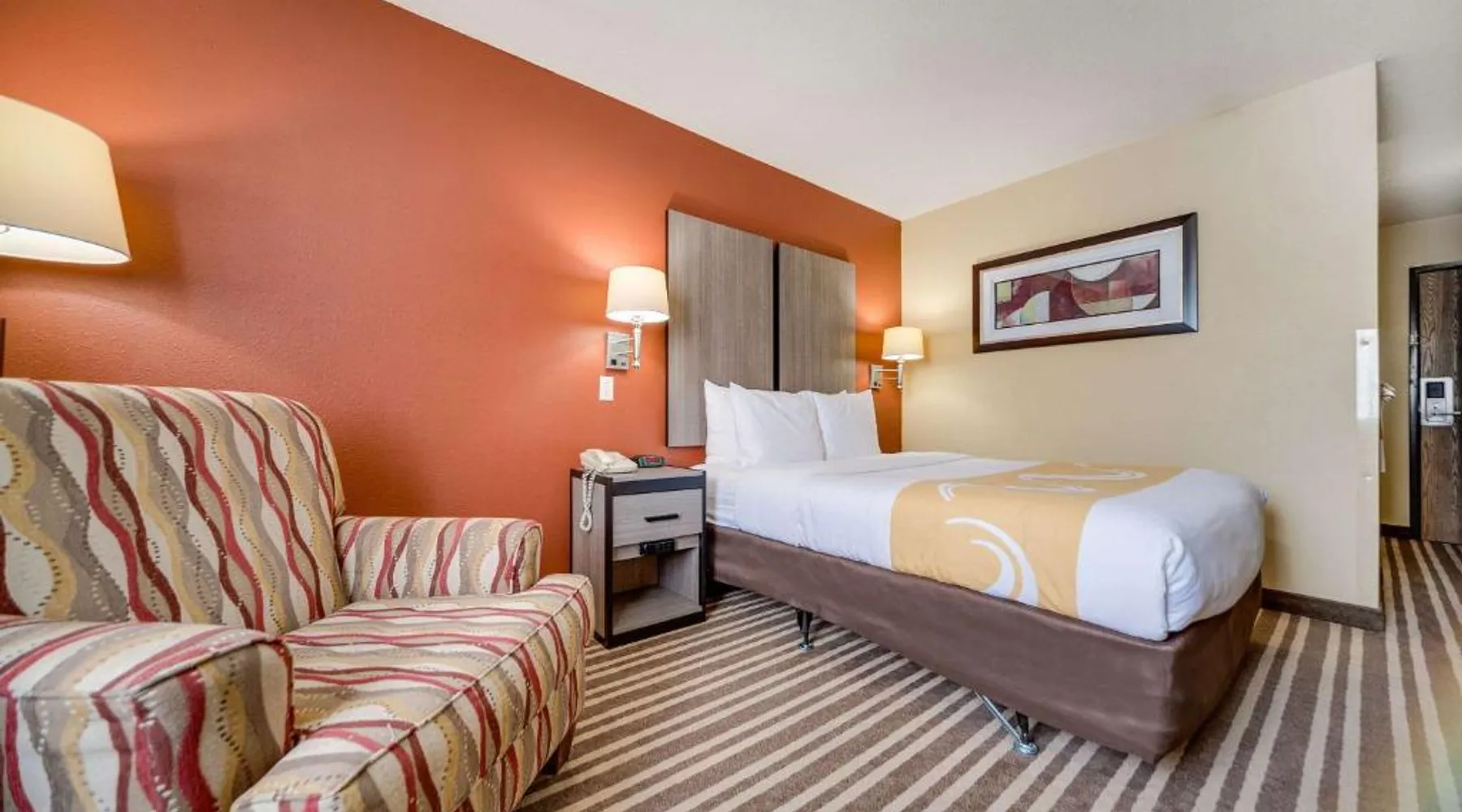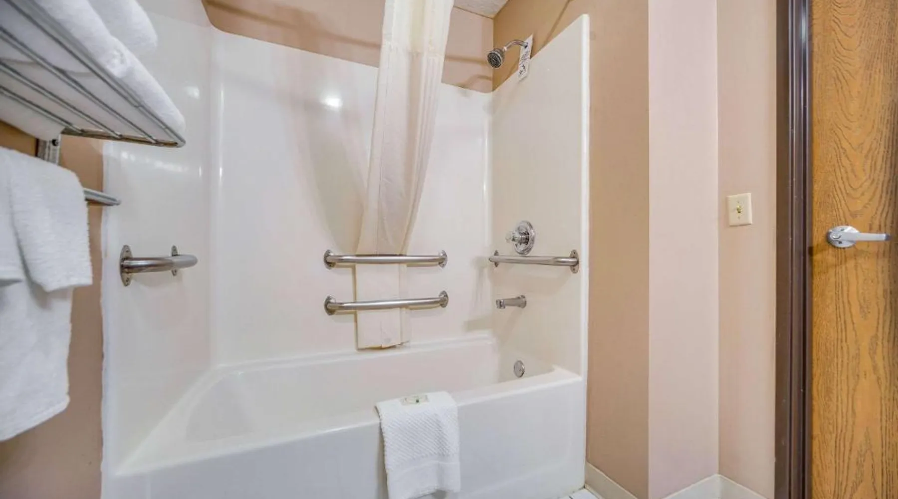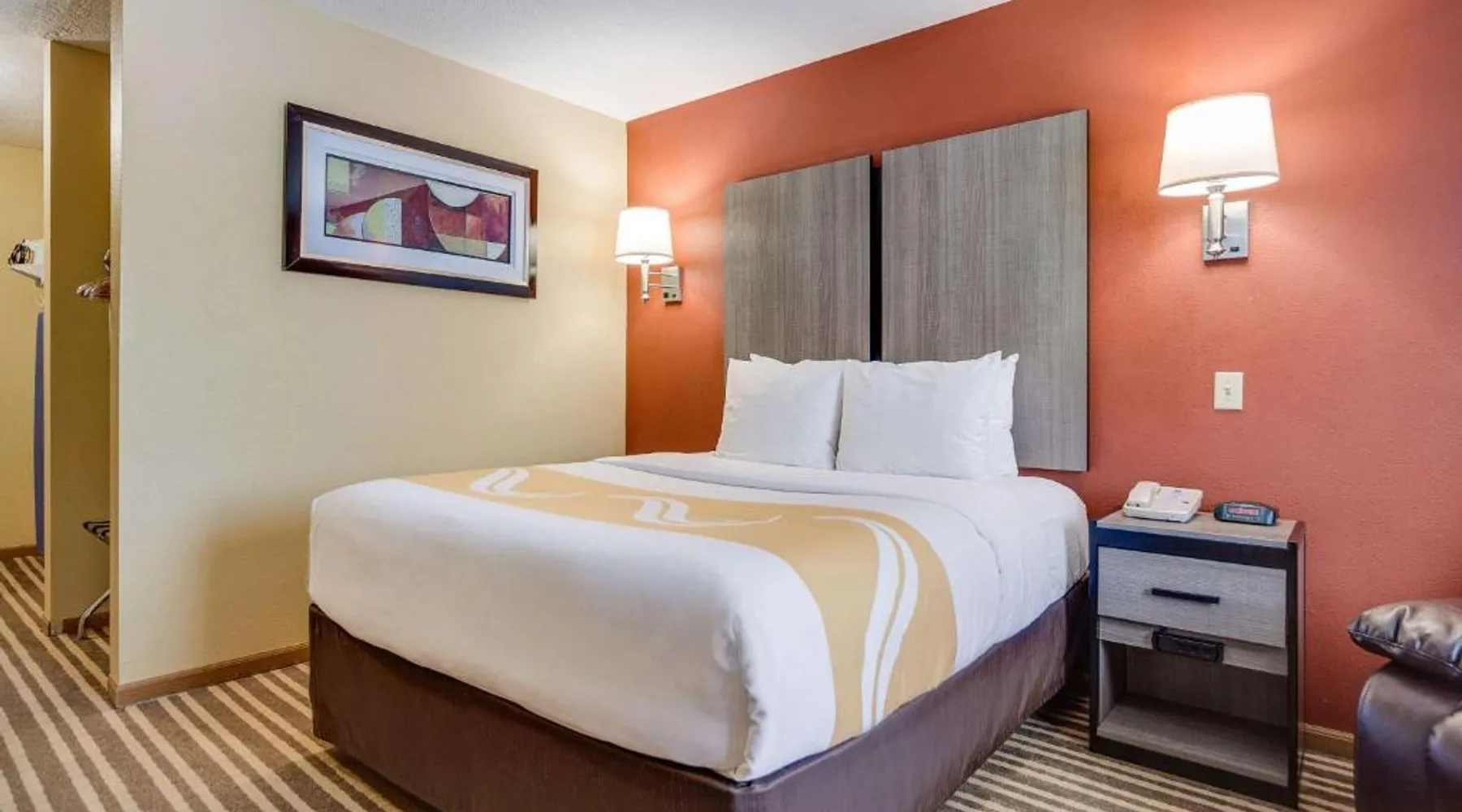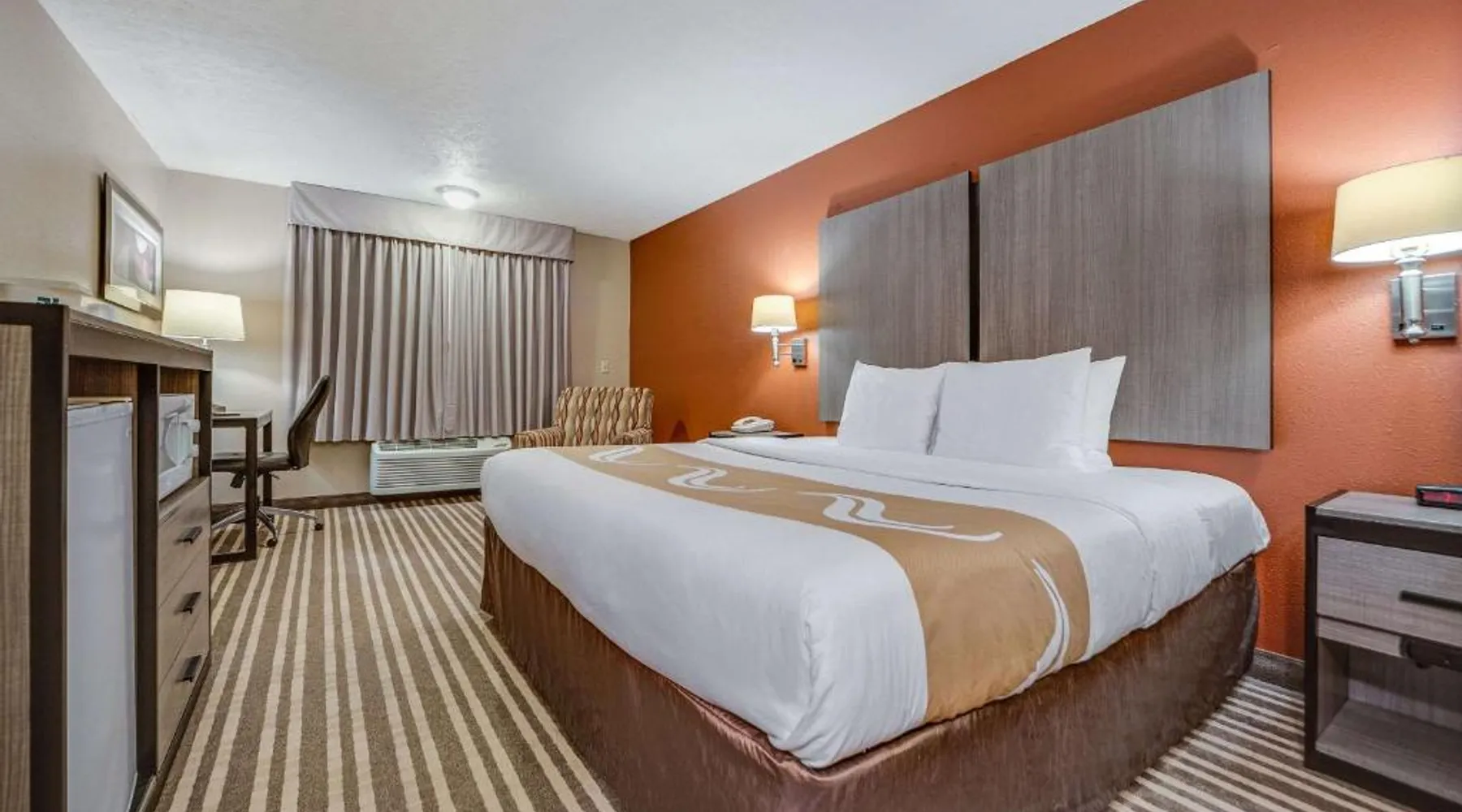 The Quality Inn Hastings hotel in Hastings, Nebraska offers easy access to a variety of popular local attractions, including the Nebraska Softball Hall of Fame and Hastings Museum. This hotel is also close to Fisher Fountain, MPH Raceway and Lochland Country Club. Guests of the hotel will appreciate the indoor heated pool, a great place to relax year-round. Guest laundry service is available. As a convenience to business travelers, access to copy and fax services is offered. Other amenities at the hotel include, free hot breakfast, free wireless high-speed Internet access and free weekday newspapers. All spacious guest rooms offer a flat-screen television with cable, coffee maker, microwave, refrigerator, hair dryer, desk, iron and ironing board. This is a nonsmoking hotel. Offering free Wi-Fi and a cable TV, this room includes a microwave and a refrigerator.