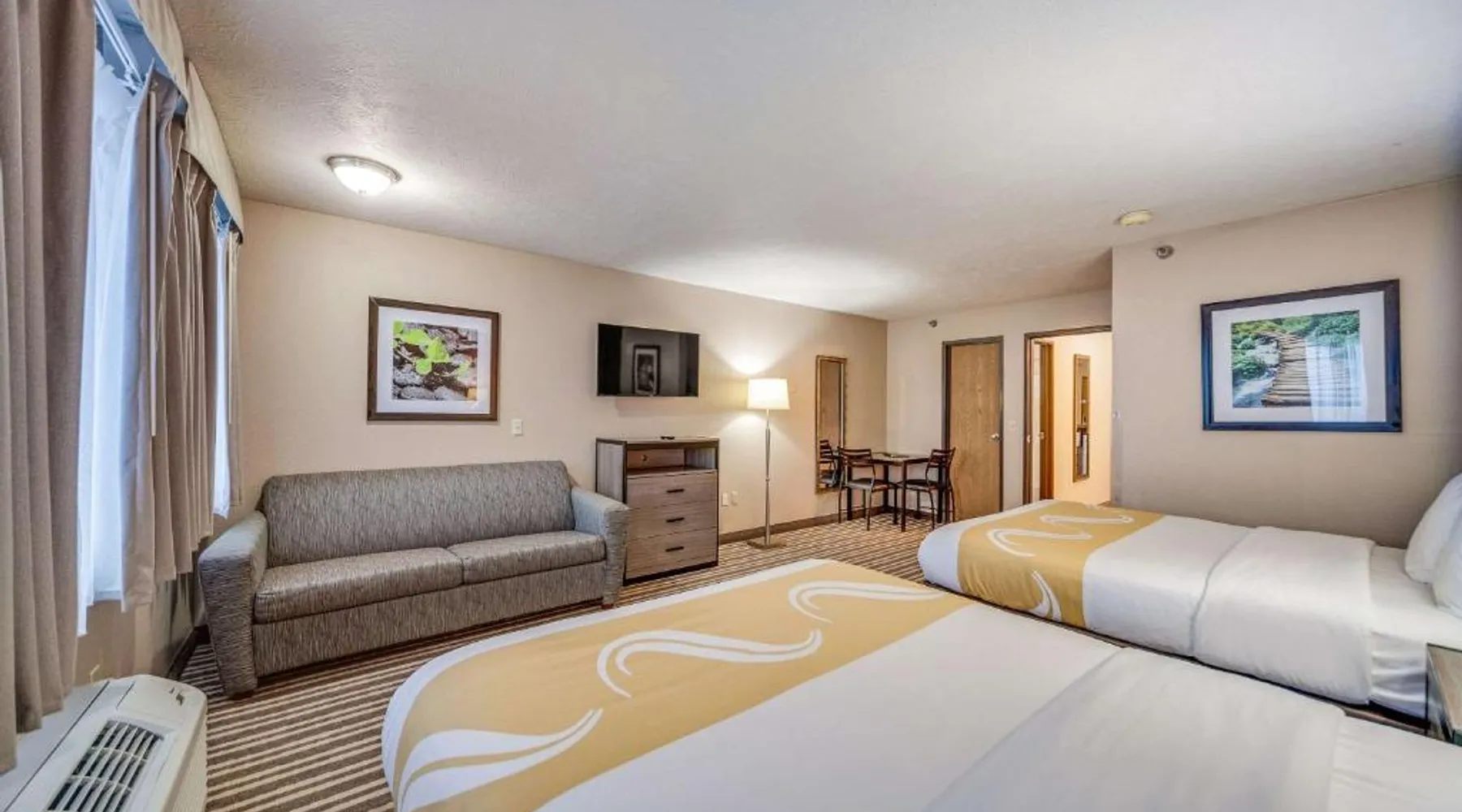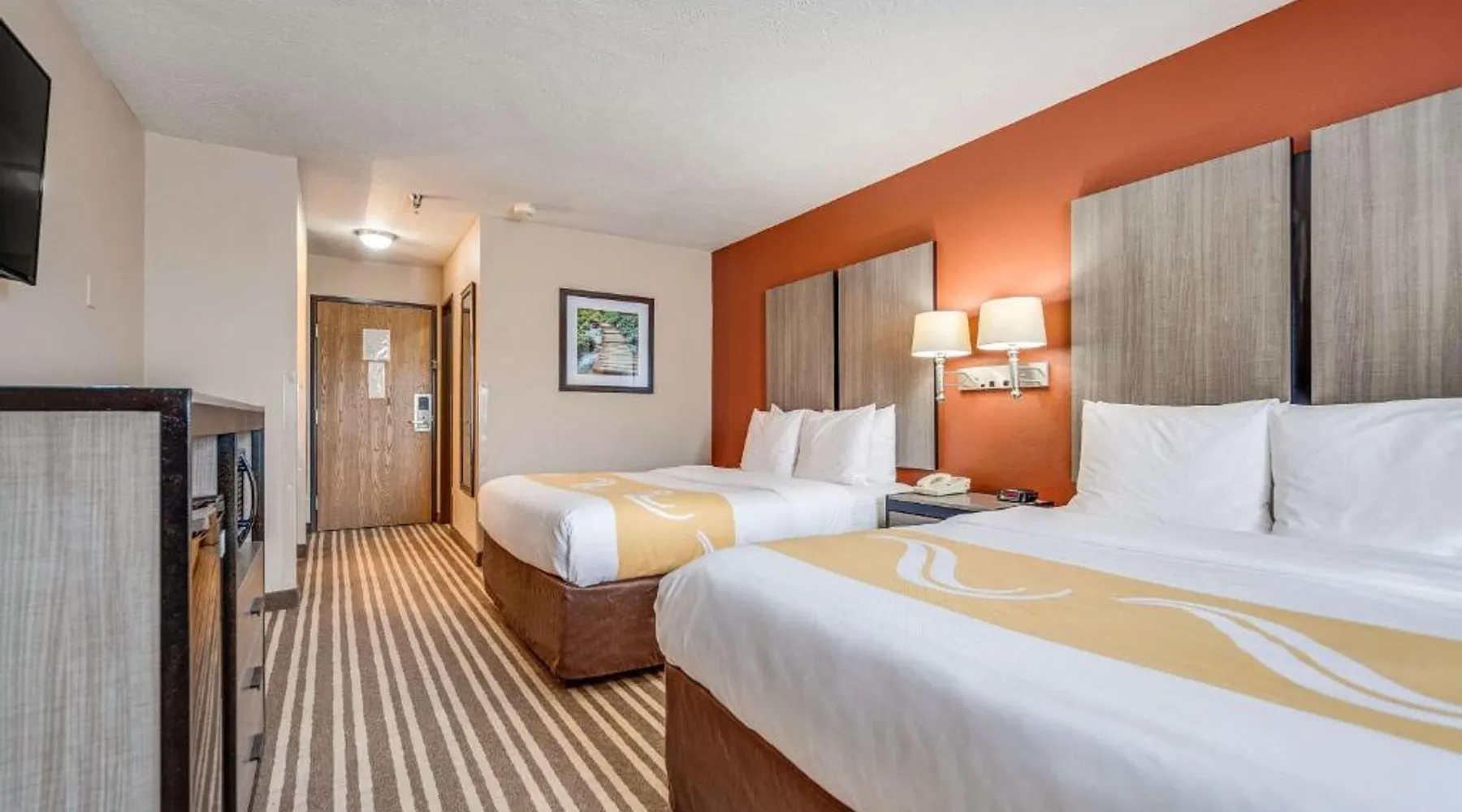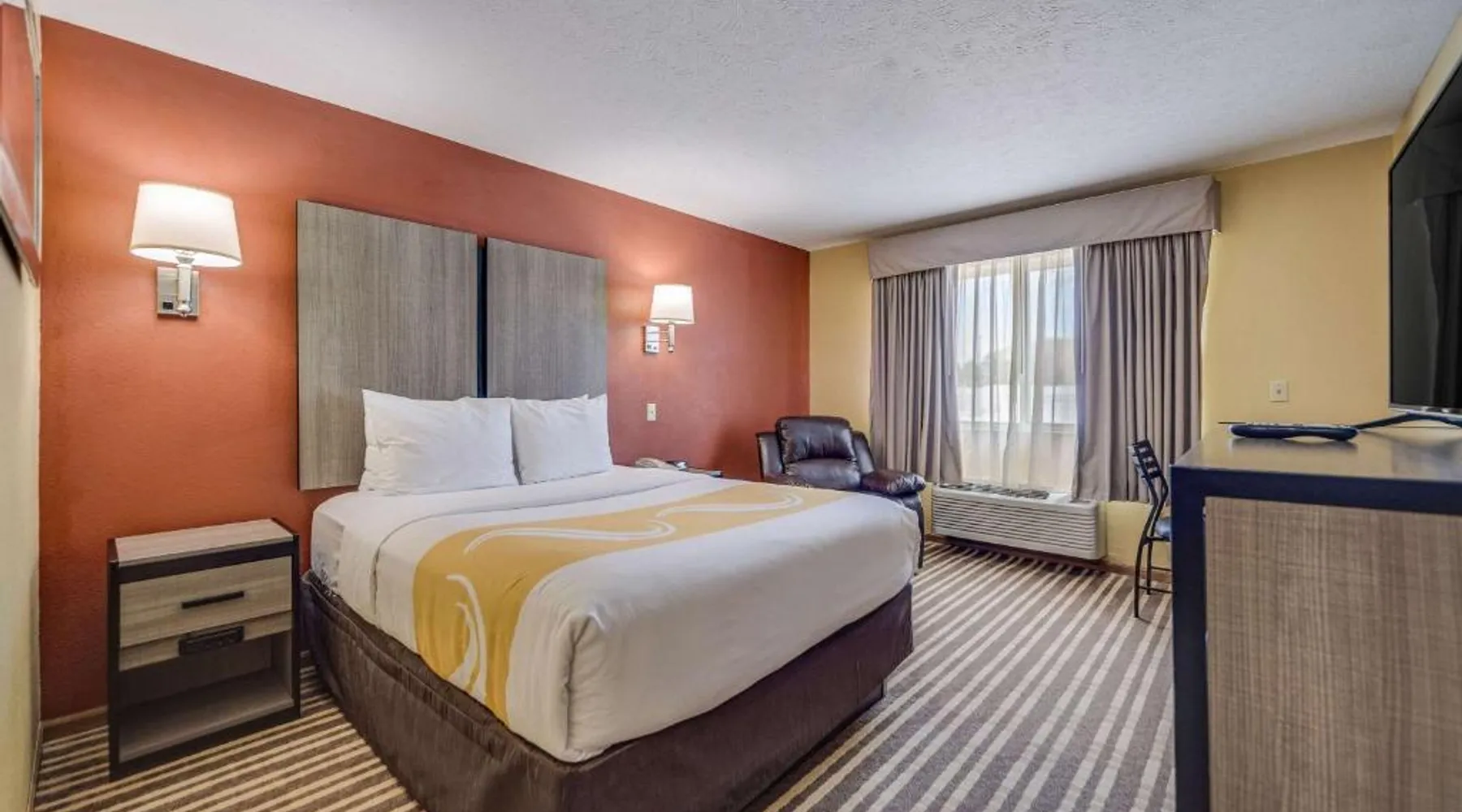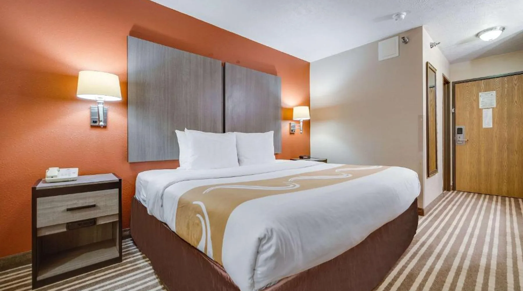 The Quality Inn Hastings hotel in Hastings, Nebraska offers easy access to a variety of popular local attractions, including the Nebraska Softball Hall of Fame and Hastings Museum. This hotel is also close to Fisher Fountain, MPH Raceway and Lochland Country Club. Guests of the hotel will appreciate the indoor heated pool, a great place to relax year-round. Guest laundry service is available. As a convenience to business travelers, access to copy and fax services is offered. Other amenities at the hotel include, free hot breakfast, free wireless high-speed Internet access and free weekday newspapers. All spacious guest rooms offer a flat-screen television with cable, coffee maker, microwave, refrigerator, hair dryer, desk, iron and ironing board. This is a nonsmoking hotel. Offering free Wi-Fi and a cable TV, this room includes a microwave and a refrigerator.