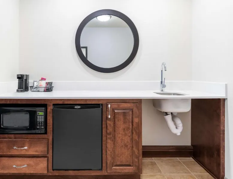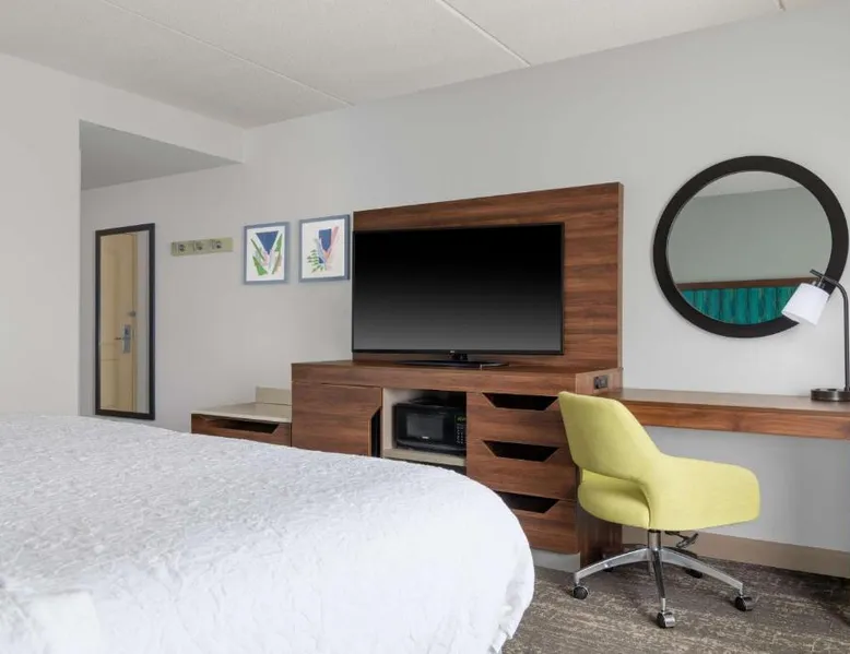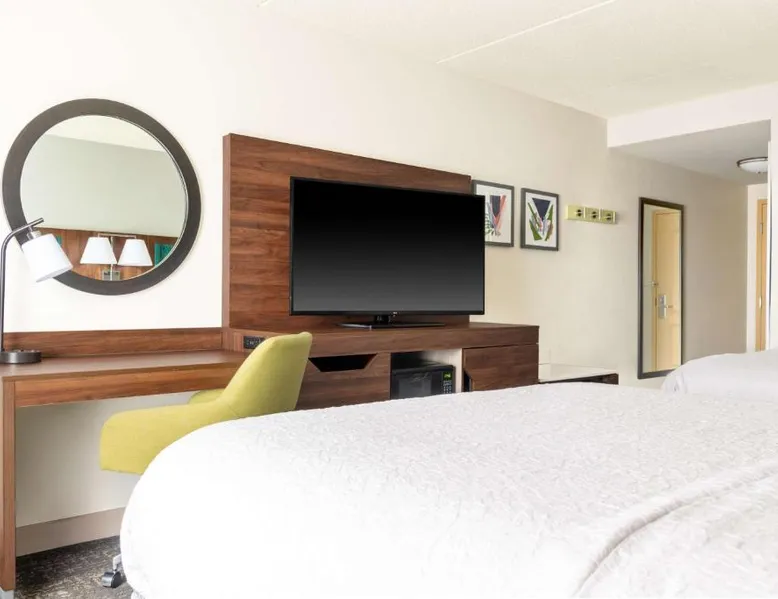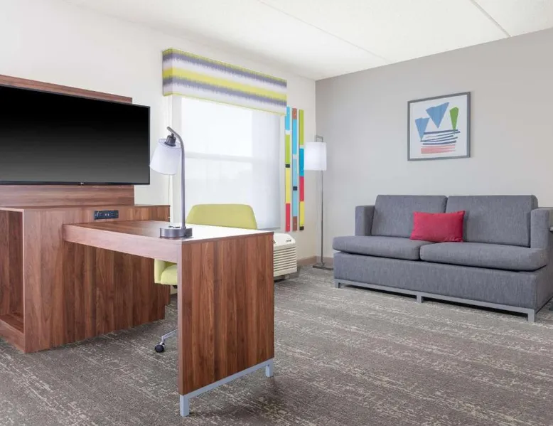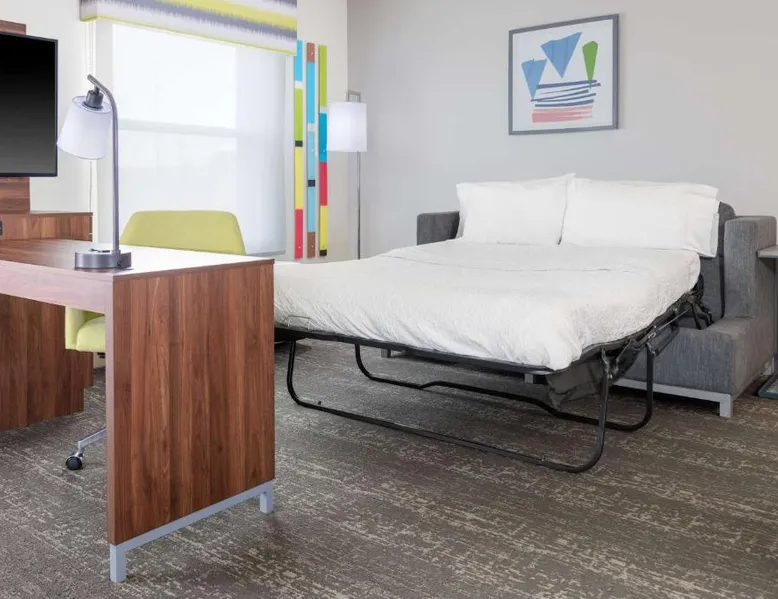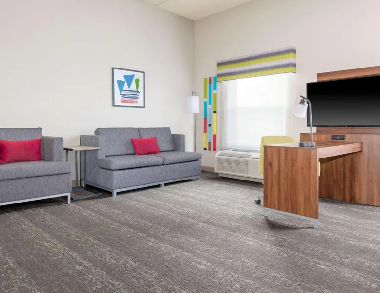 Comfortable Accommodations: Hampton Inn & Suites Brookings in Brookings offers family rooms with free WiFi, air-conditioning, and modern amenities. Each room includes a tea and coffee maker, hairdryer, sofa bed, refrigerator, seating area, free toiletries, microwave, and TV. Relaxing Facilities: Guests can unwind at the spa and wellness center or take a dip in the indoor swimming pool. The hotel features a fitness room, elevator, 24-hour front desk, minimarket, and daily housekeeping service. Convenient Location: Located 51 mi from Watertown Regional Airport, the hotel provides free on-site parking. Highly rated by guests, it offers a welcoming environment for all travelers. This studio offers a separate seating area with a sofa bed, a microwave and refrigerator.
