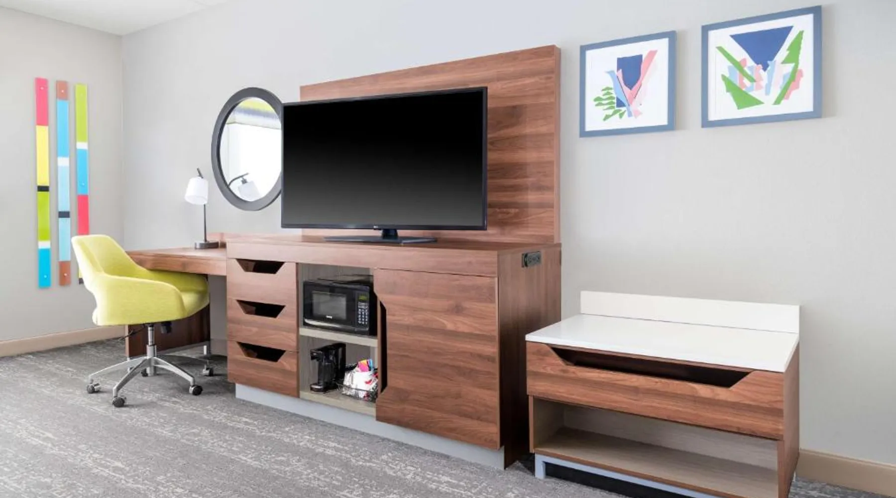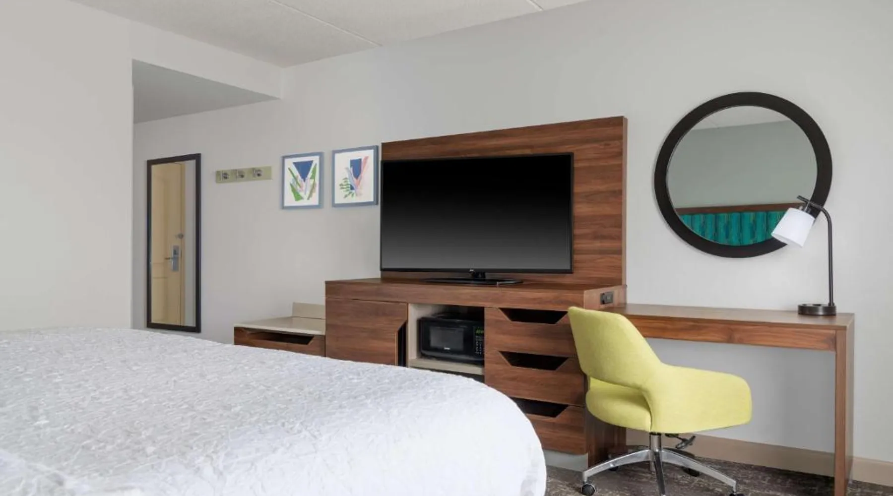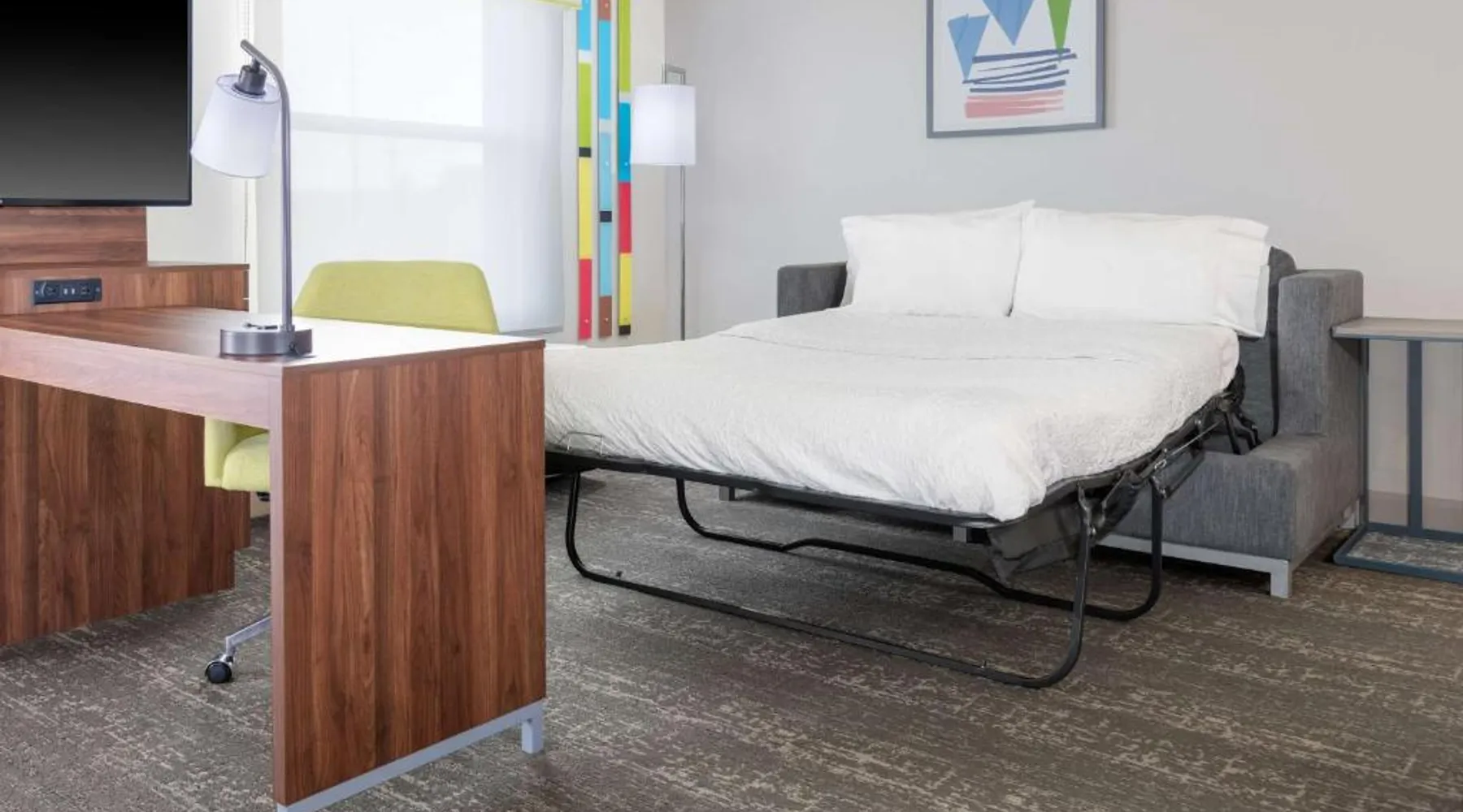 Comfortable Accommodations: Hampton Inn & Suites Brookings in Brookings offers family rooms with free WiFi, air-conditioning, and modern amenities. Each room includes a tea and coffee maker, hairdryer, sofa bed, refrigerator, seating area, free toiletries, microwave, and TV. Relaxing Facilities: Guests can unwind at the spa and wellness center or take a dip in the indoor swimming pool. The hotel features a fitness room, elevator, 24-hour front desk, minimarket, and daily housekeeping service. Convenient Location: Located 51 mi from Watertown Regional Airport, the hotel provides free on-site parking. Highly rated by guests, it offers a welcoming environment for all travelers. This studio offers a separate seating area with a sofa bed, a microwave and refrigerator.