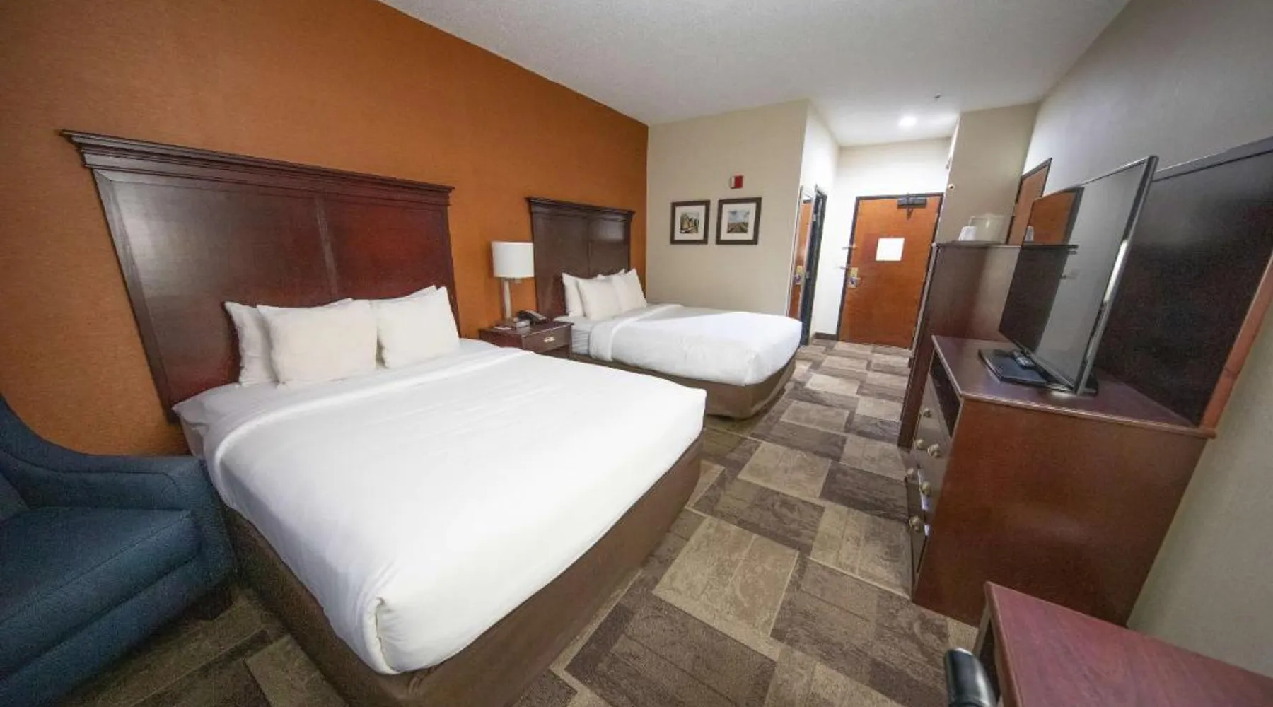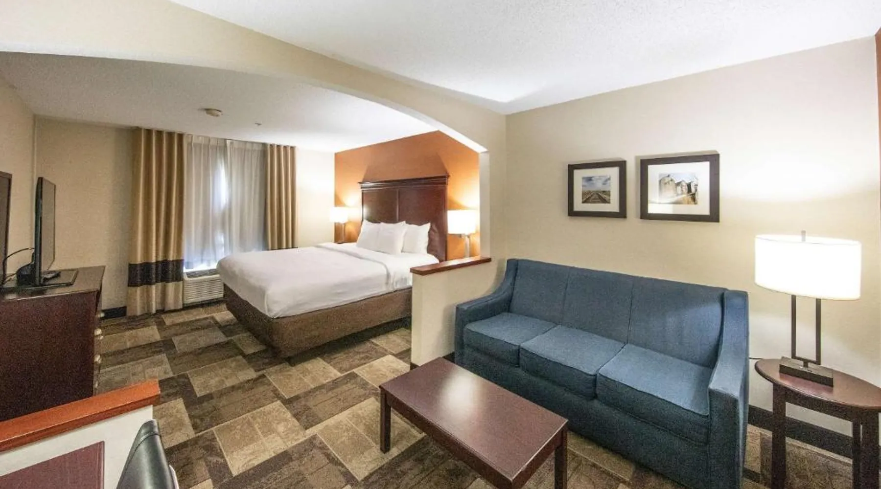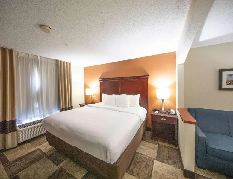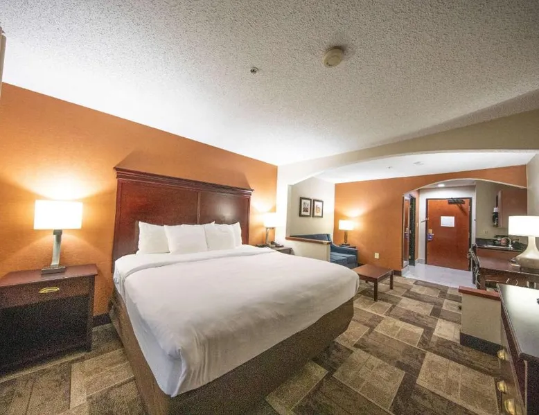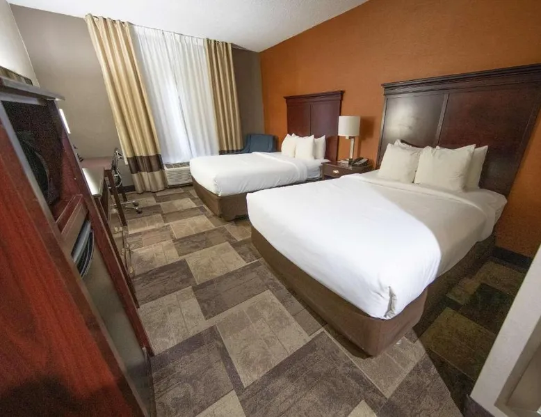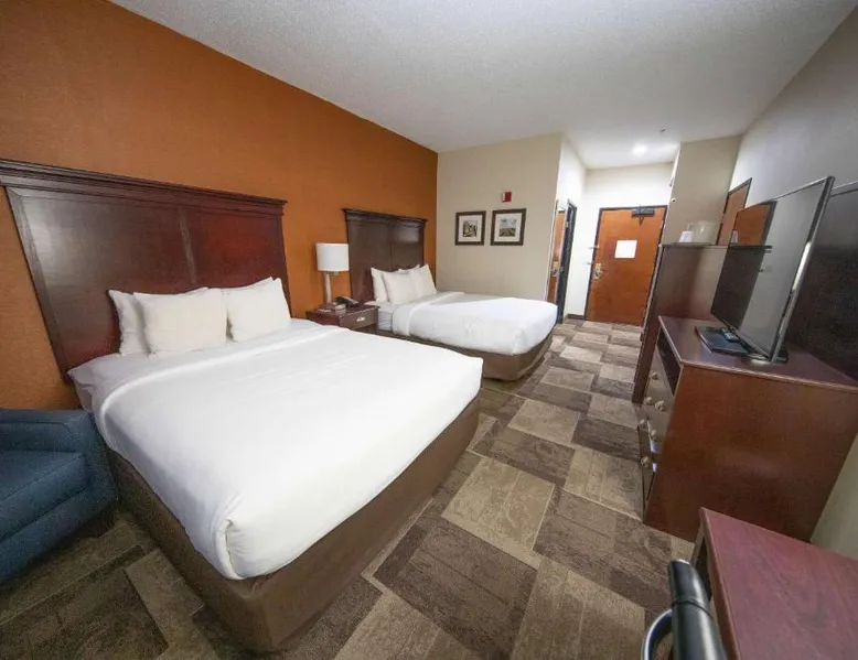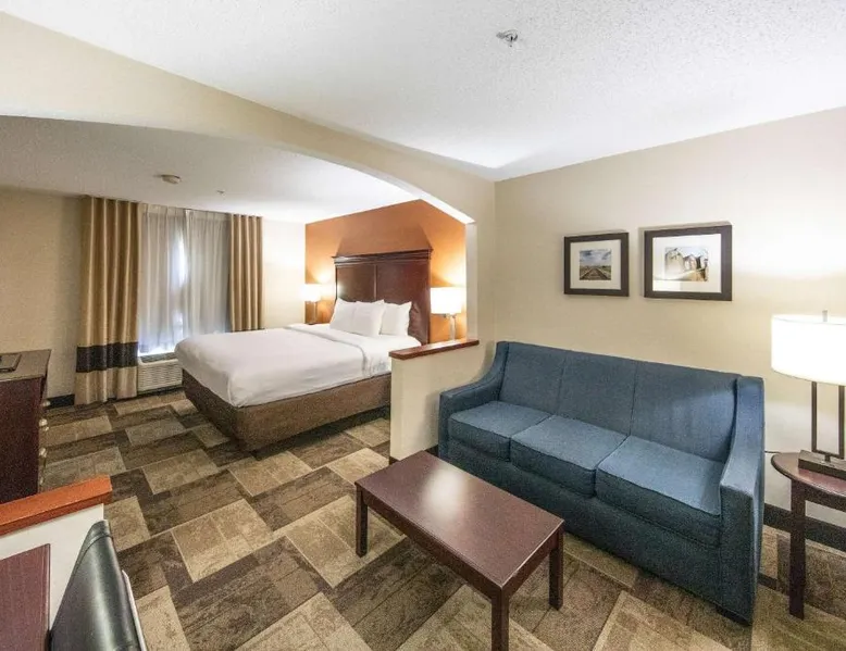 Comfortable Accommodations: Comfort Inn & Suites Hutchinson in Hutchinson offers air-conditioned rooms with private bathrooms, tea and coffee makers, and free WiFi. Each room includes a work desk, TV, and wardrobe, ensuring a pleasant stay. Leisure Facilities: Guests can enjoy a fitness center, sun terrace, indoor swimming pool, and outdoor seating area. Additional amenities include a lounge, elevator, 24-hour front desk, housekeeping service, business area, and free on-site parking. Dining Options: A continental and à la carte breakfast is provided by the property. Free toiletries, interconnected rooms, and sofa beds enhance the comfort of all visitors. Location and Services: Located 47 mi from Wichita Dwight D. Eisenhower National Airport, the hotel offers express check-in and check-out services. Highly rated for its breakfast, room cleanliness, and attentive staff. Providing free toiletries, this suite includes a private bathroom with a bath, a shower and a hairdryer. The suite features tiled floors, a seating area with a flat-screen TV with cable channels, air conditioning, a tea and coffee maker, as well as a wardrobe. The unit offers 2 beds.