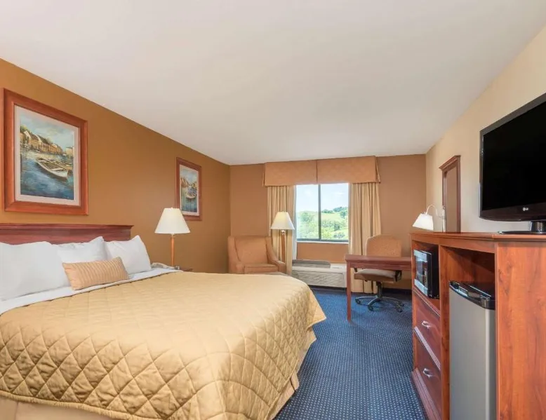 Comfortable Accommodations: Ramada by Wyndham Catlettsburg Ashland in Catlettsburg offers family rooms with air-conditioning, private bathrooms, work desks, and free toiletries. Each room includes a TV and interconnected options. Leisure Facilities: Guests can relax on the sun terrace or indoor swimming pool. The hotel features a fitness room, hot tub, and outdoor seating area. Free WiFi is available throughout the property. Dining Options: A continental, American, and buffet breakfast is served daily, including warm dishes, fresh pastries, fruits, and juice. The on-site minimarket provides additional convenience. Convenient Location: Located 5.6 mi from Tri-State Airport, the hotel is near attractions such as Marshall University (12 mi) and Highlands Museum and Discovery Center (7.5 mi). Guests appreciate the convenient location and room cleanliness. This air-conditioned triple room includes a flat-screen TV with cable channels and a private bathroom. The unit offers 1 bed.