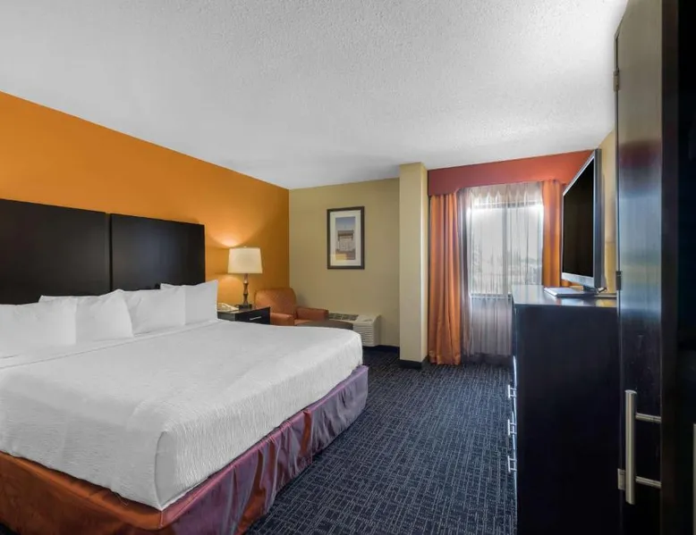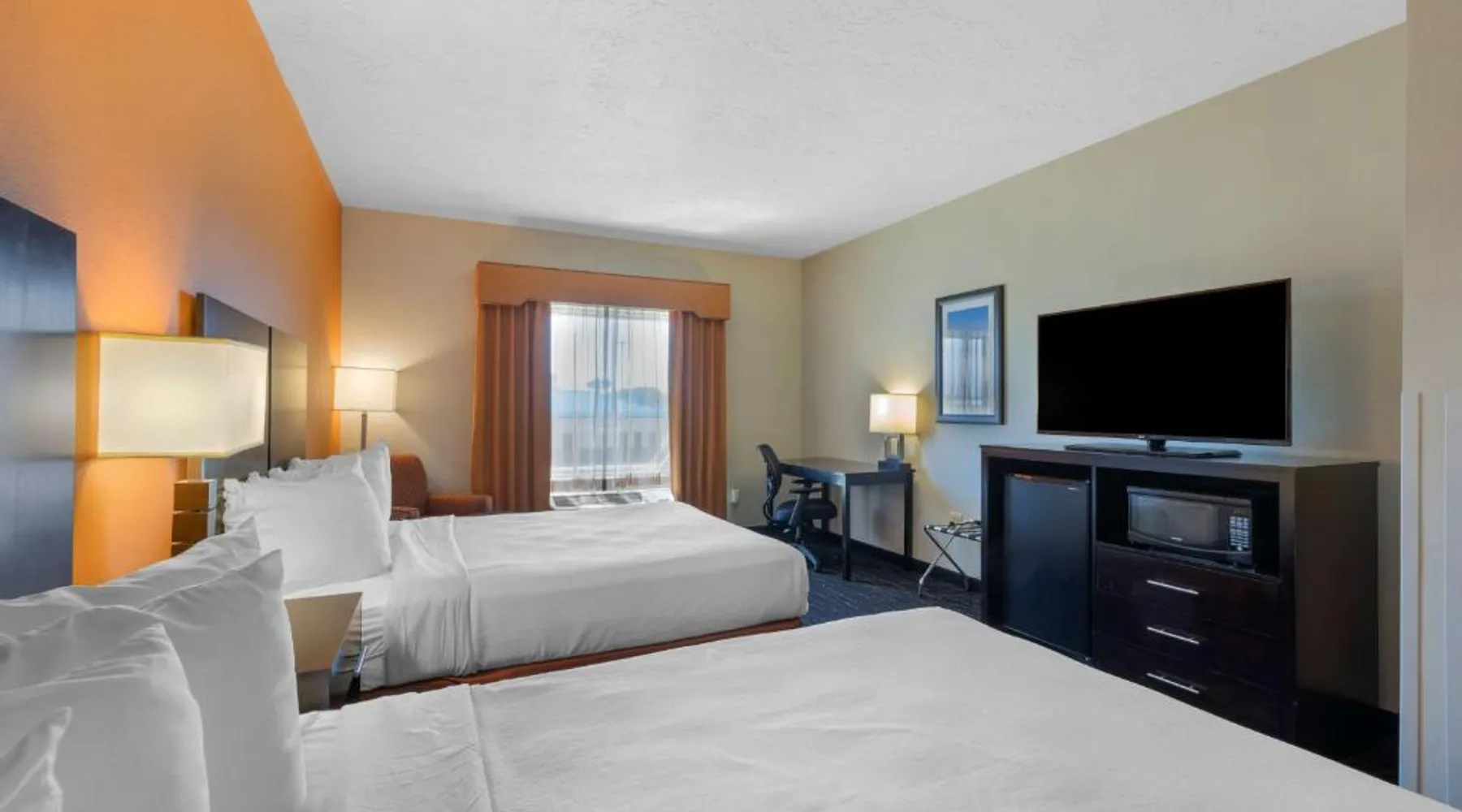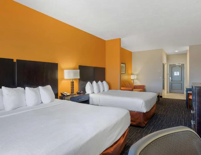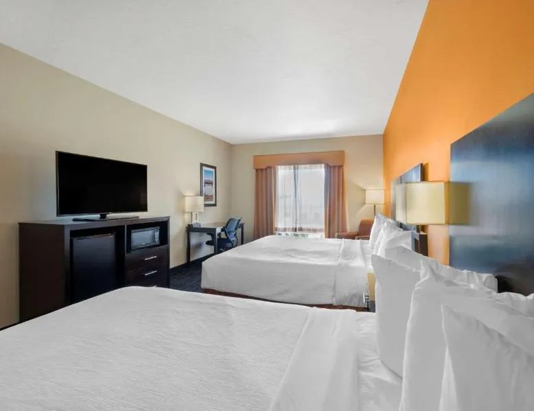 Comfortable Accommodations: Best Western Plus North Platte Inn & Suites in North Platte offers family rooms with air-conditioning and private bathrooms. Guests enjoy free WiFi in public areas, ensuring connectivity during their stay. Leisure Facilities: The hotel features an indoor swimming pool, fitness center, and hot tub. Additional amenities include a lounge, elevator, 24-hour front desk, minimarket, daily housekeeping, business area, and express check-in and check-out services. Breakfast and Dining: A complimentary American breakfast is served daily, highly appreciated by guests. The on-site restaurant offers a variety of dining options, catering to diverse preferences. Convenient Location: Located 5.6 mi from North Platte Regional Airport, the hotel provides free on-site private parking. Guests can also enjoy the daily housekeeping service and luggage storage for added convenience. This quadruple room features a private bathroom, and air conditioning. The unit has 2 beds.