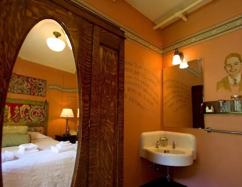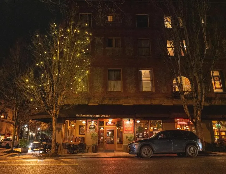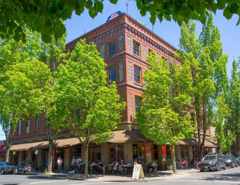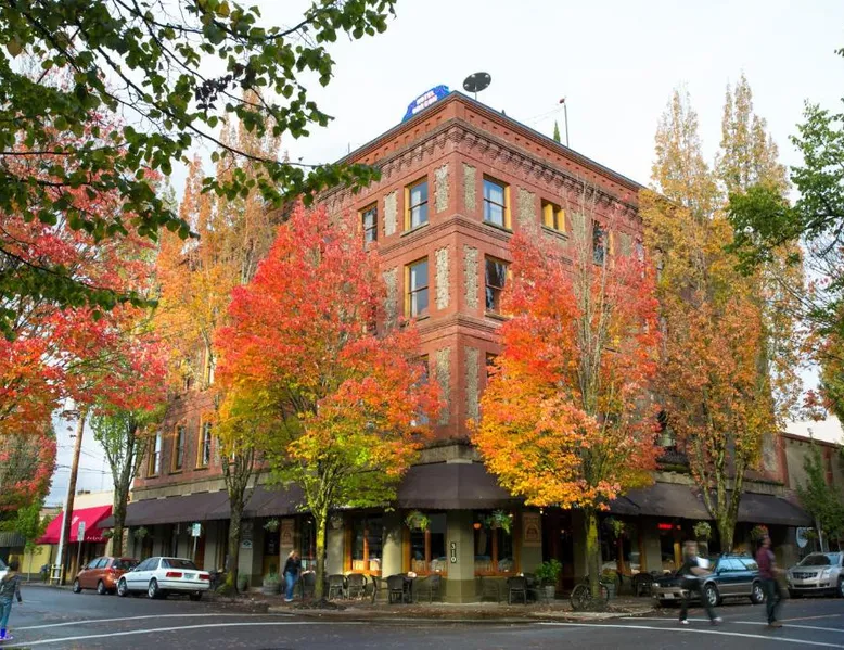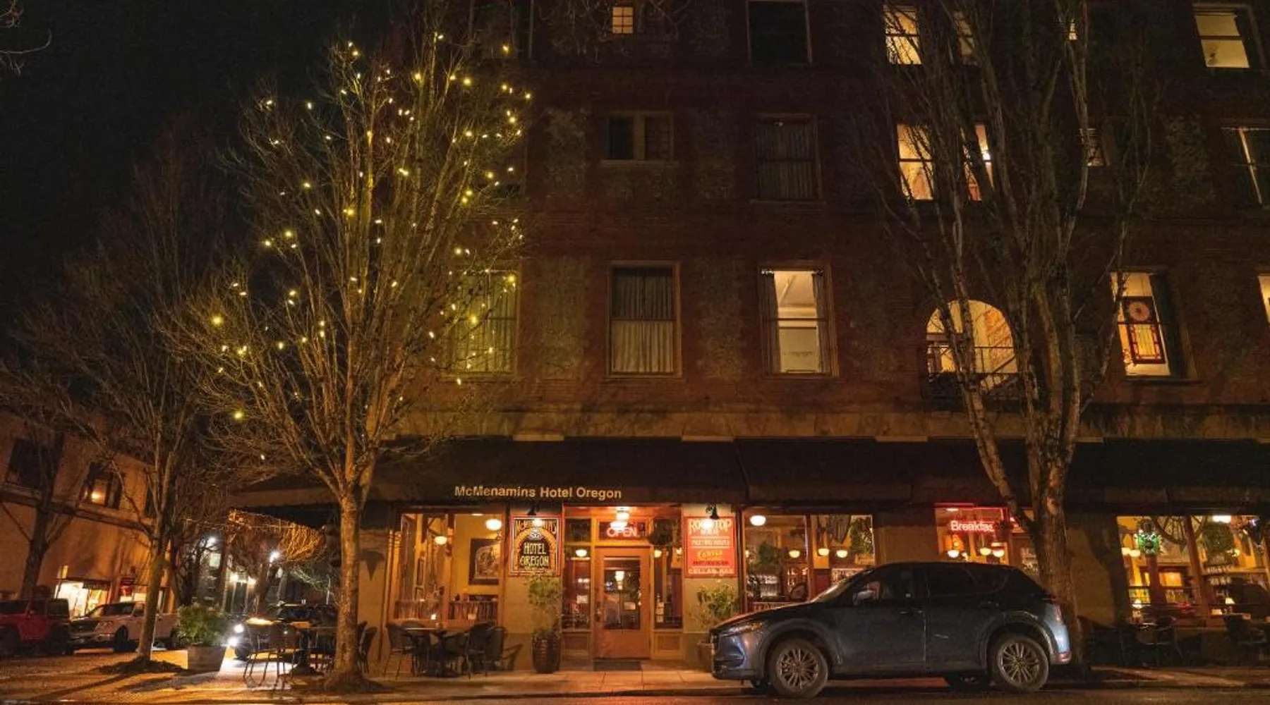 Comfortable Accommodations: McMenamins Hotel Oregon in McMinnville offers air-conditioned rooms with city views, free WiFi, and modern amenities. Each room includes a wardrobe, bathrobes, and free toiletries. Dining and Leisure: Guests can enjoy American cuisine at the on-site restaurant, which serves lunch and dinner, alongside cocktails. The hotel features a sun terrace, bar, and outdoor seating area. Live music enhances the dining experience. Convenient Facilities: The hotel offers private check-in and check-out, a lounge, elevator, 24-hour front desk, concierge service, and free parking. Additional services include room service, luggage storage, and menus for special diets. Local Attractions: Linfield College is a 17-minute walk away, and Portland International Airport is 47 mi from the property. This double room features air conditioning and cotton bathrobes. Conveniently located down the hall a common bathroom is offered exclusively for guests. Please note: There are no TV's in guest rooms. Free WiFi is available throughout the property.