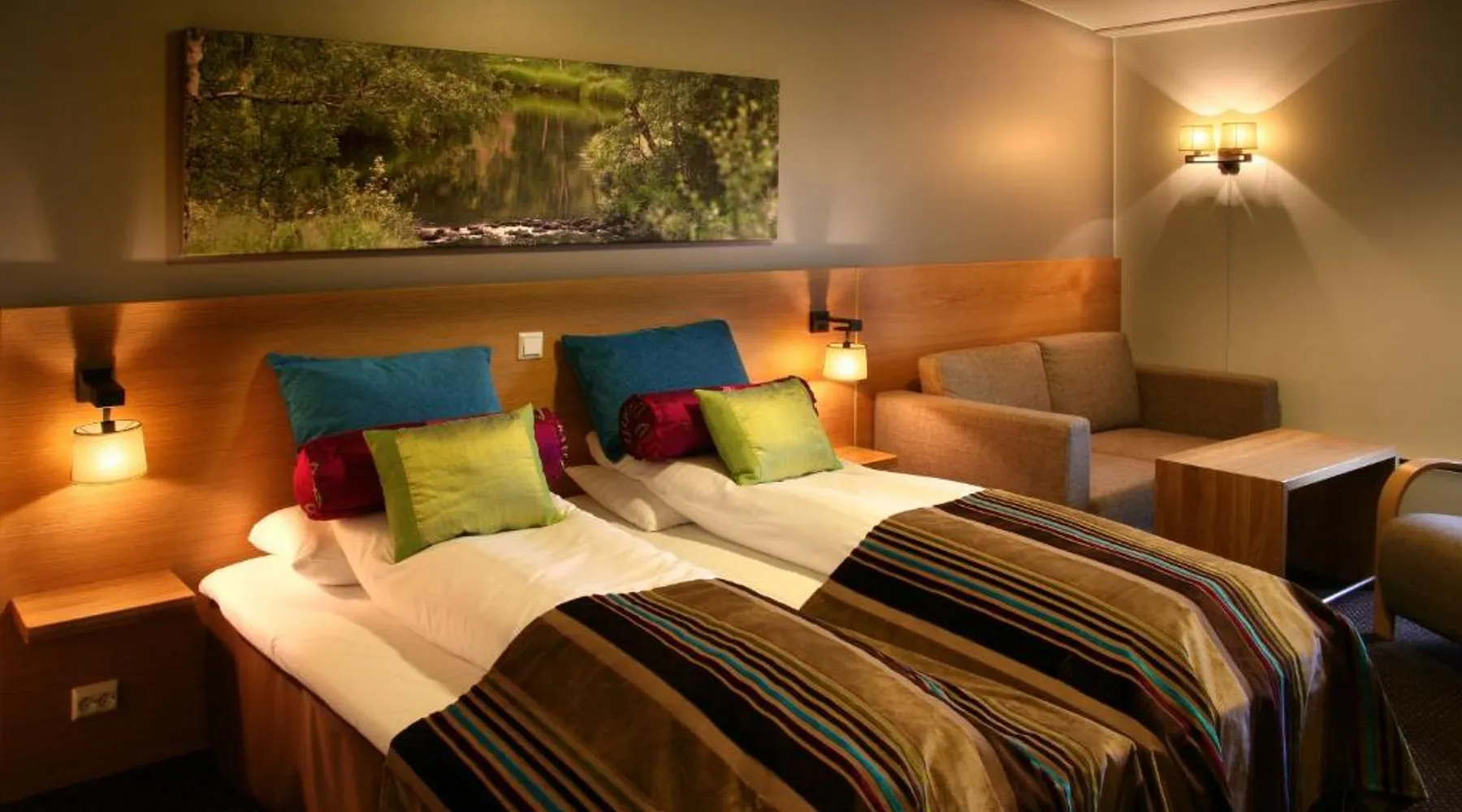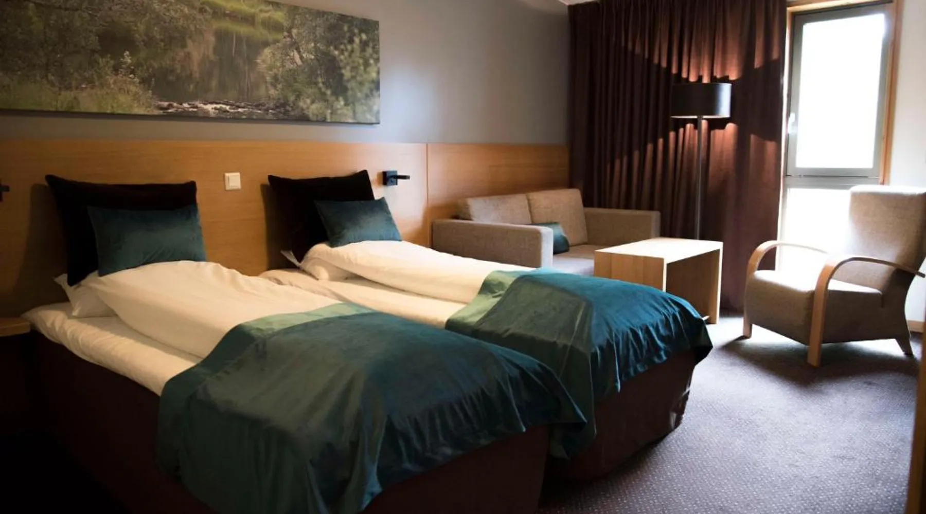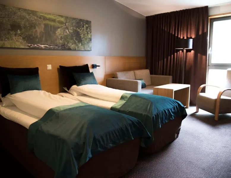 Comfortable Accommodations: Scandic Stiklestad in Verdal offers family rooms with air-conditioning, private bathrooms, and garden views. Each room includes a work desk, TV, and wardrobe, ensuring a pleasant stay. Exceptional Facilities: Guests can enjoy a fitness center, sun terrace, and free use of bicycles. The hotel features a garden, restaurant, bar, and free WiFi, providing ample leisure and relaxation options. Dining Experience: The family-friendly restaurant serves brunch, dinner, high tea, and cocktails in a traditional ambiance. Additional amenities include a lounge, games room, and outdoor seating area. Convenient Location: Located 41 mi from Trondheim Airport, the hotel is near attractions such as the Verdal Museum and Stiklestad Stave Church. Activities include bike tours and hiking, with free on-site parking available. Features modern decor and furnishings, as well as a mini-bar, satellite TV, seating area and air conditioning.