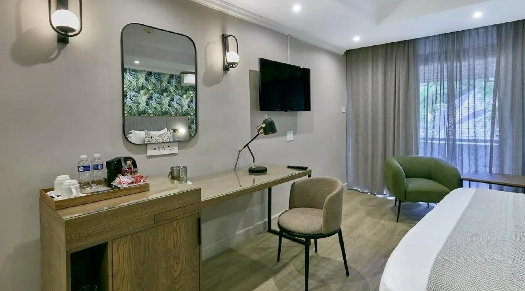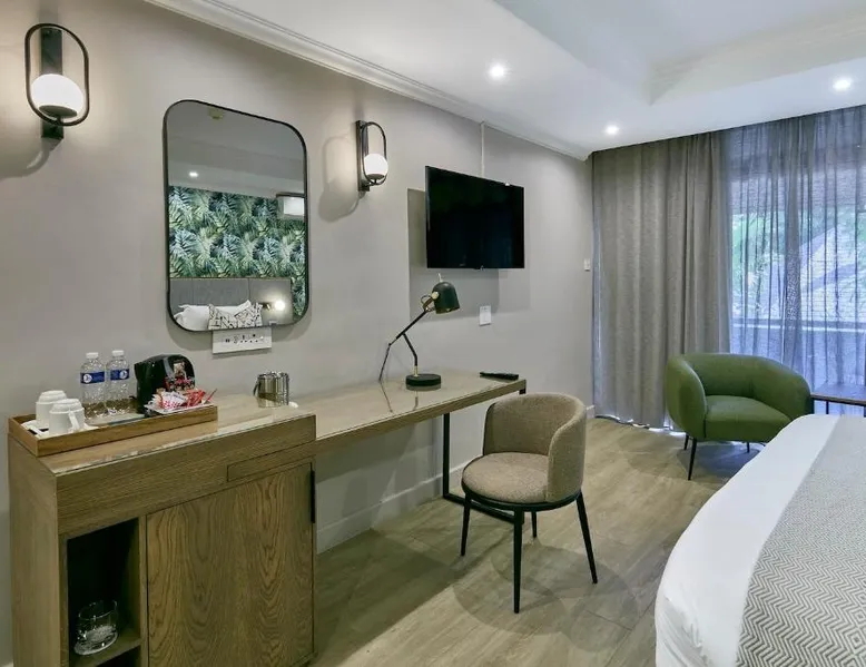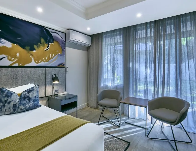 Comfortable Accommodations: Cresta Thapama Hotel in Francistown offers comfortable rooms with air-conditioning, private bathrooms, and modern amenities. Each room includes a work desk, free toiletries, and a balcony with garden views. Exceptional Facilities: Guests enjoy a year-round outdoor swimming pool, a lush garden, and a terrace. The hotel provides free WiFi, a restaurant, bar, and a 24-hour front desk. Additional services include a free airport shuttle, room service, and free on-site private parking. Dining Experience: The modern, family-friendly restaurant serves African and American cuisines with vegetarian options. Breakfast includes continental, buffet, and à la carte selections, featuring local specialties, fresh pastries, and warm dishes. Prime Location: Located 1.9 mi from Francistown Airport, the hotel is near shops and conveniently located. Guests appreciate the nearby attractions and the attentive property staff. The double room offers air conditioning, a tea and coffee maker, as well as a private bathroom boasting a shower and a hairdryer. The double room features a wardrobe, a safe deposit box, heating and a TV with cable channels. The unit has 1 bed.