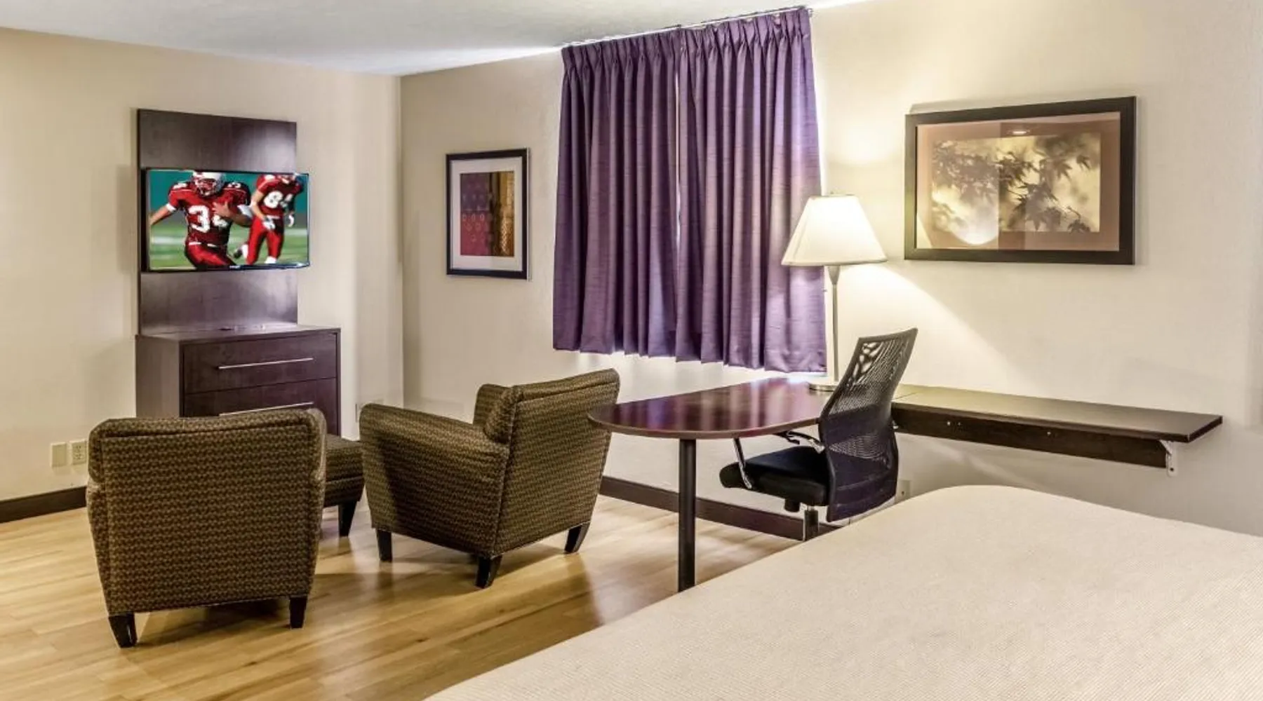 This Taylorsville, Indiana hotel is 4 miles from Camp Atterbury. Each guest room is equipped with a flat-screen cable TV and free WiFi. A microwave and fridge are provided in every room at Red Roof Inn Columbus – Taylorsville. For added convenience, tea and coffee-making facilities are also featured. Free bus and truck parking is offered, and free newspapers are available in the lobby of this smoke-free hotel. The Atterbury State Fish and Wildlife Area is 6 miles away. Shopping at the Edinburgh Premium Outlets can be reached in 2 minutes’ drive. Featuring a flat-screen cable TV and a spa bath, this room also offers a microwave and refrigerator.