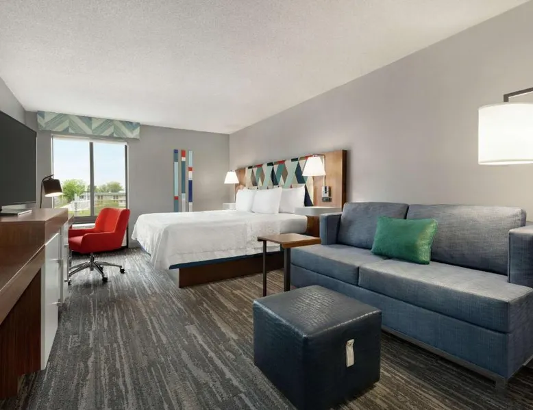 Comfortable Accommodations: Hampton Inn Kansas City Blue Springs in Blue Springs offers family rooms with free WiFi, air-conditioning, and modern amenities including a refrigerator, microwave, and TV. Facilities and Services: Guests can enjoy a fitness center, indoor swimming pool, lounge, and 24-hour front desk. Additional services include a business area, elevator, luggage storage, and free on-site parking. Convenient Location: Located 38 mi from Kansas City International Airport, the hotel is near attractions such as Kauffman Stadium (12 mi), National World War I Museum (19 mi), and Union Station Kansas City (19 mi). Guest Satisfaction: Highly rated for its attentive staff, excellent breakfast, and immaculate rooms. This study offers a sofa bed.
